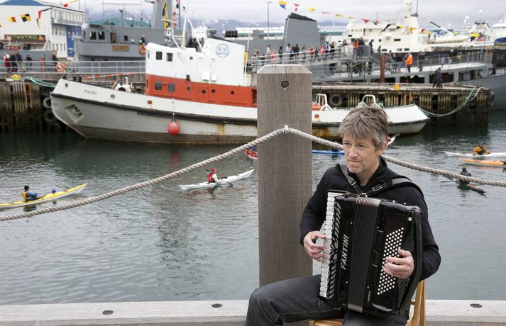 Fjör á hátíð hafsins Viktoría Hermannsdóttir skrifar 7. júní 2015 20:45 Sjómannadagurinn var haldinn hátíðlegur í dag víða um land. Sjómannadeginum var fagnað í Reykjavík í sjötugasta og sjöunda skipti. Dagskráin hófst með athöfn við Minningaröldur Sjómannadagsins í Fossvogskirkjugarði þar sem séra Hjálmar Jónsson flutti minningarorð og bæn. Heiðursvörð stóðu starfsmenn Landhelgisgæslunnar og hermenn af frönsku skútunni Etoile. Sjómannamessa var svo haldin í Dómkirkjunni þar Séra Sveinn Valgeirsson dómkirkjuprestur prédikaði og minntist drukknaðra sjómanna. Forseti Íslands, Ólafur Ragnar Grímsson tók þátt í athöfninni en fyrir athöfnina gaf hann sér tíma til þess að sitja fyrir í myndatöku með erlendum ferðamönnum sem fylgdust með. Meðan á athöfninni stóð var blómsveigður lagður á leiði óþekkta sjómannsins. Skemmtidagskrá Sjómannadagsins hófst svo með skrúðgöngu frá Hörpu og niður í Grandagarð. Í miðri skrúðgöngu ruddist Sóknarhópurinn í skrúðgönguna og tók sér stað fremst þar sem þeir héldu á líkkistu og báru skilti með orðunum jörðum kvótann. Ungir sem aldnir skemmtu sér á hátíð hafsins þar sem sjá mátti hina ýmsu fiska sem Hafrannsóknarstofnun hefur safnað saman og þóttu mörgum sumir þeirra vera ansi óhugnalegir að sjá. Fimm sjómenn voru heiðraðir í tilefni dagsins, þeir Bjarni Sveinsson, Hróbjartur Jón Gunnlaugsson, Hálfdán Henrysson, Benedikt Jón Ágústsson og Bjarni Sveinbjörnsson sem allir eiga sér langa sjómannssögu. Hálfdán Henrysson var byrjaði á sjó árið 1959 og vann í 26 ár hjá Landhelgisgæslunni. Mest lesið Játaði meira og meira eftir því sem á leið Innlent Segist ekki muna eftir að hafa sent skilaboðin Innlent Trump fer í fýlu og dregur boð sitt til Carney til baka Erlent „Einhver SA prins mættur til að láta sem allt sé bara kózý“ Innlent Hiti færist í leikinn: „Frægur karl með enga reynslu“ Innlent Landsleikir á vinnutíma fela í sér tækifæri Innlent Viðurkenna loks, fyrir mistök, að Úkraínumenn hafi sökkt Moskvu Erlent Kosningavaktin 2026: Landsmenn kjósa sér sveitarstjórnir Innlent „Þetta er svolítið óvenjulegt, ég er ekki á þingi“ Innlent Svona var Pallborðið með Heiðu Björgu og Pétri Innlent Fleiri fréttir Um 900 manns eru nú með lögheimili í Grindavík „Það átti að taka mig í karphúsið“ Selenskí undir miklum þrýstingi Tímamótaviðræður hafnar og ögurstund hjá Samfylkingunni Eldur í sendibíl á Miklubraut Arnar Grétarsson í stjórnmálin Gjörbreytt Langahlíð fyrir milljarð Segist ekki muna eftir að hafa sent skilaboðin „Einhver SA prins mættur til að láta sem allt sé bara kózý“ Endurtekin og alvarleg mál valda áhyggjum Hiti færist í leikinn: „Frægur karl með enga reynslu“ Samfylkingarmönnum í Reykjavík fjölgað um 72 prósent Heimilisofbeldismálin alvarlegri en áður og fundað um Úkraínu í Abu Dhabi Svona var Pallborðið með Heiðu Björgu og Pétri Játaði meira og meira eftir því sem á leið Fann innbrotsþjófinn sofandi á heimilinu Nú geta íbúar skráð sjálfir hvað megi betur fara í borginni „Þetta er svolítið óvenjulegt, ég er ekki á þingi“ Landsleikir á vinnutíma fela í sér tækifæri Pétur vill leiða Viðreisn í Kópavogi Kom ekki á teppið Landsvirkjun hyggst bjóða út alla verkþætti Hvammsvirkjunar í ár Lilja sækist eftir því að leiða Framsókn Willum fer ekki fram og styður Lilju Foreldrarnir vissu ekki af kynferðisofbeldinu Magnea vill hækka sig um sæti Vissu ekki af kynferðisbrotinu fyrr en lögreglan hafði samband Fengið svör frá Bandaríkjunum um Íslandsyfirlýsingar Trumps Laugarnestangi friðlýstur sem menningarlandslag Mesti fjöldi í sögu bráðamóttökunnar Sjá meira