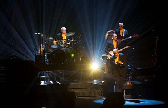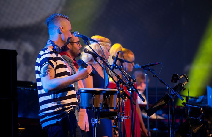 Gleðigjafarnir í Stuðmönnum héldu tvenna tónleika í Eldborgarsal Hörpu í kvöld í tilefni fjörutíu ára afmælis fyrstu plötu sveitarinnar, Sumar á Sýrlandi. Sveitin kemur svo fram á þriðju tónleikunum á morgun. Margt var um manninn bæði í salnum og á sviðinu, en alls voru sextán manns þar samankomnir í einu þegar mest lét. Meðal þeirra sem komu fram með Stuðmönnum á tónleikunum voru þau Ágústa Eva Erlendsdóttir söng- og leikkona og Eggert Þorleifsson, sem fór á kostum í hlutverki Dúdda rótara. Ernir Eyjólfsson, ljósmyndari Vísis, mætti á staðinn og glæsilegum myndum af tónleikaveislunni sem sjá má í myndasafninu hér fyrir neðan.Stuðmenn hafa engu gleymt.Vísir/Ernir