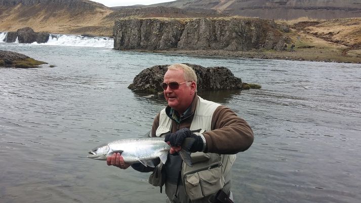 Björgvin Halldórs og Bubbi opnuðu Norðurá í Borgarfirði og voru þeir fyrstir til að kasta flugum sínum í ánna. Einar Sigfússon, sölustjóri veiðileyfa, fékk fyrsta laxinn klukkan tuttugu mínútur yfir sjö. Hann fékk átta punda hrygnu. Skömmu síðar veiddist annar lax á bryggjunum svokölluðum og Bubbi fékk sinn fyrsta klukkan hálf átta.Einar veiddi fyrsta lax sumarsins.Vísir/GVA