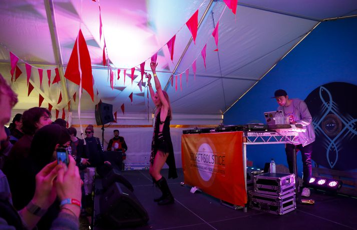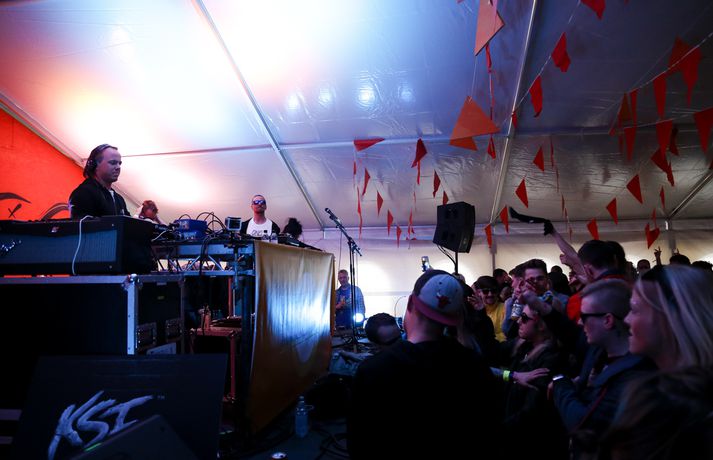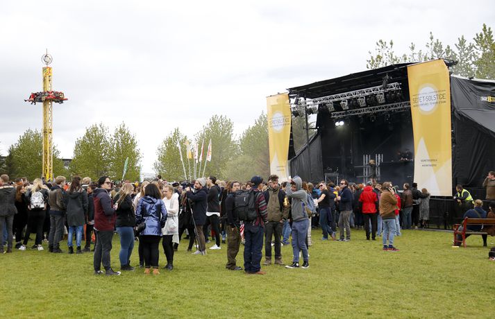 Tónlistarhátíðin Secret Solstice hófst með pompi og prakt á hádegi í dag. Hátíðin stendur alla helgina í Laugardalnum og kemur fjöldi þekktra tónlistarmanna fram. Á meðal þeirra sem stigu á svið í kvöld voru bandaríska söngkonan Kelis og íslensku sveitirnar Gus Gus, Ensími og Retro Stefson. Að sögn blaðamanns Vísis sem var á hátíðinni fyrr í kvöld er geggjuð stemning í Laugardalnum. Ljósmyndari Vísis var einnig á svæðinu og tók fjölda mynda sem sjá má í albúminu hér að ofan. vísir/andri marinó