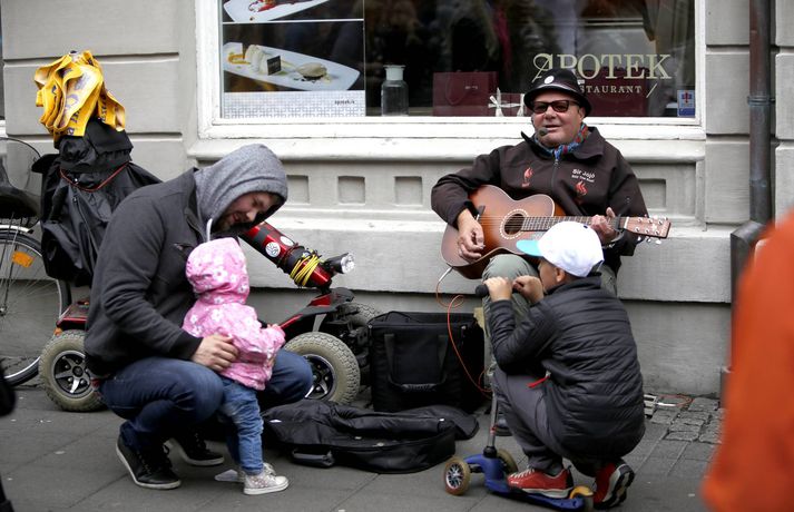 Margt var um manninn í miðborg Reykjavíkur í dag þar sem fólk ýmist gæddi sér á kandíflosi eða mótmælti á Austurvelli. Aðrir hlýddu á ljúfa tóni á Arnarhóli meðan bardagakappar sveifluðu sverðum. Andri Marínó ljósmyndari fréttastofunnar fangaði andrúmsloftið í borginni í dag og afraksturinn má sjá hér að ofan.Vísir/Andri Marínó