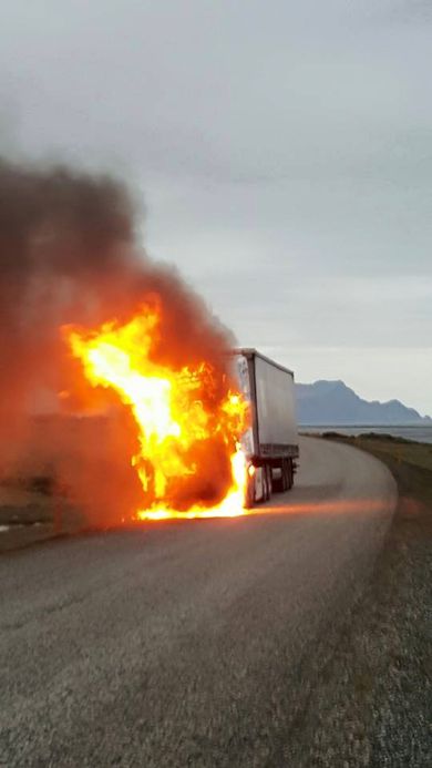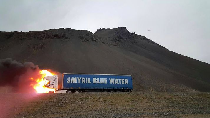 Þúsund lítra olíutankurinn hársbreidd frá því að springa Stefán Ó. Jónsson skrifar 12. júní 2015 10:07 Bíllinn var að flytja plastglugga úr Norrænu þegar eldurinn kom upp. MYND/ARNAR ÞÓR INGÓLFSSON Betur fór en á horfðist þegar eldur kom upp í flutningabíl Nesfrakt í gærkvöldi. Bíllinn var staddur skammt utan við Höfn í Hornafirði en hann var á leið frá Seyðisfirði til Reykjavíkur með fullan farm af plastgluggum úr Norrænu. Að sögn Arnar Þórs Ólafssonar hjá Nesfrakt leikur grunur á að kviknað hafi í bílnum út frá sprungnu framdekki.MYND/ARNAR ÞÓR ÓLAFSSON„Eldurinn kom úr dekkinu þegar bílnum var keyrt upp á spýtukubb til að hækka hann, svo að koma mætti tjakki undir,“ segir Arnar. „Það virðist hafa verið gífurlegur hiti innan í dekkinu, jafnvel eldur, sem við gátum ekki séð áður en við byrjum að færa bílinn og það var í raun ekkert sem gaf til kynna að hætta væri á ferðum.“ Arnar segir að þó að bíllinn hafi skíðlogað og sé nú óökufær hafi þó farið betur en á horfðist, engin slys hafi orðið á fólki. Vindáttin hafi verið hagstæð svo að farmurinn slapp óskaddaður. „Vagninn var fullur af plastgluggum og það hefði náttúrulega komið svaðalegt bál ef eldurinn hefði læst sig í þeim.“ Þá hafi þúsund lítra olíutankur bílsins, sem var svo gott sem fullur, verið orðinn mjög heitur áður en slökkviliðið á Höfn náði að ráð niðurlögum eldsins. „Slökkviliðsmennirnir sögðu að eldurinn hefði fært sig aðeins aftur hefðu þeir ekki ráðið neitt við neitt. Eldur í þúsund lítra tanki er ekkert grín,“ segir Arnar.MYND/ARNAR ÞÓR INGÓLFSSON Mest lesið Trump fer í fýlu og dregur boð sitt til Carney til baka Erlent Játaði meira og meira eftir því sem á leið Innlent Landsleikir á vinnutíma fela í sér tækifæri Innlent Rússar, Úkraínumenn og Bandaríkjamenn funda í fyrsta sinn við sama borð Erlent „Þetta er svolítið óvenjulegt, ég er ekki á þingi“ Innlent „Við getum gert það sem við viljum“ Erlent Kom ekki á teppið Innlent Foreldrarnir vissu ekki af kynferðisofbeldinu Innlent Repúblikanar leita aftur á náðir Musks Erlent Sósíalistar sendu nær allar tekjur í félög tengdum fyrri stjórn Innlent Fleiri fréttir Játaði meira og meira eftir því sem á leið Fann innbrotsþjófinn sofandi á heimilinu Nú geta íbúar skráð sjálfir hvað megi betur fara í borginni „Þetta er svolítið óvenjulegt, ég er ekki á þingi“ Landsleikir á vinnutíma fela í sér tækifæri Pétur vill leiða Viðreisn í Kópavogi Kom ekki á teppið Landsvirkjun hyggst bjóða út alla verkþætti Hvammsvirkjunar í ár Lilja sækist eftir því að leiða Framsókn Willum fer ekki fram og styður Lilju Foreldrarnir vissu ekki af kynferðisofbeldinu Magnea vill hækka sig um sæti Vissu ekki af kynferðisbrotinu fyrr en lögreglan hafði samband Fengið svör frá Bandaríkjunum um Íslandsyfirlýsingar Trumps Laugarnestangi friðlýstur sem menningarlandslag Mesti fjöldi í sögu bráðamóttökunnar Leita manns vegna kynferðisbrots við Austurbæjarbíó Sósíalistar sendu nær allar tekjur í félög tengdum fyrri stjórn Mætast í Pallborðinu á lokasprettinum Kafað í óbirta og umtalaða skýrslu um Félagsbústaði Rannsóknaskipin gera hlé á loðnuleit vegna óveðurs Viðreisn býður fram undir merkjum Samfylkingar Þrjú erlend her- og varðskip í Reykjavík Ósammála um hvort lögregla hafi gefið fyrirmæli „Ég á þetta og má þetta“ „Það er ekki hægt að muna allan þennan djöful“ Nauðgaði konu og reyndi að færa henni blóm daginn eftir Hvalveiðimótmælin fyrir dóm og Danir segja ekkert samið um Grænland Húsleit fór fram víðar en á Akureyri Halla slær á putta handboltahetjunnar Sjá meira