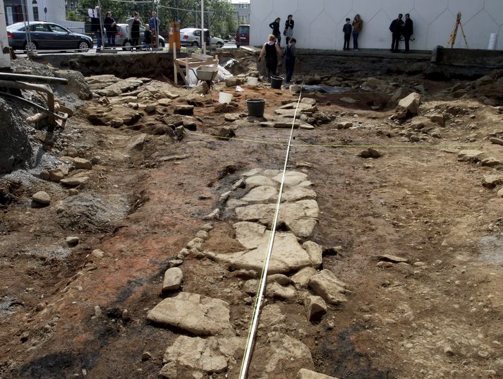 Tengdar fréttir Óvæntur fornleifafundur breytir byggðasögu Reykjavíkur "Okkur datt ekki í hug að það væri eitthvað þarna,“ segir fornleifafræðingur sem stýrir uppgreftri við Lækjargötu. 8. júlí 2015 14:30 Grafa upp leifar Lækjarkots Munu vinna í uppgreftri við Lækjargötu fram á sumar. 23. maí 2015 09:00 Mest lesið Samkomulagið veiti Bandaríkjunum aðgang að auðlindum Grænlands Erlent Viðurkenni nú að hafa beitt Íslendinga efnahagslegri hernaðaraðgerð Innlent Algjörlega óásættanleg staða Innlent Davos-vaktin: „Við fengum allt sem við vildum“ Erlent Sveitarstjórnin og Penninn Eymundsson saman í eina sæng Innlent Skýrsla Félagsbústaða kolsvört Innlent Hættu við lendingu í miðju aðflugi Innlent „Ramma framtíðarsamkomulags“ náð um Grænland og hætt við tolla Erlent Unnu að því að stofna „Vélfag 2.0“ og tölvur með teikningum fjarlægðar Innlent Var á ráðstefnunni í Davos: „Fólk andaði kannski aðeins léttar“ Erlent Fleiri fréttir Ölvaður og árásargjarn handtekinn í verslunarmiðstöð Viðurkenni nú að hafa beitt Íslendinga efnahagslegri hernaðaraðgerð Algjörlega óásættanleg staða Sveitarstjórnin og Penninn Eymundsson saman í eina sæng Þjóðaröryggisráð boðað til fundar Skýrsla Félagsbústaða kolsvört Formaður Sjálfstæðisflokksins fer yfir þunga stöðu Hættu við lendingu í miðju aðflugi Taldi sig mega birta nektarmyndir af fyrrverandi en dómarinn hélt ekki Unnu að því að stofna „Vélfag 2.0“ og tölvur með teikningum fjarlægðar Drógu dauðan hval lengst út í hafsauga Segir gagnrýni minnihlutans til þess gerða að dreifa athygli Nú má heita Friðálv Gletting Lucíuson Náðu sex byssum úr byssuskáp á Akureyri Parísarheimsókn fjárlaganefndar „mjög fróðleg“ Með 29 kíló af maríjúana í töskunum Brúnni yfir Helluvatn lokað í fimm vikur Stjórnarformaður Vélfags handtekinn í aðgerðum saksóknara „Það er ekki laust við að það fari um mann“ Miðflokkurinn nálgast Samfylkingu Milljarða útspil meirihlutans „fullkomlega ábyrgðarlaust“ og lykti af prófkjörsbaráttu Ákærður fyrir nauðgun á nýársdag Markverð tíðindi í nýrri Maskínukönnun um fylgið á landsvísu Hátt í tíu þúsund manns án atvinnu í desember Sex sagt upp í menntamálaráðuneytinu Hættur í Viðreisn og sækist eftir formennsku í SI Vinnuslys þar sem maður „missti höndina inn í vals“ Baráttan um Framsókn muni snúast um sögulega stöðu Ráðherra segir ríkisvaldið gefa í með framkvæmdir Sverrir Bergmann hættir í bæjarstjórn Sjá meira