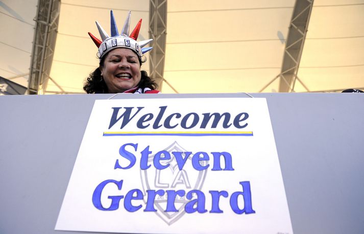Steven Gerrard var kynntur til leiks hjá LA Galaxy í nótt. Gerrard var kynntur til leiks í hálfleik þegar Galaxy mætti Toronto á heimavelli í MLS-deildinni. Gerrard byrjar þó ekki að spila strax því hann þarf að bíða í tvær vikur áður en hann getur byrjað að spila. Hann gladdi því stuðningsmenn Galaxy á annan hátt í gær. Liverpool-goðsögnin keypti bjór handa þremur aðalstuðningshópum LA Galaxy og gaf þeim fyrir leikinn í tilefni þjóðhátíðardags Bandaríkjanna. „Þrátt fyrir að ég hafi ekki klæðst LA Galaxy treyjunni er ég spenntur fyrir að spila fyrir framan LARS (stuðingsmannahópur Galaxy)," segir Gerrard í tilkynningunni. „Stuðningsmenn eru mikilvægir hjá hverju einasta félagi og ég veit að með stuðningi ykkar munum við berjast um MLS bikarinn á nýjan leik." „Fyrir það sem þið hafið gert fyrir félagið vil ég gleðja ykkur með hressingu í tilefni fjórða júlí. Hlakka til að sjá ykkur. Virðingarfyllst, Steven Gerrard." Galaxy rúllaði yfir Toronto, en lokatölur urðu 4-0. Robbie Keane, fyrrum framherji Tottenham, skoraði meðal annars þrennu. Winning b4 he even steps on the field, thanks Steven Gerrard for the beer! If u are headed 2 Picnication bring ice! pic.twitter.com/L0pKUo9ff8— LA Riot Squad (@LARiotSquad) July 4, 2015