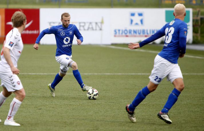 Valur komst upp í 2. sæti Pepsi-deildar karla eftir sterkan 1-2 útisigur á Stjörnunni á Samsung-vellinum í kvöld.Andri Marinó Karlsson, ljósmyndari Fréttablaðsins og Vísis, var á vellinum og tók meðfylgjandi myndir. Valsmenn hafa verið á miklu skriði síðustu vikur og ekki tapað leik í deild né bikar síðan 20. maí. Lærisveinar Ólafs Jóhannessonar eru nú aðeins tveimur stigum frá toppliði FH sem á reyndar leik til góða. Stjörnumenn eru hins vegar í vandræðum en 15 stig eftir fyrri umferðina hjá ríkjandi Íslandsmeisturum getur varla talist ásættanlegt niðurstaða. Garðbæingar hafa ekki enn unnið heimaleik í deildinni í sumar og aðeins unnið tvo af síðustu níu deildarleikjum. Það benti fátt til þess í upphafi leiks að þetta yrði kvöld Valsmanna. Þeir voru á hælunum fyrstu 25 mínútur leiksins gegn spræku Stjörnuliði sem var að leika sinn fyrsta leik frá 29. júní. Íslandsmeistararnir settu Valsmenn undir mikla pressu og fengu m.a. fjórar hornspyrnur á fyrstu 13 mínútum leiksins sem skiluðu reyndar litlu. En þrátt fyrir alla pressuna stóðst Valsvörnin flest áhlaup Stjörnumanna og ljóst var að það þyrfti eitthvað sérstakt til að brjóta hana á bak aftur. Og sú var raunin þegar Halldór Orri Björnsson kom Stjörnunni yfir á 21. mínútu með stórkostlegu marki. Heiðar Ægisson átti þá góða fyrirgjöf inn á teiginn á Halldór Orra sem gerði sér lítið fyrir og klippti boltann glæsilega í netið, framhjá varnarlausum Ingvari Þór Kale. Glæsilegt mark og sennilega fallegasta mark sumarsins til þessa. En sex mínútum síðar breyttist leikurinn þegar Hörður Árnason varð fyrir því óláni að setja boltann í eigið mark eftir fyrirgjöf Bjarna Ólafs Eiríkssonar frá vinstri. Eftir jöfnunarmarkið hertu Valsmenn tökin og voru sterkari aðilinn seinni hluta fyrri hálfleiks. Miklu munaði um að Kristinn Freyr Sigurðsson komst betur inn í leikinn sem og Sigurður Egill Lárusson og fyrir vikið var sóknarleikur Vals beittari. Staðan var jöfn í hálfleik en strax á 2. mínútu seinni hálfleiks fékk Sigurður Egill dauðafæri á fjærstöng eftir fyrirgjöf Iain Williamson sem kom inn í byrjunarlið Vals. Sigurður Egill var með allt markið fyrir framan sig en setti boltann á einhvern óskiljanlegan hátt yfir. Seinni hálfleikurinn var í jafnvægi en Valsmenn voru þó alltaf hættulegri og líklegri til að skora. Sigurður Egill var aftur nálægt því að skora á 59. mínútu en lyfti boltanum yfir markið eftir að hafa komist einn inn fyrir vörn Stjörnunnar. Eftir þetta færi komust heimamenn betur inn í leikinn og áttu ágætis sóknir. Þeir voru þó sem fyrr í vandræðum með að finna glaufur á vörn Vals sem spilaði virkilega vel í kvöld. Thomas Christensen og Orri Sigurður Ómarsson ná vel saman í miðri vörninni og Bjarni Ólafur átti flottan leik í stöðu vinstri bakvarðar, jafnt í vörn sem sókn. Valsmenn minntu aftur á sig á 74. mínútu þegar Patrick Pedersen slapp einn inn fyrir vörn Stjörnunnar eftir skyndisókn en Heiðar var fljótur til baka, komst fyrir skot Danans og bjargaði þar með marki. Hann var hins vegar úti á þekju þremur mínútum seinna þegar sigurmark Valsmanna kom. Það byrjaði allt með ömurlegu útsparki Gunnars Nielsen, boltinn barst út til vinstri á Bjarna Ólaf, hann skeiðaði fram, fíflaði Heiðar og sendi svo boltann út í teiginn á Kristin Frey sem kláraði færið af stakri snilld. Boltinn skoppaði rétt áður en hann kom til Kristins en hann sýndi mikla yfirvegun og tæknilega getu og setti boltann innanfótar í netið. Frábært mark hjá Kristni sem hefur spilað afar vel í sumar og sýnt meiri stöðugleika en síðustu ár. Fátt markvert gerðist á þeim 13 mínútum sem eftir voru af leiknum. Stjörnumenn reyndu að sækja en komust lítt áleiðis nema þegar varamaðurinn Jón Arnar Barðdal skallaði framhjá úr góðu færi eftir aukaspyrnu. Fyrir utan það ógnuðu Íslandsmeistararnir marki Vals ekki að neinu ráði. Valsmenn spiluðu síðustu mínúturnar af skynsemi og fögnuðu afar sterkum sigri sem skilar þeim, eins og áður sagði, upp í 2. sætið. Það er kátt á Hlíðarenda þessa dagana og ekki að ástæðulausu; Valsliðið lítur virkilega vel út og er til alls líklegt.Rúnar Páll: Erum langt á eftir toppliðunum Rúnar Páll Sigmundsson, þjálfari Stjörnunnar, segir að toppbarátta sé ekki á dagskrá hjá sínu liði eftir tapið fyrir Val í kvöld. "Þetta er hundleiðinlegt og niðurstaðan er erfið. Valsmenn eru búnir að spila feykivel í sumar en við lokuðum vel á þá í byrjun leiks, unnum boltann hátt á vellinum og sköpuðum hættu og skoruðum flott mark," sagði Rúnar en Stjörnumenn byrjuðu leikinn af miklum krafti og voru sterkari aðilinn fyrstu 25 mínúturnar. "Eftir markið bökkuðum við og hleyptum þeim inn í leikinn. Þeir skora svo úr einu sókninni sinna í fyrri hálfleik, þegar það voru fjórir varnarmenn á móti einum sóknarmanni. Það var ekki nógu gott hjá okkur. "Mér fannst fyrstu fimm mínúturnar eftir að þeir skoruðu jöfnunarmarkið vera ágætar en svo komust Valsmenn inn í leikinn. Þeir eru með hörkulið og um leið og þeir fá tíma á boltann geta þeir mikinn usla. "Við ætluðum að hindra það en það var samt ekki það sem gerði útslagið í þessum leik. Við fengum á okkur tvö óþarfa mörk og það var klúður af okkar hálfu," sagði Rúnar en Stjörnumenn eru aðeins með 15 stig eftir fyrri umferðina, átta stigum á eftir toppliði FH sem á leik inni. "Það er erfitt að fá ekki stig og að vinna ekki heimaleik í fyrri umferðinni er ekki gott. "Við erum langt frá toppliðunum núna og þau eiga öll leik inni á okkur. Við erum komnir langt á eftir toppliðunum, það er bara þannig," sagði Rúnar sem segir að Stjör