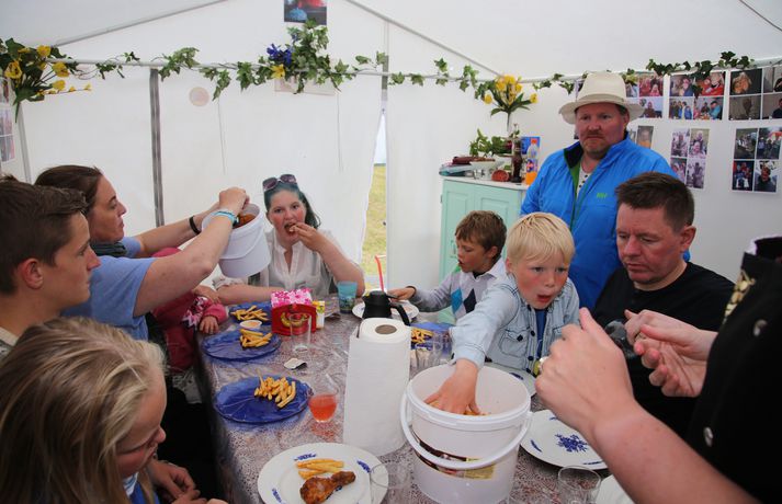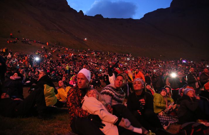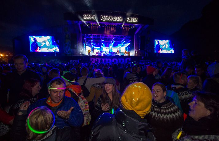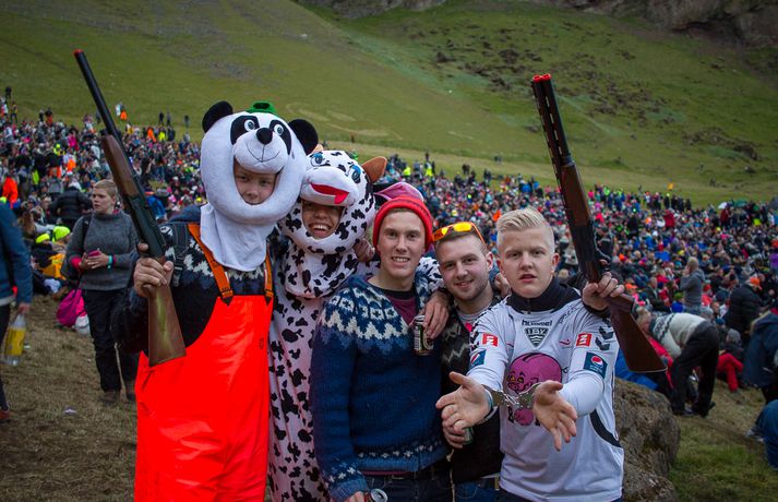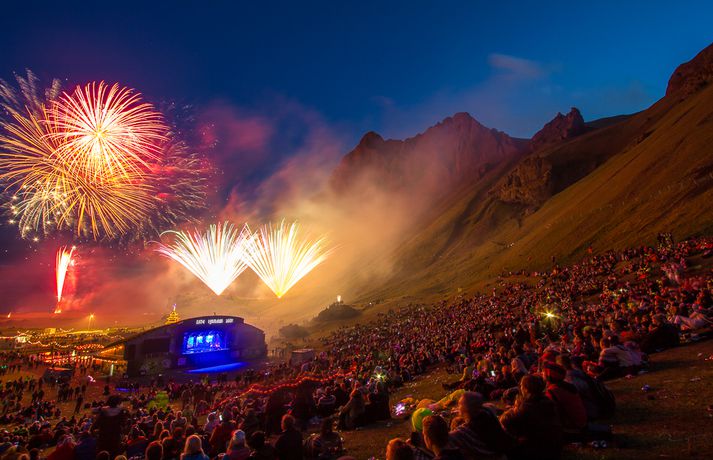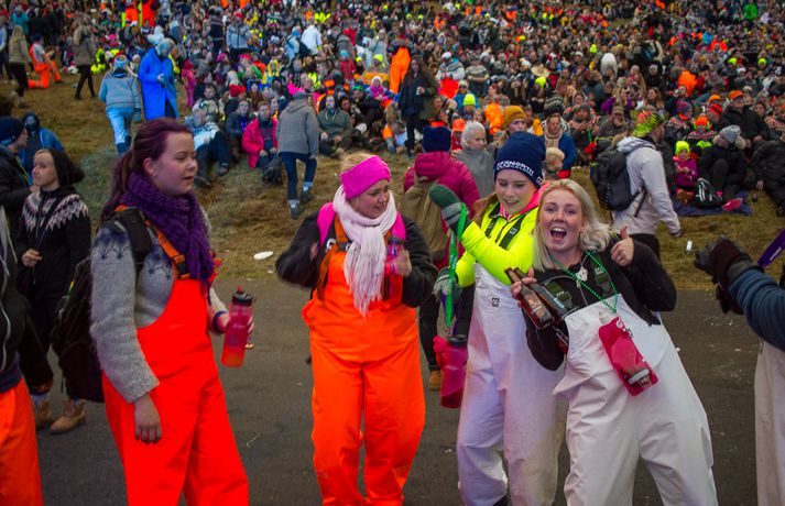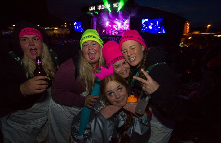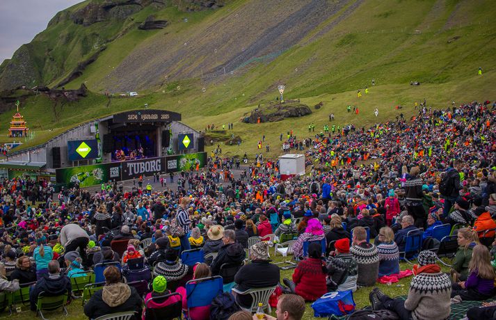Annað kvöld Þjóðhátíðar fór fram í gær en þá var boðið upp á heljarinnar flugeldasýningu líkt og venjan er á laugardeginum. Talið er að um tíu þúsund manns hafi verið samankomnir íklæddir ýmist pollagöllum eða hvers kyns sniðugum búningum. Heimamaðurinn Júníus Meyvant hóf dagskránna en í kjölfar hans fylgdu Ný Dönsk, AmabAdamA, Jón Jónsson, Maus, FM Belfast og Sálin hans Jóns míns. Var ekki annað að sjá en að meirihluti fólksins skemmti sér konunglega. Ljósmyndararnir Daníel Þór Ágústsson og Freyja Gylfadóttir voru í Herjólfsdal og náðu þessum stórskemmtilegu myndum af gestum hátíðarinnar.mynd/daníel þór ágústssonvísir/freyja
