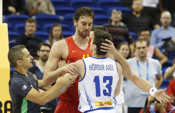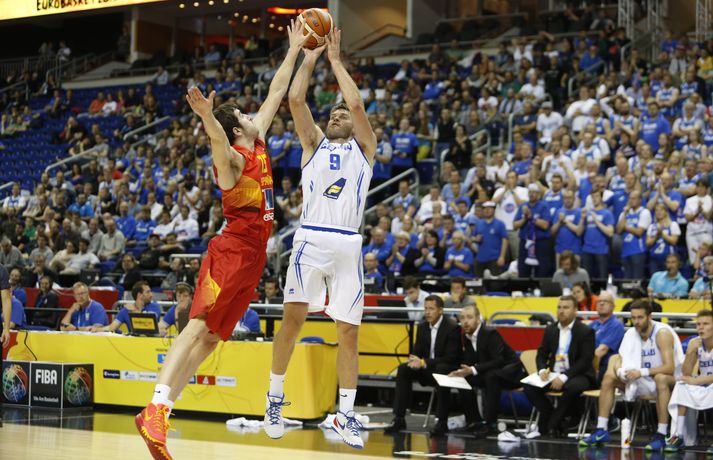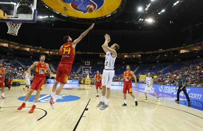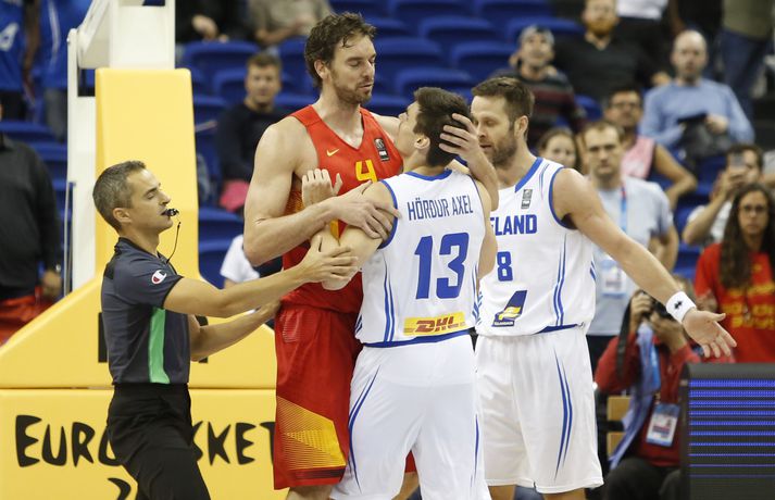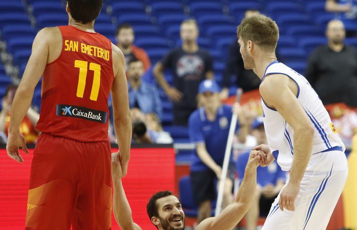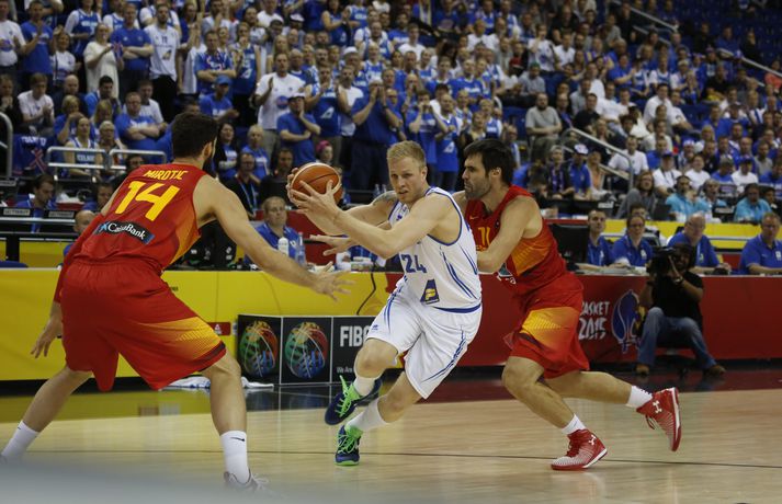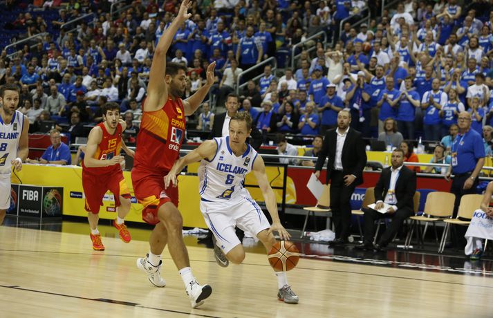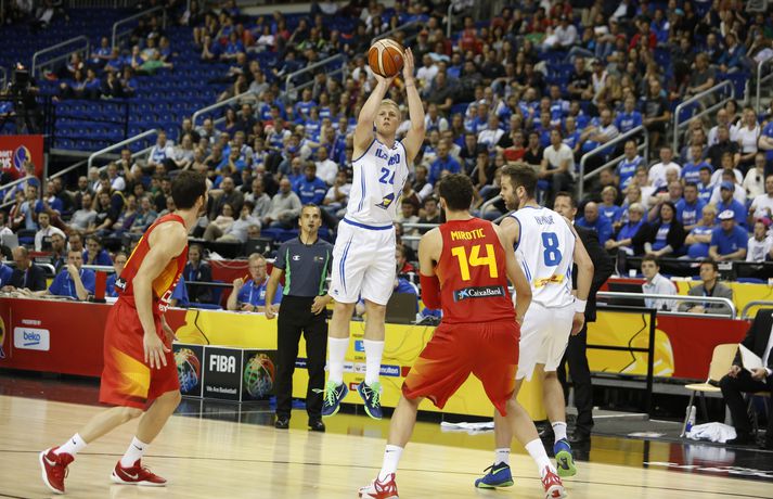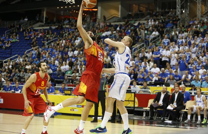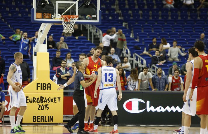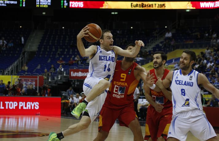 EM 2015 í Berlín Tengdar fréttir Haukur: Vorum hrikalega flottir í 20 til 30 mínútur Haukur Helgi Pálsson var næststigahæstur hjá íslenska körfuboltalandsliðinu í kvöld þegar liðið tapaði með 26 stigum á móti stjörnuprýddu spænsku landsliðinu í fjórða leik sínum í úrslitakeppni Evrópumótsins í Berlín. 9. september 2015 22:08 Hörður Axel: Ég lenti á vegg í byrjun leiks Hörður Axel Vilhjálmsson hitti ekki vel á móti Spánverjum í kvöld og viðkenndi það eftir leikinn að hann hafi lent á vegg í leiknum sem Spánverjar unnu með 26 stigum. 9. september 2015 22:47 Hlynur: Ekki vanur því að spila svona seint á kvöldin Hlynur Bæringsson, fyrirliði íslenska körfuboltalandsliðsins, gaf allt sitt að venju í kvöld þegar Ísland tapaði 99-73 á móti Spánverjum á Evrópumótinu í körfubolta í Berlín. 9. september 2015 21:56 Pavel: Veit ekki hvort ég mátti gefa treyjuna? Pavel Ermolinskij kveikti í íslenska liðinu gegn því spænska á Evrópumótinu í körfubolta í kvöld þegar hann setti niður þrjár þriggja stiga körfur á stuttum tíma í fyrri hálfleik. 9. september 2015 22:44 Jón Arnór: Var að spá í að auglýsa mig á Twitter Jón Arnór Stefánsson var að mörgu leyti sáttur með spilamennsku íslenska landsliðsins gegn því spænska, þrátt fyrir 26 stiga tap, 73-99. 9. september 2015 22:13 Umfjöllun, viðtöl og myndir: Ísland - Spánn 73-99 | Frábær kafli í fyrri en 26 stiga tap Íslenska körfuboltalandsliðið tapaði með 26 stiga mun á móti Spánverjum í kvöld, 99-73, í fjórða leik sínum á Evrópumótinu í körfubolta. 9. september 2015 20:30 Mest lesið Óskar Hrafn fer ekki fet Íslenski boltinn Hákon Rafn hélt hreinu þegar Brentford flaug áfram Enski boltinn Spánn og Þýskaland mætast í úrslitum Fótbolti Anguissa hetja meistaranna Fótbolti Martin öflugur í góðum sigri Körfubolti Verstappen telur sig ekki geta barist um titilinn Formúla 1 Leikið á Þróttaravelli á miðvikudag Fótbolti Jón Dagur gulltryggði sigurinn með sínu fyrsta marki Fótbolti Fær þrjár milljónir á dag næstu sex árin fyrir að gera ekkert Sport Vonast til að komast í Kórinn: „Menn hafa aldrei séð annað eins“ Fótbolti Fleiri fréttir Martin öflugur í góðum sigri Öllum leikjum Bónus-deildar kvenna í kvöld frestað Stólarnir ekki í vandræðum á Egilsstöðum Enginn Lakers-maður hafði náð þessu í meira en 52 ár Veðmál rædd í Körfuboltakvöldi: „Bara ævintýralega heimskulegt“ Kvöddu húsið og Nablinn klifraði í kveðjuskyni Martin naut sín í fræknum sigri á meisturum Bayern Tryggvi lykilmaður í sigri Bilbao Elvar skoraði tólf í naumu tapi Tilþrifin: Varin skot og ótrúlegar körfur Valsmanna Þriðja tapið í röð hjá Jóni og félögum Fáránlegt eða klókt hjá Kristófer? „Ef það má þá gerir fólk það“ Brassi tekur við af Billups „Það er æðislegt að kveðja húsið svona“ Uppgjörið: ÍA - Álftanes 76-74 | ÍA kvaddi Vesturgötuna með stæl Uppgjörið: Stjarnan - ÍR 91-93 | ÍR skellti meisturunum „Ekki æskilegt og ekki það sem körfuboltinn vill standa fyrir“ Nær fimmtán árum og ætlar með Ísland á HM Stjórnarmaður KKÍ auglýsir ólöglega veðmálastarfsemi Handtökur í NBA: Lak upplýsingum um meiðsli James og bað um bita af kökunni Mál Kristófers enn til skoðunar og fleiri komin á borð KKÍ Uppgjörið: Ármann-Keflavík 94-107 | Öruggt hjá Keflvíkingum Daníel: Ég fór í smá ævintýra starfsemi Uppgjörið: Þór Þ. - Valur 117-119 | Vals sigur eftir tvær framlengingar Uppgjörið: Njarðvík-Tindastóll 98-90 | Njarðvíkingar skelltu Stólunum Átti sumar engu öðru líkt „Ég held að bæði lið séu ekkert himinlifandi með sína frammistöðu“ Uppgjörið: Grindavík-KR 78-77 | Arnór Tristan með sigurkörfuna Þjálfari og leikmaður í NBA handteknir Sá eftirsóttasti treystir bara á pabba gamla Sjá meira