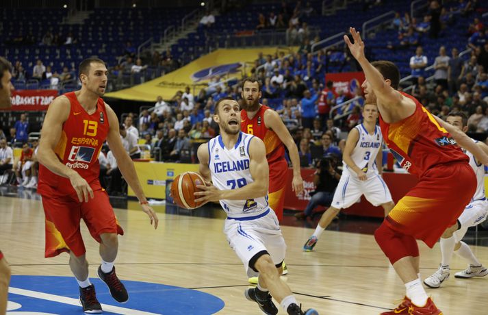 Umfjöllun, viðtöl og myndir: Ísland - Spánn 73-99 | Frábær kafli í fyrri en 26 stiga tap Íslenska körfuboltalandsliðið tapaði með 26 stiga mun á móti Spánverjum í kvöld, 99-73, í fjórða leik sínum á Evrópumótinu í körfubolta. 9. september 2015 20:30