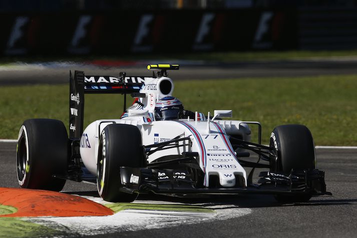 Lewis Hamilton kom fyrstur í mark í ítalska kappakstrinum. Athugun FIA á loftþrýsting í dekkjum Mercedes gæti leitt til brottvísunar Hamilton. Hver sagði hvað eftir skemmtilega keppni? „Ég er að verða gamall, það var mjög erfitt að verjast liðsfélaga mínum en það var frábært að koma yfir línuna,“ sagði sagði Felipe Massa á verðlaunapallinum. „Við höfum verið kallaðir til dómaranna. Við stilltum þrýstinginn eftir leiðbeiningum Pirelli sem er allt sem við getum gert. Þess vegna vildum við hafa bil fyrir aftan Lewis, ef við fáum refsingu. Við höfum ekki gert neitt rangt, þetta var bara til öryggis,“ sagði Paddy Lowe, tæknisstjóri Mercedes. „Við heyrðum undir lok keppninnar að loftþrýstingur í dekkjum hefði verið skoðaður og við höfum verið boðaðir til dómaranna. Það sem ég veit um þetta er að mestu komið úr slúðri á þjónustusvæðinu. „Ég get ekki tjáð mig um þetta. Ég veit ekkert um þetta og vissi ekki af þessu,“ sagði Hamilton, aðspurður um loftþrýstinginn í öðru afturdekki bílsins. Hann var 0,3 psi undir ráðleggingum Pirelli. „Það er ekki mitt að passa þrýstinginn. Liðið hefur staðið sig vel alla helgina. Formúla 1 snýst um að kreista allt út úr sér og bílnum. Meira get ég ekki sagt, ég er ekki búinn að hitta neinn,“ bætti Hamilton við.Valtteri Bottas kom í mark í fjórða sæti. Hann gæti þó orðið þriðji.Vísir/GettyPirelli hefur völd til að setja reglur um lágmarksloftþrýsting og fleira. Brot á slíkum reglum jafnast á við brot á öðrum tæknireglum. Hamilton eða Mercedes gætu þurft að sæta refsingu fyrir vikið. Refsingin gæti falið í sér að einhverjum tíma yrði bætt við heildarkeppnistíma Hamilton og því hvatti Mercedes Hamilton til að gefa allt í botn undir lok keppninnar.Nánar verður fylgst með framvindu þessa máls hér á Vísi. „Helgin í heild er búin að vera afar erfið. Það var vandamál með undirvagninn sem gerði það að verkum að ég þurfti að nota gömlu vélina sem sprakk svo í lokin,“ sagði Nico Rosberg sem datt úr keppni þegar tveir hringir voru eftir. „Þetta var góður dagur, ég hélt aðeins niður í mér andanum á síðasta hring þegar ökumennirnir okkar börðust á brautinni. Við leyfðum þeim að keppa,“ sagði Pat Symonds tæknistjóri Williams. „Ég býst við að ef til refsingar kemur verður hún hörð. Það er almennt hart tekið á brotum á tæknilegum reglum, þetta er líka öryggisatriði. Brottvísun úr keppni er refsingin sem notuð er í þessum tilfellum eftir minni reynslu,“ bætti Symonds við. „Ég held að loftþrýstingurin hafi verið athugaður á ráslínunni. FIA notar sinn mælir til að mæla svona. Þetta er öryggisatriði og það þýðir brottvísun,“ sagði Rob Smedley frammistöðustjóri Williams. „Ég hefði viljað ná honum undir lokin og hefði hugsanlega getað það hefðu verið nokkrir hringir í viðbót. Það er miklu skemmtilegra að vera á verðlaunapallinum en vera fjórði,“ sagði Valtteri Bottas sem er fjórði eins og er.