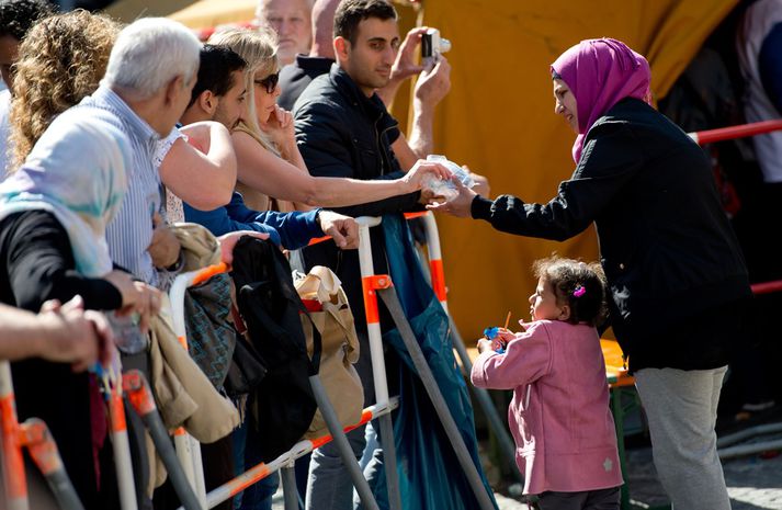 Þjóðverjar búa sig undir komu 40 þúsund flóttamanna næstu tvo daga Birgir Olgeirsson skrifar 12. september 2015 16:42 Margir Þjóðverjar hafa tekið flóttamönnum opnum örmum. Vísir/EPA Yfirvöld í Þýskalandi undirbúa sig nú fyrir komu fjörutíu þúsund flóttamanna til landsins á næstu tveimur dögum. Það er tvöfaldur fjöldi þeirra flóttamanna sem komu til landsins um síðastliðna helgi. Fréttastofa breska ríkisútvarpsins BBC segir frá komu 3.600 flóttamanna til Munchen-borgar í morgun. Jafnframt segir BBC frá vaxandi áhyggjum þar í borg hvernig yfirvöld eigi að bregðast við ef jafn stór hópur er væntanlegur þangað. Þýski herinn hefur verið kallaður út til að koma vistum til flóttamanna. Þýskaland hefur orðið að ákjósanlegum áfangastað fyrir flóttamenn frá Sýrlandi eftir að Angela Merkel, kanslari Þýskalands, lýsti því yfir að Dyflinarreglugerðinni yrði ekki beitt gegn þeim. Tug þúsundir flóttamanna hafa farið í gegnum Tyrkland, Balkanskagann og Ungverjaland til að komast til Austurríkis, Þýskalands og Svíþjóðar. Borgarstjóri Munchen, Dieter Reiter, hefur hvatt aðrar borgir í Þýskalandi til að efla aðstoða sýna við flóttamenn. Hann sagði það vera hneykslanlegt hvernig önnur svæði Þýskalands hefðu ekki boðið flóttamenn velkomna. BBC segir ríkisstjórn Þýskalands vera að íhuga að taka yfir ónotað leiguhúsnæði í landinu og koma flóttamönnum þar fyrir. Mest lesið Virðist ekki vera hægt á Íslandi Innlent Hiti geti mest náð átján stigum Veður Hyggst kæra dyraverði Auto til lögreglu Innlent „Ótrúlega sorglegt að pabbi sé búinn að vera svona lengi í þessari stöðu“ Innlent Ný könnun Maskínu: „Væri alveg ný staða í íslenskum stjórnmálum“ Innlent Gaf fingurinn á Miklubraut Innlent Stytting framhjá Blönduósi ekki á samgönguáætlun Innlent „Bandaríkin eiga ekki að taka yfir Grænland“ Erlent „Ég hef aldrei upplifað annan eins harm“ Innlent Breiddi út faðminn fyrir rasista: „Þið þurfið ekki að biðjast afsökunar á að vera hvít lengur“ Erlent Fleiri fréttir „Bandaríkin eiga ekki að taka yfir Grænland“ Nýr ritstjóri stöðvaði umfjöllun um brottvísanir Trump Breiddi út faðminn fyrir rasista: „Þið þurfið ekki að biðjast afsökunar á að vera hvít lengur“ Sprengdu rússneskan hershöfðingja í loft upp í Moskvu Undirbúningur árásarinnar stóð yfir í marga mánuði Trump skipar sendifulltrúa fyrir Grænland Segir unnið að því að móta sameiginlega nálgun Bandaríkjanna, Úkraínu og Evrópu Sýknaður af nauðgun eftir að hafa verið skimaður fyrir sjaldgæfri svefnröskun Málið sem Trump getur ekki losað sig við Grunaður um manndráp eftir að tveggja ára drengur féll úr blokk Fóru um borð í vélvana rússneskt skip Baulað á Albanese á minningarathöfn á Bondi-strönd Kvarta yfir ritskoðun Epstein-skjala: „Við vitum ekki hvað við vitum ekki“ Níu skotnir til bana á krá Sextán ára fékk greitt fyrir að færa Epstein stúlkur Ljósmyndir horfnar úr Epstein-skjölunum, þar á meðal ein af Trump Vilja dauðarefsingu af borðinu vegna hagsmunaáreksturs ráðherra Pútín sagður hafa valið Witkoff Gerðu umfangsmiklar árásir gegn ISIS í Sýrlandi Það helsta úr fyrsta skammti Epstein-skjalanna Epstein-skjölin birt Draga tilvist neðanjarðarhafs á Títan í efa Réðust á skip úr skuggaflotanum þúsundir kílómetra frá Úkraínu Enn fleiri myndir úr safni Epsteins: „En hún vill þúsund dali fyrir hverja stúlku“ Trump vill til tunglsins fyrir 2028 Herða reglur og ráðast í endurkaup á skotvopnum Morðinginn í Brown háskóla fannst látinn Evrópa samþykkir 90 milljarða evra lán til Úkraínu Rannsaka tengsl skotárásarinnar við annað morð Sex um borð í einkaþotu sem hrapaði Sjá meira