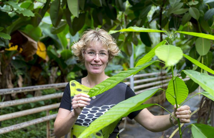 Rækta kakó- og kaffibaunir í gróðurhúsi í Hveragerði Kristjana Björg Guðbrandsdóttir skrifar 11. september 2015 07:00 Guðríður Helgadóttir segir fyrstu kakóuppskeruna væntanlega. vísir/vilhelm „Við fengum fræ af kakóplöntum fyrir þremur árum og stærsta plantan er orðin einn og hálfur metri á hæð, við vonumst til að fá kakó af henni fljótlega,“ segir Guðríður Helgadóttir, staðarhaldari á Reykjum í Ölfusi. Fimm plöntur þykja vænlegar og blómstra í hitabeltisgróðurhúsi. Í gróðurhúsinu er komin góð reynsla af ræktun kaffibauna. Þar eru fimm kaffirunnar sem gefa af sér góð aldin. „Það verður góð kaffibaunauppskera í ár, einn runni gefur gul aldin og annar rauð, þetta er mjög fínt kaffi. Fyrir ári buðum við fólki að kaupa kaffi af okkur, þá gat fólk bæði keypt sér kaffibolla og tekið með sér kaffi heim. Að sjálfsögðu var þetta dýrara en kaffi úti í búð, enda er ekki mikið magn í boði en þetta vakti mikla lukku. Ég er viss um að með vaxandi ferðamannaiðnaði gæti einhver ræktað íslenskt kaffi og kakó til sölu.“ Gróðurhúsið er frægast fyrir bananaræktun sína. „Hér í Hveragerði er stærsta bananaplantekra í Evrópu, segir Guðríður. „Það er enginn svona snarbilaður eins og við Íslendingar að rækta banana á norðurhjara veraldar. Svo ræktum við litlar villiappelsínur sem eru rosalega góðar í alls konar marmelaði.“Íslenskar kaffibaunir hafa verið ræktaðar í Hveragerði um árabil.vísir/vilhelmGuðríður segir ljóst að sérframleiðsla sem þessi sé alltaf dýrari enda plássfrek. Aðrir hluti vegi þar á móti. „Við erum með okkar eigin hitaveitu þannig að við erum ekki að greiða fyrir það. Við gætum verið að rækta miklu fleiri tegundir en við gerum núna. Þetta er skemmtilegt verkefni og sögulegar minjar sem við erum að reyna að varðveita því við erum búin að rækta hitabeltisgróður í sextíu ár í Hveragerði.“ Mest lesið „Alla mína ævi var ég að reyna að verja hann fyrir kynþáttafordómum“ Innlent Saksóknari handtekinn við skemmtistað í sumar Innlent Lítið hægt að gera við kínverska vagna Strætó annað en að stöðva þá Innlent Björgunarsveitarkona miður sín: Fékk ítrekaðar athugasemdir um húðlit Neyðarkallsins Innlent Blóðugt barn eftir tilefnislausa árás í Kringlunni Innlent Þjófarnir lifðu eins og kóngar um stund Innlent Skulda annarri konu fleiri milljónir vegna launamismunar Innlent Gallinn varði í átta vikur og tveir komust úr landi Innlent Nauðguninni flett upp í LÖKE hjá þremur embættum Innlent Grunaður barnaníðingur komi ekki lengur nálægt BHM Innlent Fleiri fréttir Fjöldi gesta á vellinum myndi takmarkast við 5000 Mikil hætta skapist sé ekið á nýsteypta brúna Nauðguninni flett upp í LÖKE hjá þremur embættum Þyrstir fagna komu jólabjórsins til byggða Fær ekkert greitt því að hann er Íslendingur Óbreytt klukka stöðutaka gegn vísindum og lýðheilsu Bjargey meðferðarheimili: „Þetta var eins og lúxusneyslurými“ „Lúxus-neyslurými“, klukkan umdeilda og tímamót á börum Gallinn varði í átta vikur og tveir komust úr landi Saksóknari handtekinn við skemmtistað í sumar Tafir vegna óhapps við Sprengisand Meti kostnað og ábyrgð annarra á að greiða varnargarða Ný heilsugæslustöð tekin í notkun á Flúðum Lítið hægt að gera við kínverska vagna Strætó annað en að stöðva þá Skulda annarri konu fleiri milljónir vegna launamismunar „Þetta er flókið verkefni og ekki hægt að ráða við allar aðstæður“ „Set alvarlegt spurningamerki við að draga út einstaka þjóðerni fólks“ Engin eðlisbreyting þó fangavörðum sé breytt í starfsfólk Grafalvarleg staða hjá Norðuráli og frumvarp um brottfararstöð komið fram Staðgengill ríkislögreglustjóra til starfa í lagadeild HR „Alla mína ævi var ég að reyna að verja hann fyrir kynþáttafordómum“ Jafnréttisbaráttan gangi líka út á að gefa körlum tækifæri Ekki lengur gert ráð fyrir að fangaverðir starfi í brottfararstöð „Mig langar til að tala eins og Íslendingur – nákvæmlega eins og Íslendingur“ Kólnun á fasteignamarkaði: Færri skoða og lægra verð „Fullt af munum sem myndu ekki ganga kaupum og sölum á markaði“ Gagnrýnisverð hegðun Starfsmenn meðferðarheimilis: Fíkniefni, öryggisbrestir og óvirkt eftirlit Ugla Stefanía nýr sérfræðingur Reykjavíkurborgar Upplausn á meðferðarheimili og fleiri fölsuð lyf Sjá meira