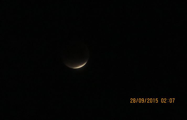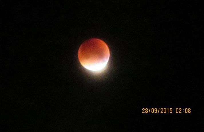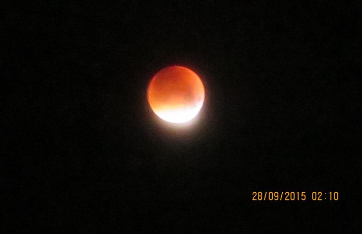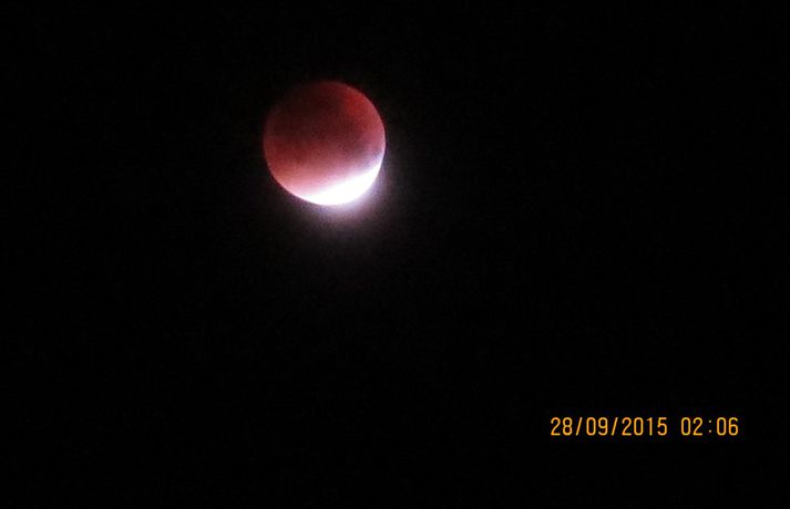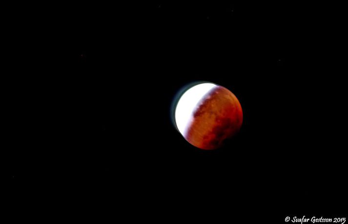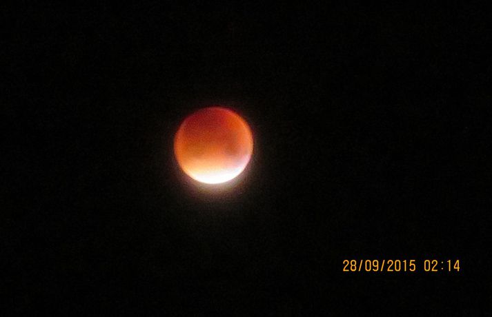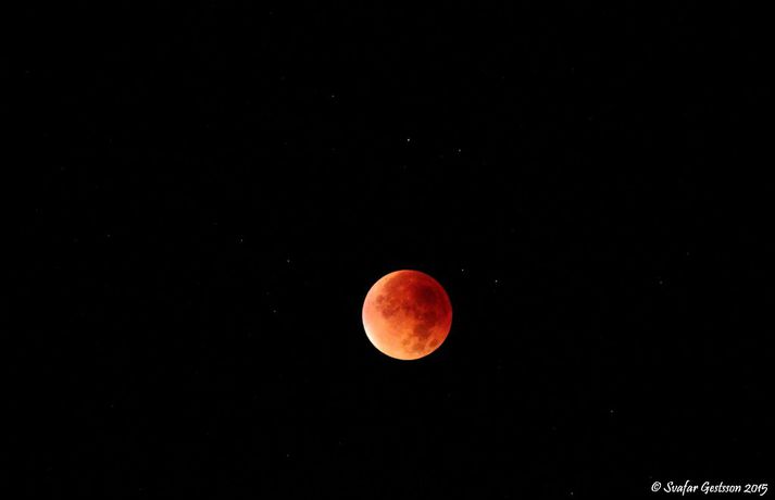 Tengdar fréttir Íslendingar fá að berja blóðrauðan ofurmána augum Almyrkvi verður á tungli aðfaranótt mánudagsins 28. september, sem mun sjást að öllu leyti frá Íslandi, ef veður leyfir. 22. september 2015 22:53 Ætlar þú að vaka í nótt? Vísir auglýsir eftir myndum af blóðmánanum Almyrkvi verður á tungli í nótt og mun hann sjást að öllu leyti frá Íslandi, þar sem veður leyfir. 27. september 2015 14:37 Mest lesið Harpa Elín Haraldsdóttir er látin Innlent „Menn eiga ekki að vera að hnýsast í gögn sem þeim koma ekki við“ Innlent Stefnt að leiðtogaprófkjöri eftir áramót og kunnugleg nöfn mögulega í pottinum Innlent Lögreglan innsiglaði Flóka Innlent Grunaðir um hundruð milljóna króna þjófnað en ganga lausir Innlent „Upp er runninn Kristrúnar Frostaveturinn mikli“ Innlent Starfsmaður Múlaborgar ákærður Innlent „Lífsgæðin mín hafa verið tekin aftur í burtu frá mér“ Innlent Fer fram og til baka með SNAP Erlent Snúin staða Sönnu og sameiginlegt framboð virðist ekki í kortunum Innlent Fleiri fréttir Tali ekki fyrir unga Miðflokksmenn Flestir vantreysta ráðherrum Flokks fólksins Eltihrellir lögreglukvenna situr inni fyrir morð Þjófarnir margfölduðu upphæðir við millifærslur Taldi sig sjá bát hvolfa og þyrla og björgunarsveit kölluð út Ákærður fyrir að skjóta að dróna Fiskistofu Grunaðir um hundruð milljóna króna þjófnað en ganga lausir Hundruð kennara nýta gervigreind til að undirbúa kennslu „Upp er runninn Kristrúnar Frostaveturinn mikli“ Starfsmaður Múlaborgar ákærður Gleðiefni að útkomuspá ársins sé á núlli Stefnt að leiðtogaprófkjöri eftir áramót og kunnugleg nöfn mögulega í pottinum Miðflokkurinn með eigið útspil í öryggis- og varnarmálum „Menn eiga ekki að vera að hnýsast í gögn sem þeim koma ekki við“ Reikna með tæplega nítján milljarða afgangi á næsta ári Tekinn í tíunda skipti dópaður og réttindalaus Uppsagnir hjá Icelandair og borgin kynnir fjárhagsáætlun næsta árs „Lífsgæðin mín hafa verið tekin aftur í burtu frá mér“ Bein útsending: Kynnir sína fyrstu fjárhagsáætlun Ölvaður en ekki barnaníðingur Líklegast að Reykjavíkurleiðin taki breytingum eftir umsagnir Harpa Elín Haraldsdóttir er látin Snúin staða Sönnu og sameiginlegt framboð virðist ekki í kortunum Lögreglan innsiglaði Flóka „Við vorum komin með súrefniskúta heim“ Tveir reyndir lögreglumenn ákærðir fyrir brot í starfi Lögreglumenn ákærðir fyrir uppflettingar og hlerun Sækja slasaðan sjómann djúpt austur af landinu Miðflokkurinn nálgast Sjálfstæðisflokkinn óðfluga Óvænt stólaskipti skyggðu ekki á Bandaríkjareisuna Sjá meira