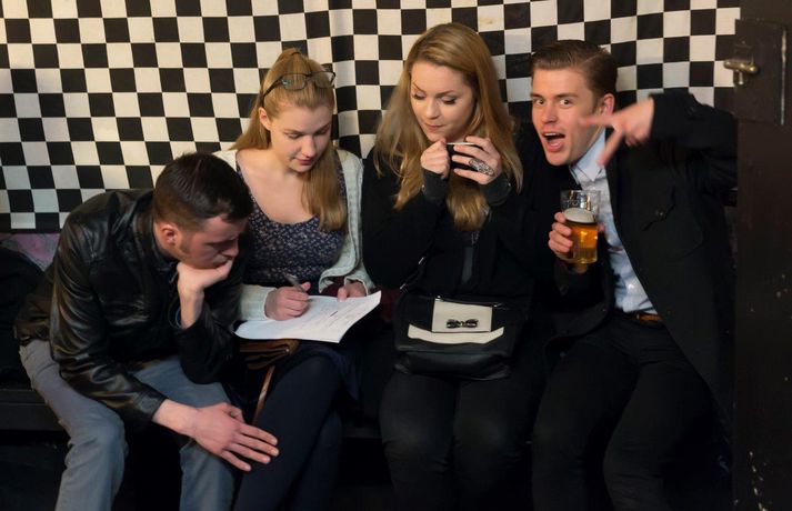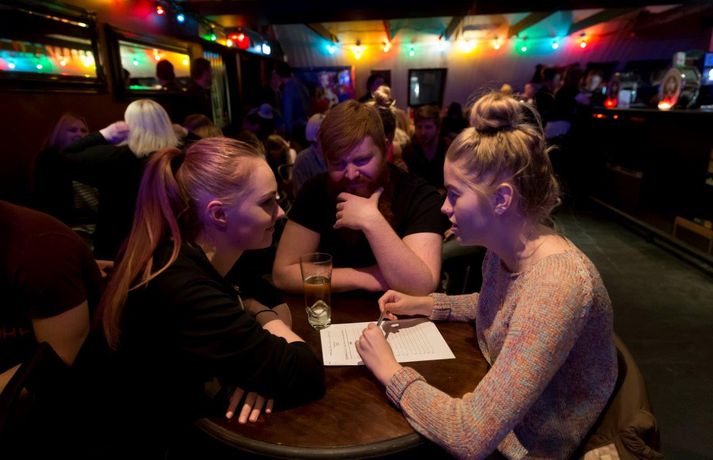 Spreyttu þig á Friends Pub Quiz-inu sem var á Gauknum Stefán Árni Pálsson skrifar 24. september 2015 13:37 Fullt var út úr dyrum á Gauknum í gær. Meðfylgjandi myndir voru teknar á Gauknum í gær. vísir/vilhelm „Það aftur verður Pub Quiz eftir nokkra mánuði og verður prófið þá mun erfiðara,“ segir Sólveig Johnsen, spurningahöfundur, sem fór fyrir Friends Pub Quiz-inu í gærkvöldi. Fullt var út úr dyrum á Gauknum í gær þar sem keppnin fór fram. Allar spurningar voru bornar fram á ensku til að fá sem flesta á staðinn. Spurt var ýmis konar spurninga um sjónvarpsþættina vinsælu og voru tveir til fimm saman í liði. „Það kom einfaldlega í ljós í gær að fólk veit miklu meira um þættina en ég gerði mér grein fyrir. Þetta var í raun með ólíkindum. Við höfum ákveðið að halda annað svona kvöld og þá verða spurningarnar mun erfiðari.“ Hér að neðan geta lesendur Vísis spreytt sig á nokkrum vel völdum spurningum sem fram komu í gærkvöldi. Alls voru um fimmtíu spurningar í Quiz-inu en Sólveig hefur valið nokkrar út fyrir lesendur Vísis.Svörin má finna hér. Spurningarnar eru á ensku, þar sem Pub Quiz-ið fór einmitt fram á ensku.1) What did Joey buy as a gift for his girlfriend Kathy on her birthday?2) What was the name of Monica´s boyfriend who tried to become „The Ultimate Fighting Champion“?3) What is the giant poking device made from?4) What did Chloe take from Ross´s apartment after they had sex?5) Who swallowed a Scrabble piece?6) How many times has Ross been married?7) What is the name of Joey´s agent?8) Why did Phoebe wait for hours on the phone?9) What was the nickname given to Rachel by her sorority sisters?10) What was the name of „the wine guy“ that Monica dated?11) What was the advice that Rachel gave Ross about sex with Julie?12) What is the name of Rachel´s younger sister?13) The girls got somebody else´s pizza delivered by mistake. Who did the pizza belong to?14) What did Phoebe find in a soda can?15) Which actress plays Ross´s and Monica´s mother?16) Where did Phoebe meet David?17) Who does Rachel dress up as to fulfill Ross´s fantasy?18) Who did Phoebe have sex with at Ralph Lauren?19) Which friend was the first to find out about Monica and Chandler (being together)? And which was the last?20) Which friend dated a person with an unusually large head? Svörin má nálgast hér.Láttu okkur vita í ummælakerfinu hvað þú varst með mörg rétt svör. Mest lesið Litlu munaði að þyrlan þyrfti að nauðlenda Lífið „Fólk hló og grét til skiptis“ Lífið Tíu stellingar sem örva G-blettinn Lífið Fréttatía vikunnar: Staða íslenskunnar, ríkislögreglustjóri og formannskjör Lífið Glæsihús augnlæknis til sölu Lífið Af og frá að fimmti þáttur hafi verið klipptur extra mikið Lífið Bubba svarað og „barnaleg vitleysa“ í Borgó Menning Ólöf Skafta og Kristín dannaðar í miðborginni Lífið Seld sú hugmynd að grannur líkami sé það eina sem er aðlaðandi Lífið Vörur sem börnin geta erft Tíska og hönnun Fleiri fréttir Litlu munaði að þyrlan þyrfti að nauðlenda „Fólk hló og grét til skiptis“ Fréttatía vikunnar: Staða íslenskunnar, ríkislögreglustjóri og formannskjör Tíu stellingar sem örva G-blettinn Einstök íslensk verk sem hlutu hönnunarverðlaunin Fleiri lög berjast um farseðilinn þrátt fyrir óvissuna Glæsihús augnlæknis til sölu Ólöf Skafta og Kristín dannaðar í miðborginni Af og frá að fimmti þáttur hafi verið klipptur extra mikið Áföll og samskiptamynstur erfast milli kynslóða Tíu töff pelsar fyrir veturinn „Mjög pirruð út í hvort annað eftir frumsýninguna“ Ölgerðin lítur Orkutal „öfgahægrisins“ alvarlegum augum Spennandi fiski-takkó fyrir alla fjölskylduna Kastaði sér niður fimmtán stiga: „Marinn, þjáður og aumkunarverður“ „Get ekki hætt að hlusta og gráta“ Lögmálið um lítil typpi Dansandi bræður slá í gegn á stóra sviðinu Safaríkur kjúklingaréttur sem slær alltaf í gegn Smart og stílíseruð í Sigvaldablokk Stórstjörnur í snjóbrettasenunni fögnuðu Fann engin önnur ráð en „að ganga í söfnuð Votta Jehóva“ Einbýlishús í Garðabænum eftir miklar framkvæmdir Sérstök og sjaldgæf íslensk nöfn: „Vitanlega var mér strítt“ „Konan hans hlýtur að taka á honum þegar hún heyrir þetta“ Slær á sögusagnirnar með lúmskum skilaboðum Eins og sebrahestur umkringdur ljónum Sjáðu nýtt og stærðarinnar veitingasvæði í Smáralind Löggunni ekki boðið en mætti tvisvar til Jenner Binni ætlaði að sjóða kartöflur í hraðsuðukatli Sjá meira