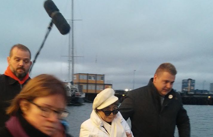Um fimmtán hundruð manns mættu í Viðey í kvöld til að fylgjast með Yoko Ono kveikja á Friðarsúlunni í níunda sinn. Kveikt er á súlunni á afmælisdegi Bítilsins John Lennon ár hvert, en hann hefði átt stórafmæli í ár og orðið 75 ára. Yoko mætti ásamt fylgdarliði sínu með bát frá Reykjavíkurhöfn og flutti ávarp fyrir viðstadda áður en kveikt var á súlunni en það gerði Dagur B. Eggertsson borgarstjóri einnig. Tvö af þekktustu lögum Lennon, Imagine og Give Peace a Chance, voru spiluð við tendrunina. Friðarsúlan lýsir upp himininn næstu vikur en á henni verður slökkt að vanda þann 8. desember, á dánardegi Lennon. Myndir frá athöfninni má sjá hér fyrir neðan.Yoko Ono og fylgdarlið heldur út í bátinn.Vísir/HMPÍ bátnum.Vísir/HMPStigið á land í Viðey.Vísir/HMPYoko og Dagur B. Eggertsson borgarstjóri héldu bæði hjartnæmar ræður.Vísir/HMPKveikt á Friðarsúlunni.Vísir/HMPFriðarsúlan séð frá Reykjavík.Vísir/AntonFriðarsúlan séð frá Reykjavík.Vísir/Anton