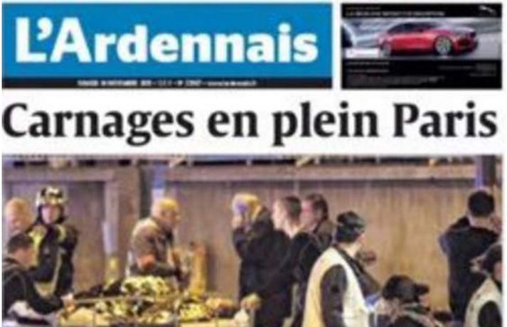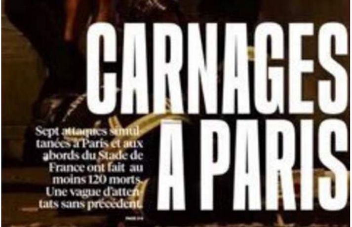 Augu heimsbyggðarinnar beinast nú að Parísarborg þar sem að minnsta kosti 128 liggja í valnum eftir stærstu hryðjuverkaárás í Evrópu síðan árið 2004. Allir helstu fjölmiðlar heims fylgjast grannt með gangi máli en margt er enn á huldu um árásina og heimildum ber ekki saman um hverjir standa að baki árásinni. Sjá einnig: Hryllingur í París: 120 látnir og 200 særðir eftir sprengju- og skotárásir víðsvegar um borgina Frakklandsforseti sagði þó í ávarpi nú fyrir skömmu að „barbarískir ISIS-menn“ hefðu framið verknaðinn sem hefur vakið óhug, en jafnframt samstöðu, um allan heim. Hér að ofan má sjá forsíður franskra fjölmiðla sem eru allar á einn veg. „Hryllingurinn“ eða „L‘Horreur“ er hugtak sem er mörgum þeirra tamt.