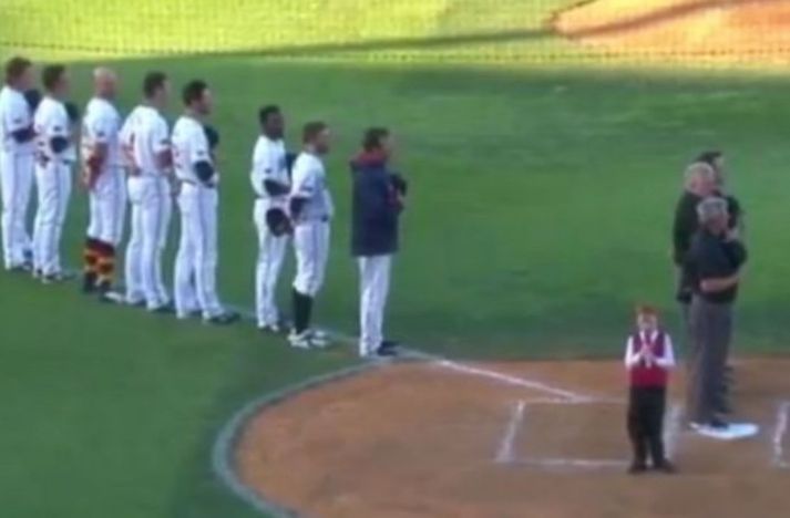 Ungur piltur fékk hikstakast þegar hann flutti þjóðsönginn Atli Ísleifsson skrifar 23. nóvember 2015 21:17 Flutningur Ethan Hall á þjóðsöng Ástralíu hefur skiljanlega vakið athygli. Sjö ára drengur vann hug og hjörtu áhorfenda á hafnaboltaleik Adelaide Bite og Brisbane Bandits eftir að hann fékk skyndilegt hóstakast þar sem hann flutti þjóðsöng Ástralíu fyrir leikinn. Ethan Hall segist ekki hafa hikað við að halda áfram, þrátt fyrir hikstakastið. Hann þyrfti að ljúka flutningnum til að leikurinn gæti nú örugglega byrjað.Í frétt Mirror kemur fram að Kylie, móðir Ethan, sé virkilega stolt af drengnum, enda hafi hann æft sig vel og lengi. Hún er himinlifandi með viðbrögðin sem flutningurinn Ethan á þjóðsöngnum hafi fengið. Mest lesið Brúðkaup ársins 2025 Lífið Þessi smurðu mest á reikning Jommunnar Lífið Cooper bað móðurina um hönd Hadid Lífið Einhverfir kaþólikkar um allan heim heita Þorlákur Lífið „Mér finnst gaman að láta sjokkera mig“ Lífið Heitt í hamsi hjá gestum á „helvíti á jörðu“ í Breiðholti Lífið Helvíti á jörðu: Emmsjé Gauti minnti á líkamsræktarþjálfara í maníu Gagnrýni Hefur misst vini og kunningja vegna skoðana sinna Lífið Veikindi eyðilögðu líka stóru stund Manúelu Lífið Glænýr bóksölulisti: Ólafur Jóhann skákar Arnaldi Menning Fleiri fréttir Þessi smurðu mest á reikning Jommunnar Einhverfir kaþólikkar um allan heim heita Þorlákur Cooper bað móðurina um hönd Hadid „Mér finnst gaman að láta sjokkera mig“ Brúðkaup ársins 2025 Heitt í hamsi hjá gestum á „helvíti á jörðu“ í Breiðholti Chris Rea hefur ekið heim um jólin í síðasta skipti Saga jarðaði alla við borðið Vísa ásökunum Skinner um kosningasvindl á bug Kimmel ávarpar bresku þjóðina: Frábært ár fyrir fasisma „Ég hugsa til þín á hverjum einasta degi“ Stjörnulífið: Óskar tíkunum gleðilegra jóla Veikindi eyðilögðu líka stóru stund Manúelu Hefur misst vini og kunningja vegna skoðana sinna Leitin á Svínafellsjökli sem hefur enn ekki skilað árangri Krakkatía vikunnar: Ísskápastríð, Eivör og Grafarvogur „Við byrjuðum að hlusta á jólalög í júlí“ Frægir fundu ástina 2025 Íslenska stelpan sem gerðist mormóni Fréttatía vikunnar: Rob Reiner, Dóra Björt og fullir unglingar 500 Esjuferðir á árinu: „Sumir hrista bara hausinn og lygna augunum“ Útgefandi Walliams lætur hann róa Fáklæddir barþjónar þegar Regnboginn opnaði í Bíó Paradís Þriðja stigs krabbameinið það besta sem kom fyrir hann Dúnninn bakaður í fjóra sólarhringa til að drepa allt í honum Heilsu krónprinsessunnar hrakar gríðarlega Pete orðinn pabbi Nýkominn úr meðferð og „sjaldan verið betur nýsleginn túskildingur“ Laufey á lista Obama „Ég heyrði þá kalla á mig en gat engu svarað“ Sjá meira