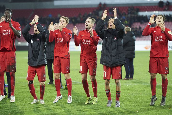 Formaður Midtjylland: Við erum litlir en getum unnið Man. United Tómas Þór Þórðarson skrifar 14. desember 2015 18:00 Strákarnir í Midtjylland fagna sæti í 32 liða úrslitum Evrópudeildarinnar. vísir/getty Danmerkurmeistarar Midtjylland drógust gegn Manchester United í 32 liða úrslitum EVrópudeildarinnar og mætast liðin heima og að heiman þegar keppnin heldur áfram í febrúar. Midtjylland hefur staðið sig stórkostlega í Evrópudeildinni á þessu tímabili, en í forkeppninni skellti það enska liðinu Southampton. Í riðlakeppninni náði liðið svo öðru sæti í D-riðli og var þar á undan stórliðum frá Belgíu og Póllandi; Club Brugge og Legíu Varsjá. Rasmus Ankersen, stjórnarformaður Midtjylland, þekkir vel til á Englandi eftir að sinna sama starfi hjá Brentford. Hann leyfir sér að vera bjartsýnn fyrir leikina en er þó mjög raunsær. „Við erum lítið lið með lítið fjármagn. Við getum ekki unnið lið með því að eyða meira þannig við þurfum að úthugsa mótherja okkar og það höfum við gert vel í Evrópudeildinni hingað til,“ segir Ankersen í viðtali við BT Sport. Manchester United er í miklu basli þessa dagana en liðið er án sigurs í síðustu fimm leikjum og tapaði gegn nýliðum Bournemouth í úrvalsdeildinni um síðustu helgi. „Það er ekki mikill séns að við vinnum Manchester United en það er hægt og við erum tilbúnir í baráttuna. Við erum búnir að vinna annað enskt lið nú þegar í keppninni þannig við erum klárir í slaginn,“ segir Rasmus Ankersen. Evrópudeild UEFA Mest lesið Stór nöfn úr leik á HM í pílukasti Sport Dómarinn hlýtur mikið lof fyrir stundarbræði í garð Jake Paul og Joshua Sport Ronaldo á nærbuxunum lætur Elon Musk efast um sjálfan sig Fótbolti Gleði og sorg í sigri Liverpool Enski boltinn Slot fámáll um stöðuna á Isak Enski boltinn Gyökeres skaut Arsenal aftur á toppinn Enski boltinn Calvert-Lewin hættir ekki að skora Enski boltinn Donni fagnaði EM vali með skotsýningu Handbolti Körfuboltakvöld: Tilþrif tímabilsins til þessa Körfubolti Madrídingar anda ofan í hálsmálið á Börsungum Fótbolti Fleiri fréttir Madrídingar anda ofan í hálsmálið á Börsungum Calvert-Lewin hættir ekki að skora Gyökeres skaut Arsenal aftur á toppinn Ronaldo á nærbuxunum lætur Elon Musk efast um sjálfan sig Orri Steinn kominn með nýjan þjálfara Slot fámáll um stöðuna á Isak Gleði og sorg í sigri Liverpool Real Madrid - Sevilla | Tekst að róa ástandið fyrir jól? Willum spilaði sinn fyrsta leik í tæpa fjóra mánuði Dramatík er Broja reyndist hetja Burnley Haaland frábær er Manchester City komst á toppinn Skagastrákarnir áttu misjöfnu gengi að fagna Afríkukeppnin verður haldin á fjögurra ára fresti Andri Lucas skoraði í langþráðum sigri Blackburn Chelsea vann upp tveggja marka forskot á St James' Park Ekkert fararsnið á Guardiola sem segir að City verði að vera undirbúið Tíu bestu mörkin úr leikjum Liverpool og Tottenham Salah bað samherjana afsökunar Lineker fokillur við blaðamann: „Þvílíkt kjaftæði“ Skírði soninn LFC og Mac Allister lét draum feðganna rætast Varði fjórar vítaspyrnur með brotna hendi Immobile skaut Bologna í úrslit Jóga og pílates lykillinn að snöggri endurkomu Hrannar Snær til Noregs Breiðablik, Valur og Þór/KA fengu milljónir vegna EM Elías mættur til meistaranna Syrgir góðan félaga í Åge: „Ótrúlega leiðinlegt að hann sé nú farinn“ KR sagt vera að landa Arnóri Ingva Fantasýn: „Hann setti allt á 3 og það kom upp 19“ Karólína Lea því miður of snemma í jólafrí Sjá meira