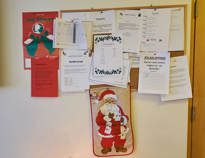 Að Sogni í Ölfusi hefur verið rekið opið fangelsi í þrjú ár. Áður var þar réttargeðdeild. Blaðamenn heimsóttu fangelsið og ljósmyndarinn Anton Brink slóst með í för. „Reynslan af Sogni hefur verið mjög góð,“ segir Margrét Frímannsdóttir, forstöðukona á Sogni og Litla-Hrauni. Fangelsið að Sogni hefur verið starfandi í þrjú ár eða frá því að Réttargeðdeild var flutt þaðan og í bæinn. Pláss er fyrir 22-23 fanga þar en áður var rekið opið fangelsi að Bitru í eitt ár en starfsemin svo færð á Sogn. Um svokallað opið fangelsi er að ræða en það felur í sér að engar girðingar eða múrar afmarka fangelsið. Þar hefur hver fangi sitt herbergi og heimilislegt um að litast.Tilkynningataflan á Sogni. Þarna geta menn skráð sig í jólaklippingu, svo dæmi sé tekið.Fangar þurfa að fylgja þeim reglum sem settar eru í fangelsinu en brjóti þeir þær þá eru þeir sendir í öryggisfangelsi. Flestir sem afplána á Sogni eru karlmenn en nú eru þar tvær konur og ein kona afplánaði þar nokkra mánuði. „Þeir sem fara í opið úrræði eru þeir sem geta átt eftir sirka tvö ár af afplánun eða þangað til þeir fara á Vernd eða í rafrænt eftirlit.“Fylgst er með öllum ferðum fanganna - þó að fangelsið sé opið og enga múra eða rimla sé þar að finna.Fangar taka virkan þátt í heimilishaldinu, sumir vinna við eldamennsku, þrif, þvotta og annað sem viðkemur húshaldi og viðhaldsstörfum meðal annars. Á staðnum er að finna gróðurhús. „Menn geta fengið heimild til þess að vinna á næstu bæjum og við erum líka í samstarfi við mjög gott fyrirtæki í Hveragerði sem heitir Fengur. Nokkrir hafa fengið að spreyta sig þar í vinnu. Þetta er auðvitað ómetanlegt í endurhæfingu og að búa menn undir að takast á við lífið eftir afplánun.“Fangar sjá sjálfir um að elda og önnur heimilisstörfReglur um heimsóknir eru ekki eins strangar í opnum fangelsum eins og lokuðum. Á Sogni geta fangar fengið heimsókn föstudaga, laugardaga og sunnudaga. Börn þeirra geta dvalið hjá þeim frá klukkan 10-17.A dögunum var haldið jólahlaðborð á Sogni, en fangelsið er fallega skreytt nú í desember Jólin eru haldin hátíðleg á Sogni og í síðustu viku voru fangar með jólahlaðborð sem þeir stóðu að sjálfir. „Þetta er dálítið eins og stór fjölskylda bara á jólunum,“ segir Margrét um jólin á Sogni.Herbergi á Sogni.Líkamsræktaraðstaðan á Sogni