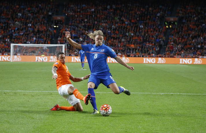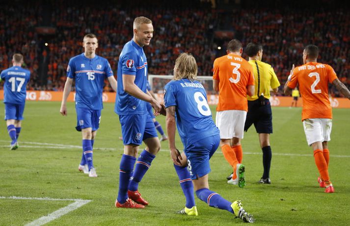 EM 2016 í Frakklandi Fótbolti Íslenski boltinn Tengdar fréttir Hannes: Getur orðið eitt svakalegasta partý á landinu á sunnudaginn Hannes Þór Halldórsson, markvörður íslenska liðsins, hélt marki sínu hreinu í fimmta sinn í undankeppni EM 2016 í kvöld þegar Ísland vann 1-0 sigur á Hollendingum á Amsterdam Arena. 3. september 2015 23:15 Gylfi Þór: Aldrei áður verið stressaður að taka víti Gyfli Þór hafði á tilfinningunni að Ísland mundi fá víti. Ákvað hvert hann myndi skjóta í gær. 3. september 2015 22:18 Lars: Það er svo auðvelt að vinna með þessum strákum Lars Lagerbäck, þjálfari íslenska landsliðsins, var vissulega brosmildur eftir sigurinn á Hollandi í undankeppni EM í kvöld en þessi reyndi Svíi tók stærsta einum sigri Íslands frá upphafi á fótboltavellinum samt með sínu þjóðþekkta jafnaðargeði. 3. september 2015 22:03 Eiður Smári: „Já, ætlar þú ekki? Ég ætla á EM!“ "Menn mega grenja annað slagið. Ég held að menn muni ekkert sjá það aftur,“ sagði Eiður Smári Guðjohnsen eftir 1-0 sigurinn á Hollandi. 3. september 2015 22:07 Kári Árna: Besta íslenska landslið fyrr og síðar „Þetta er bara snilld. Frábært að fá að vera partur af þessu,“ segir miðvörðurinn Kári Árnason. 3. september 2015 22:41 Mest lesið Fær þrjár milljónir á dag næstu sex árin fyrir að gera ekkert Sport Stöðufundur í Laugardal klukkan 10:30 Fótbolti Elsta konan til klára Járnkarlinn Sport Enska úrvalsdeildin í jólaköttinn Enski boltinn Nýi íþróttastjóri Kjartans stal mörgæs og endaði í fangelsi í Singapúr Fótbolti Vonast til að komast í Kórinn: „Menn hafa aldrei séð annað eins“ Fótbolti Brendan Rodgers sagði starfinu sínu lausu eftir ásakanir Fótbolti Tyrkneska sambandið segir dómara hafa veðjað á þúsundir leikja Fótbolti Fylltu í eyðurnar: Vanmetnasti leikmaður deildarinnar? Enski boltinn Einkaviðtal við Carrick: „Hálfgerð tískubylgja sem einkennir fótboltann í dag“ Enski boltinn Fleiri fréttir Vonast til að komast í Kórinn: „Menn hafa aldrei séð annað eins“ „Alltaf gaman að fá nýjar raddir inn“ Gleðifréttir fyrir Argentínumenn: Messi vill spila á HM Stöðufundur í Laugardal klukkan 10:30 Enska úrvalsdeildin í jólaköttinn Nýi íþróttastjóri Kjartans stal mörgæs og endaði í fangelsi í Singapúr Tyrkneska sambandið segir dómara hafa veðjað á þúsundir leikja Brendan Rodgers sagði starfinu sínu lausu eftir ásakanir Segir sitt fyrrum lið í krísu Fylltu í eyðurnar: Vanmetnasti leikmaður deildarinnar? Fyrirliði Real Madríd þarf að fara í aðgerð á hné Einkaviðtal við Carrick: „Hálfgerð tískubylgja sem einkennir fótboltann í dag“ Markaóður Stefán Ingi eftirsóttur Öllu búin skildi snjóspáin raungerast „Eitthvað sem við erum óvanar eftir Þjóðadeildina“ Heimir kynntur til leiks í Árbænum Danir heiðra Michael Laudrup De Bruyne verður lengi frá Túfa rekinn frá Val Fyrrum markmannsþjálfari Liverpool látinn Juventus rak þjálfarann eftir aðeins sjö mánuði „Mikilvægt fyrir hópinn að fá þessa sigurtilfinningu“ Besta liðið aðeins í sautjánda sæti í mörkum í opnum leik „Varnarleikurinn er bara stórslys“ Blaðamannafundur KSÍ: Þorsteinn og Glódís sátu fyrir svörum Guardiola: Of snemmt til að hafa áhyggjur af Arsenal Kennir Carvajal um lætin eftir El Clasico Setja fjórtán milljarða í kvennadeildina Hárið í hættu hjá United manninum Mark úr horni, klippa Eze og punghögg Haalands Sjá meira