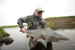 Flottur og vel haldinn lax sem veiddist í Langá um helgina.