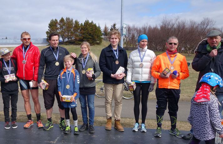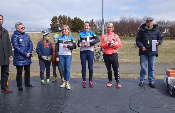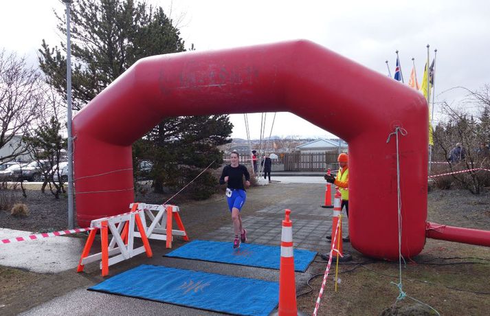 Fyrsta þríþraut sumarsins fór af stað í snjókomu Elísabet Margeirsdóttir skrifar 10. maí 2015 14:31 Úr Kópavogsþríþrautinni. Vísir/Elísabet M Fyrsta þríþrautarkeppni sumarsins, Kópavogsþríþrautin var haldin í dag í skrautlegu veðri til að byrja með. Synt var í útilauginni í Sundlaug Kópavogs og því næst hjólað og hlaupið um vesturhluta bæjarins. Keppnin var sprettþraut og eru vegalengdirnar eftirfarandi: 400 m sund, 10.3 km hjól og 3.5 km hlaup. Mótið var einnig hluti af stigakeppni í Íslandsmótinu í þríþraut. Þrátt fyrir snjókomu og mikinn kulda í morgunsárið var keppnin keyrð af stað á réttum tíma og Ármann kr. Ólafsson bæjarstjóri ræsti fyrsta hóp kl. 9:15. Keppni gekk almennt vel þó aðstæður hafi reynst sumum erfiðar einkum á hjólakaflanum. Tæplega 100 þátttakendur voru skráðir til leiks í einstaklingsþrautina í bæði opnum flokki (A) og flokki byrjenda (B). Einnig tóku um 100 manns þátt í fjölskylduþraut og nokkur lið samanstóðu af þremur kynslóðum. Ungir og upprennandi þríþrautarkappar á aldrinu 6-11 ára fengu loks að spreyta sig á tvíþraut á svæðinu. Helstu úrslit:A flokkur Konur 1. sæti: Sarah Cushing 45:03 2. sæti: Gígja Hrönn Árnadóttir 49:28 3. Þórunn Margrét Gunnarsdóttir 49:31 Karlar 1. sæti: Hákon Hrafn Sigurðsson 37:08 2. sæti: Sigurður Örn Ragnarsson 37:44 3. sæti: Rúnar Örn Ágústsson 38:03 Öll úrslit má finna á heimasíðu Þríkó Tengdar fréttir Struku frá Alcatraz-eyjunni Átta Íslendingar tóku þátt í þríþrautarkeppni sem kallast Flóttinn frá Alcatraz í San Francisco í sumar. Um tvö þúsund manns taka þátt í keppninni árlega. 18. júlí 2014 09:30 Þríþrautin verður sífellt vinsælli Í þríþraut er keppt í sundi, hlaupum og á hjóli og eru ýmsar vegalengdir farnar eftir því hverskonar keppni er í boði. 24. júlí 2014 09:00 Stefna á 85 kílómetra hlaup Elísabet Margeirsdóttir er með frábær innslög í Íslandi í dag þar sem fjallað er um hinar ýmsu útivistaríþróttir. Áhorfendur fá að kynnast fólki sem stundar þær af einskærri ástríðu en einnig þeim sem eru að stíga fyrstu skrefin. 17. apríl 2015 11:00 Mest lesið Hvað þýðir „six-seven“? Lífið Meðalmennskan plagar Brján Gagnrýni Aldrei of seint að prófa sig áfram Tíska og hönnun Kynslóðabilið kom í ljós þegar umræðan beindist að blautbolakeppni Lífið Vafðist tunga um tönn þegar Bond bar á góma Bíó og sjónvarp Hótelstjóri Hótels Tindastóls er allur Bíó og sjónvarp Skein skært í sögulegum gleðikonukjól Tíska og hönnun Smáforrit til að deila heimilisverkum: „Fæ þrjú stig fyrir að þurrka af á heimilinu“ Lífið Troðningur á yfirfullri opnun: „Þetta var svolítið kreisí“ Lífið Fékk lífið til baka á korteri eftir tólf ár af sársauka Lífið