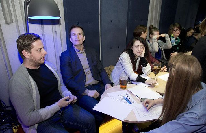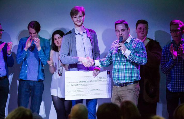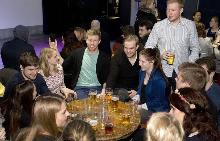 Lögfræðinemi reynist aðalspéfugl skólans Guðrún Ansnes skrifar 18. apríl 2015 12:00 Fyndnasti nemi HÍ- úrslitakvöld Ólöf, Helga og Maren Fyndnasti háskólaneminn fannst á sviði Stúdentakjallarans á fimmtudagskvöldið og varð lögfræðineminn Jóhannes Ingi Torfason þar hlutskarpastur. Stúdentaráð Háskóla Íslands stóð fyrir viðburðinum og segir formaðurinn, Aron Ólafsson, aðsóknina hafa farið algjörlega fram úr björtustu vonum. „Við urðum hreinlega að vísa fólki frá, það var alveg stappað,“ segir hann og bætir við: „Það tók gott korter að komast að barnum, það er ágætis mælistika á stöðuna.“ Segist Aron fullviss um að hér sé lagður grunnur að árlegum viðburði í félagslífi skólans. Halldóra Kristín Unnarsdóttir varð í öðru sæti og Brynjólfur Jóhann Bjarnason nældi sér í þriðja sætið. „Ég átti ekkert von á þessu, vonaði bara að einhver myndi hlæja smá,“ sagði Jóhannes auðmjúkur. Hann hlaut hundrað þúsund krónur í verðlaun og liggur beinast við að fá að vita hvað hann hyggist gera við peninginn. „Ég veit það ekki, en það er ágætt að geta notað ávísunina sem sönnun fyrir að brandararnir mínir séu í alvöru góðir, ef einhver efast einhvern tímann aftur um ágæti þeirra.“ Mest lesið Brúðkaup ársins 2025 Lífið Cooper bað móðurina um hönd Hadid Lífið Einhverfir kaþólikkar um allan heim heita Þorlákur Lífið „Mér finnst gaman að láta sjokkera mig“ Lífið Heitt í hamsi hjá gestum á „helvíti á jörðu“ í Breiðholti Lífið Helvíti á jörðu: Emmsjé Gauti minnti á líkamsræktarþjálfara í maníu Gagnrýni Hefur misst vini og kunningja vegna skoðana sinna Lífið Veikindi eyðilögðu líka stóru stund Manúelu Lífið Glænýr bóksölulisti: Ólafur Jóhann skákar Arnaldi Menning Leitin á Svínafellsjökli sem hefur enn ekki skilað árangri Lífið Fleiri fréttir Einhverfir kaþólikkar um allan heim heita Þorlákur Cooper bað móðurina um hönd Hadid „Mér finnst gaman að láta sjokkera mig“ Brúðkaup ársins 2025 Heitt í hamsi hjá gestum á „helvíti á jörðu“ í Breiðholti Chris Rea hefur ekið heim um jólin í síðasta skipti Saga jarðaði alla við borðið Vísa ásökunum Skinner um kosningasvindl á bug Kimmel ávarpar bresku þjóðina: Frábært ár fyrir fasisma „Ég hugsa til þín á hverjum einasta degi“ Stjörnulífið: Óskar tíkunum gleðilegra jóla Veikindi eyðilögðu líka stóru stund Manúelu Hefur misst vini og kunningja vegna skoðana sinna Leitin á Svínafellsjökli sem hefur enn ekki skilað árangri Krakkatía vikunnar: Ísskápastríð, Eivör og Grafarvogur „Við byrjuðum að hlusta á jólalög í júlí“ Frægir fundu ástina 2025 Íslenska stelpan sem gerðist mormóni Fréttatía vikunnar: Rob Reiner, Dóra Björt og fullir unglingar 500 Esjuferðir á árinu: „Sumir hrista bara hausinn og lygna augunum“ Útgefandi Walliams lætur hann róa Fáklæddir barþjónar þegar Regnboginn opnaði í Bíó Paradís Þriðja stigs krabbameinið það besta sem kom fyrir hann Dúnninn bakaður í fjóra sólarhringa til að drepa allt í honum Heilsu krónprinsessunnar hrakar gríðarlega Pete orðinn pabbi Nýkominn úr meðferð og „sjaldan verið betur nýsleginn túskildingur“ Laufey á lista Obama „Ég heyrði þá kalla á mig en gat engu svarað“ Opnar sig í fyrsta sinn: Kyssti yfirmanninn í fyrsta sinn þetta kvöld Sjá meira