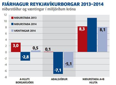 „Heildarniðurstaðan er náttúrulega jákvæð um 11 milljarða,“ sagði Dagur B. Eggertsson borgarstjóri um rekstrarniðurstöðu Reykjavíkur fyrir árið 2014. „Þar vegur árangur Orkuveitunnar auðvitað þyngst. En kjarasamningar hafa tekið í reksturinn og við munum standa þá vakt á næstunni um hvernig verði hægt að fjármagna það,“ segir hann. Í skýrslu fjármálaskrifstofu Reykjavíkurborgar kemur fram að launahækkanir og auknar lífeyrisskuldbindingar orsaki lakari rekstrarniðurstöðu A-hluta borgarsjóðs fyrir árið 2014 en gert var ráð fyrir. Þá hefur fjölgun starfsfólks borgarinnar ekki haft áhrif á þá niðurstöðu. „Eins og öll önnur sveitarfélög sömdum við um launahækkun við kennara í fyrra og aukin útgjöld stafa af samningum á vinnumarkaði,“ sagði Dagur. „Við munum auðvitað hagræða eitthvað á móti til að láta enda ná saman, við höfum ekkert leynt því.“Í skýrslu fjármálaskrifstofunnar kemur fram að A-hluti borgarsjóðs var rekinn með 2,8 milljarða króna halla en gert var ráð fyrir að afkoman yrði jákvæð um 488 milljónir króna. Þetta þýðir að afkoma A-hluta er lakari um 3,3 milljarða en gert var ráð fyrir. Þá er rekstrarniðurstaða Aðalsjóðs neikvæð um 7,1 milljarð króna en gert var ráð fyrir að hún yrði neikvæð um 5,1 milljarð króna sem er 1,9 milljörðum króna lakari niðurstaða en gert var ráð fyrir. Til samanburðar var afkoma A-hluta jákvæð um þrjá milljarða árið 2013 og afkoma Aðalsjóðs jákvæð um 64 milljónir sama ár. „Ég lýsti yfir áhyggjum af þessu fyrir okkar hönd,“ sagði Halldór Halldórsson, oddviti borgarstjórnarflokks Sjálfstæðisflokksins, um rekstrarniðurstöðu A-hluta borgarsjóðs og Aðalsjóðs. „Þetta er rosalega mikil aukning, um 10 milljarðar á milli ára.“ Halldór segir að nauðsynlegt sé að bregðast við þessum hallarekstri. „Í ræðu minni í borgarstjórn í fyrradag [þriðjudag] sagði ég að planið í kringum Orkuveituna hefði gengið vel og það er fagnaðarefni, en nú er tími til kominn til að gera nýtt plan. Plan um A-hluta borgarsjóðs. Það þarf að stokka hlutina upp. Það gengur ekki að skatttekjur borgarinnar dugi ekki fyrir rekstri hennar,“ sagði hann. Heildarafkoma A- og B-hluta Reykjavíkur stendur þó ágætlega en rekstrarniðurstaðan var 11 milljarðar sem er nokkuð meira en væntingarnar sem voru 8,1 milljarður króna. Í greinargerð fjármálskrifstofu kemur fram að heildarsamstæða Reykjavíkur standi sterkt, sér í lagi vegna afkomu Orkuveitu Reykjavíkur.