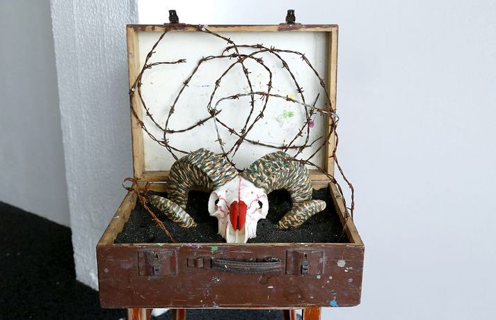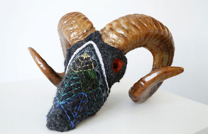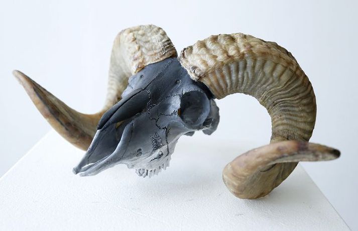 Hausinn fullur af hugmyndum Vera Einarsdóttir skrifar 4. ágúst 2015 10:30 Dreamkeeper eftir Guðmann Þór Bjargmundsson. Höfuðverk er yfirskrift sýningar sem var opnuð í Anarkiu Listasal í Hamraborg um miðjan síðasta mánuð. Þar gefur að líta verk eftir tólf ólíka listamenn sem öll eru unnin úr hauskúpum hrúta. Jóhannes Óskar Sigurbjörnsson, bóndi á Þorgrímsstöðum á Vatnsnesi, stendur á bak við sýninguna en hann hefur um nokkurt skeið fengist við að hreinsa og vinna höfuðkúpur og bein hinna ýmsu dýra og skapa úr þeim listmuni undir merkinu Natural Bones Design.Jóhannes Óskar.Síðastliðið vor datt Jóhannesi Óskari í hug að fá til liðs við sig hóp listamanna og fékk hver um sig í hendur hauskúpu af hrút og var uppálagt að nota hana sem efnivið í listaverk. Útkoman er afar fjölbreytt. Afraksturinn er sýndur í Anarkiu, ásamt hreinum hauskúpum frá Jóhannesi Óskari. Jóhannes Óskar hafði gert talsvert af vegglistaverkum úr hauskúpunum en langaði að prófa að gera úr þeim fleiri muni. „Ég var með hausinn fullan af hugmyndum en komst bara ekki yfir að framkvæma þær allar. Þá datt mér í hug að fá fleiri til liðs við mig. Útkoman kom mér skemmtilega á óvart og þarna eru jafnt skúlptúrar sem nytja- og listmunir. Sjálfur var Jóhannes Óskar spenntur fyrir því að koma ljósi inn í kúpurnar og fékk eigendur fyrirtækisins Ljósberans Skermagerðar til að aðstoða sig við að búa til óvenjulegan lampa „Ég laumaði honum með á sýninguna undir dulnefninu Kropor Mazz, en þau hjá Ljósberanum voru sjálf með upplýsta, útskorna kúpu. En hvernig voru þátttakendurnir valdir? „Ég lagði upp með að vera bæði með þekkta og lítt þekkta listamenn. Þetta er ýmist fólk sem ég hafði samband við eða frétti af verkefninu og kom að máli við mig. Á opnuninni kom svo upp hugmynd um að gera þetta enn viðameira og er aldrei að vita nema af því verði,“ segir Jóhannes Óskar. Sýningin hefur að hans sögn fengið góðar viðtökur og mætti fjöldi fólks á opnunina. „Mér er sagt að það hafi verið mjög vel mætt miðað við árstíma og gaman að þetta skuli vekja athygli.“ Jóhannes Óskar hefur lengi haft brennandi áhuga á listum; jafnt tónlist, myndlist og nytjalist. „Ég bý yfir miklum sköpunarkrafti og finnst gaman að vinna með efnivið sem aðrir myndu flokka sem rusl.“ Jóhannes Óskar nálgast beinin aðallega í sláturhúsinu á Hvammstanga og þarf að vinna þau umtalsvert svo þau sómi sér vel á vegg eða sem annars konar heimilisprýði. „Það þarf að sjóða hausana og þrífa hornin vel til að fjarlægja alla fitu. Svo þarf að saga hornin til og koma þeim aftur á hausana.“ Jóhannes Óskar er hvergi nærri hættur og hefur verið að prófa sig áfram með refa-, fugla- og hvalabein svo dæmi séu nefnd. Aðspurður segir hann útlendinga sérstaklega áhugasama um kúpurnar og hefur fengið talsvert af pöntunum að utan. „Ætli okkur Íslendingum þyki þetta ekki meira hversdagslegt.“Joker eftir Kropor Mazz/Davíð Bjarnason.Sýningin í Anarkiu stendur til 16. ágúst en þar er opið alla daga nema mánudaga frá 15-18. Áhugasömum er jafnframt bent á Facebook-síðuna Natural Bones Design. Mest lesið Vinsælustu myndböndin á Vísi á árinu Lífið Íslenskur mágur Rex Heuermann efins um ódæði hans Lífið Ásgeir Kolbeins furðu lostinn yfir steini í jólapakkanum Lífið „Fyrri kona mannsins míns er með Parkinson, ekki ég“ Áskorun Frægir fjölguðu sér árið 2025 Lífið Sat uppi með sex kíló af kæstri skötu Lífið Skilaði týndum heyrnartólum alla leið til Hamborgar Lífið Jólagjafir íslenskra vinnustaða Lífið Þakkar Trump í ólettutilkynningunni Lífið Sjáðu nýja stiklu úr stjörnuprýddri hasarmynd Balta Lífið Fleiri fréttir Sjálfur jólasveinninn skotspónn samsæriskenninga Þakkar Trump í ólettutilkynningunni Íslenskur mágur Rex Heuermann efins um ódæði hans Vinsælustu myndböndin á Vísi á árinu Frægir fjölguðu sér árið 2025 Gítarleikari The Cure er látinn Skilaði týndum heyrnartólum alla leið til Hamborgar Sjáðu nýja stiklu úr stjörnuprýddri hasarmynd Balta Ásgeir Kolbeins furðu lostinn yfir steini í jólapakkanum Viðtöl ársins 2025: Missir, afsögn ráðherra, umsáturseinelti og læknir sem þóttist vera með krabbamein Sat uppi með sex kíló af kæstri skötu Kristmundur Axel tók við af Bubba Seinfeld og Friends-leikari látinn Jólagjafir íslenskra vinnustaða Deildar meiningar um lyktina: „Þetta er byrjendaskata“ Fréttamenn gæða sér á skötu í gegnum árin Laufey á landinu Þar sem vinsælustu lög landsins verða til Þessi smurðu mest á reikning Jommunnar Einhverfir kaþólikkar um allan heim heita Þorlákur Cooper bað móðurina um hönd Hadid „Mér finnst gaman að láta sjokkera mig“ Brúðkaup ársins 2025 Heitt í hamsi hjá gestum á „helvíti á jörðu“ í Breiðholti Chris Rea hefur ekið heim um jólin í síðasta skipti Saga jarðaði alla við borðið Vísa ásökunum Skinner um kosningasvindl á bug Kimmel ávarpar bresku þjóðina: Frábært ár fyrir fasisma „Ég hugsa til þín á hverjum einasta degi“ Stjörnulífið: Óskar tíkunum gleðilegra jóla Sjá meira
