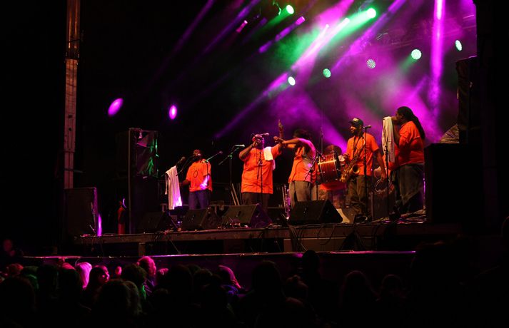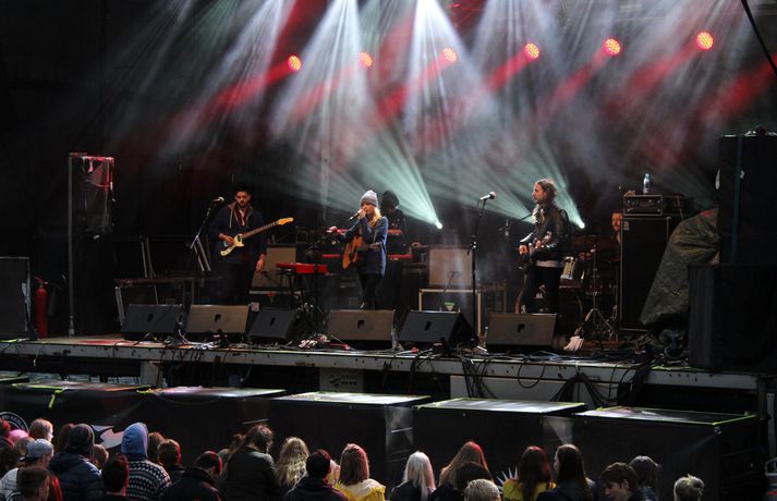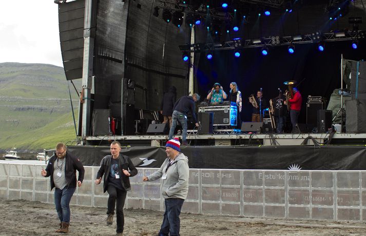 G! Festival er stærsta árlega útirokkhátíðin í Færeyjum. Þetta árið fór hún fram núna um helgina. Á fjórða hundrað tónlistarmenn afgreiddu um sjötíu dagskráratriði á þremur sviðum í Götu á Austurey. Að venju komu þeir frá ýmsum löndum. Í ár frá Malí, Austurríki, Bandaríkjunum, Finnlandi, Ítalíu, Írlandi og Danmörku auk Færeyja og Íslands. Fulltrúi Íslands í ár var hljómsveitin Agent Fresco. Áður hafa spilað á G! Festivali meðal annarra Skálmöld, Hjálmar, Mugison, Enzími, Bloodgroup, Dr. Spock og margir fleiri. Uppruna G! Festivals má rekja til Kidda kanínu (einnig kenndur við Hljómalind). 2002 stóð hann fyrir yfirgripsmiklu átaki til að kynna færeyska tónlist á Íslandi. Hann skipulagði hljómleikaferðir færeyskra tónlistarmanna um Ísland. Hann bauð upp á færeyska hljómleika hvar sem því var við komið. Íslendingar tóku Tý (Ormurin langi), Eivöru, 200, Hanusi G., Kristian Blak og fleiri færeyskum tónlistarmönnum opnum örmum. Jón Týril, gítarleikari hljómsveitar Eivarar, Clickhaze, fékk innblástur: Að setja færeyska tónlist í fjölþjóðlegt samhengi með alvöru tónlistarhátíð í Færeyjum. Fram til þessa var það færeyskum tónlistarmönnum framandi hugsun að spila utan Færeyja. Haustið 2002 ýtti Jón Týril G! Festivali úr vör. Í ár hófst G! Festival að venju á rólegu nótunum á fimmtudegi; með lítt þekktum nöfnum. Þessi dagur er hugsaður sem upphitun fyrir fjölmennt starfslið. Þungi straumurinn liggur á hátíðina eftir vinnulok almennings á föstudeginum. Vandamálið var að flóðgáttir himins opnuðust um það leyti. Helliregn setti allt úr skorðum. Færeyingar eru vanari rigningu en flestir aðrir jarðarbúar. Hún er þó oftar mildur úði fremur en íslenskt skýfall. En nú var þetta alvöru rigning. Litla tæra lækjarsprænan sem rennur niður Suður-Götu breyttist í beljandi brúnt fljót er fossaði upp á bakka. Lát varð á straumi gesta inn á hátíðarsvæðið. Þegar upp var staðið urðu gestir ekki eins margir og undanfarin ár. Að sögn festivalsstjórans, Sigvarar Laksá, var heildarfjöldinn eitthvað á fimmta þúsund (að meðtöldum erlendu fjölmiðlafólki, skemmtikröftum, gæslu og öðrum starfsmönnum). Í góðu árferði er hann um og yfir sjö þúsund. Einstaka dagskrárlið var frestað til laugardags. Öðrum fannst rigningin góð. Margir drógu ponsjó-regnslá úr vasa sínum. Hápunktar dagsins voru færeyska víkingametalbandið Hamradun og malíska blússveitin Songhoy Blues. Framvörður Hamradun er Pól Arni sem hérlendis gerði garðinn frægan sem söngvari Týs 2002.Á laugardeginum var komið besta veður. Fimm heitir pottar höfðu aðdráttarafl á sandströndinni fyrir framan stærsta sviðið. Pottverjar hlupu af og til út í sjó til að kæla sig. Hvít sölutjöld settu sterkan svip á hátíðarsvæðið. Þar var á boðstólum allt frá drykkjarföngum og heitum mat til hljómplatna og bóka. Eivör er ekki einungis drottning í huga Íslendinga heldur líka Færeyinga. Slíkur var troðningur inn á áheyrendasvæðið hjá henni að gæslan þurfti að hleypa inn í hollum. Sumir klifruðu upp á nálæg hús og veggi til að losna við troðninginn og sjá betur yfir svæðið. Í lok hvers lags var ákaft klappað. Annika Hoydal á einnig harðsnúinn aðdáendahóp. Hún heillaði Íslendinga um 1970 með laginu „Ólavur Riddararós“ sem hún söng með Harkaliðinu. Eivör hefur nefnt Anniku sem sterkan áhrifavald sinn. Agent Fresco rak endahnút á dagskrána. Liðsmenn hljómsveitarinnar voru afar ánægðir með allt á hátíðinni. Fagmennska í fyrirrúmi hvar sem niður var borið. Ekki síður voru þeir ánægðir með hlýjar móttökur áheyrenda. Ýmsir þekktu músíkina og sungu með. Sigvör staðfesti að engin vandræðamál hefðu komið upp á hátíðinni, fremur en áður. Engin slagsmál. Engar nauðganir. Enginn þjófnaður. Engin skemmdarverk. Athygli vakti hvað svæðið var snyrtilegt. Það var ekki fyrr en undir lok dagskrár hvers dags sem bera fór á plastglösum og einnota matarbökkum á jörðinni. Gæsla var fjölmenn og áberandi, jákvæð og glaðsleg. Börn á öllum aldri röltu frjáls og ein síns liðs um svæðið fram yfir miðnætti. Á tjaldstæðinu í Götu mátti sjá fjölda glæsilegra og dýrra tjalda. Sum með gluggum og fortjaldi. Öll splunkuný. Færeyingar taka þau ekki heim með sér heldur henda þeim í stóran ruslagám. Aðspurðir hvers vegna var svarið: „Þau eru búin að gera sitt gagn.“ En hvað með að nota það aftur á næsta ári: „Og geyma þetta flykki einhversstaðar í heilt ár?“ Þetta er þeim annarlegt. Tvö óhöpp skyggðu á annars frábæra helgi. Annars vegar rúllaði Dani 150 metra niður fjallið fyrir ofan Götukleif (á milli Suður- og Norður-Götu). Hann slasaðist töluvert og dvelur á sjúkrahúsi. Hins vegar hrapaði ný-sjálenskur maður af færeyskum ættum niður hamraklett fyrir ofan Norður-Götu. Hann lést. Þessi slys tengjast á engan hátt G!Festivali. Þau urðu langt fyrir utan hátíðarsvæðið. Um var að ræða almenna ferðamenn. Jens Guð og Gréta Hauksdóttir sóttu G!Festival heim í ár og deila reynslu sinni hér að ofan. Að neðan má sjá myndasyrpu Grétu frá hátíðinni.Annika Hoydal, Ólavur Riddararós og hringdans áheyrenda.Mynd/Gréta HauksdóttirEivör Pálsdóttir var á meðal þeirra sem tróðu upp.Mynd/GRéta HauksdóttirMynd/Gréta HauksdóttirKiddi Kanína og félagar.Krakkar í flæðarmáli og tónleikar í bakgrunni.Mynd/Gréta HauksdóttirSakaris spilar á hátíðinni.Mynd/Gréta Hauksdóttir