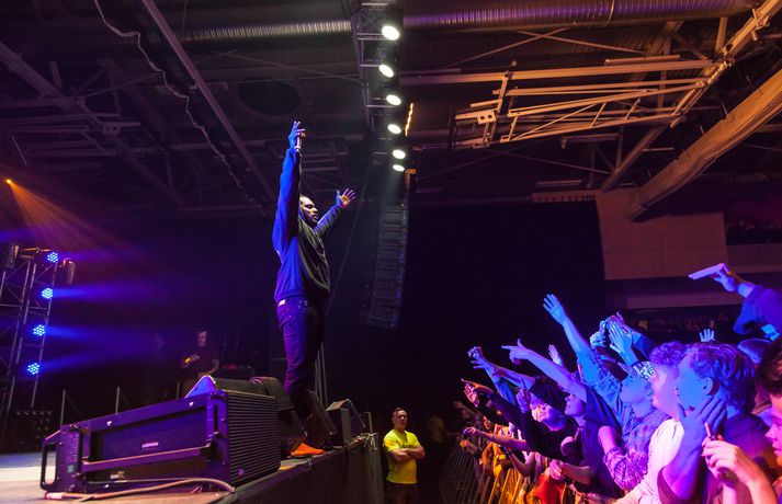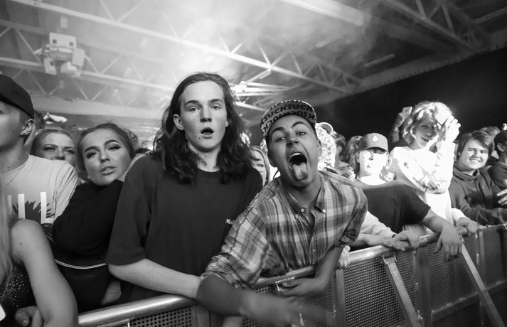 Rapparinn Schoolboy Q frá Los Angeles spilaði í Valshöllinni á laugardaginn. Um upphitun sáu sxsxsx, Aron Can og Emmsjé Gauti. Úlfur Úlfur mættu sem leynigestir og auk þess kom bandaríski rapparinn OG Maco óvænt á svið í miðju setti hjá Schoolboy Q og tók lagið.Bjössi og Helgi í sxsxsx hófu kvöldið og keyrðu stuðið í gang eins og sést vel hérna.Vísir/Mummi LúAron Can var fáránlega svalur eins og venjulega.Vísir/Mummi LúEmmsjé Gauti kom fólkinu í startholurnar og bjó það ágætlega undir komu Schoolboy Q á sviðið.Vísir/Mummi LúÞeir voru ófáir sem mættir voru til að berja Schoolboy Q augum, enda er hann nokkuð heitur í rappheiminum um þessar mundir.Vísir/Mummi LúTónleikagestir þyrptust að til að ná sem bestu stæði fyrir framan sviðið og myndaðist nokkuð löng röð af þeim sökum.Vísir/Mummi Lú