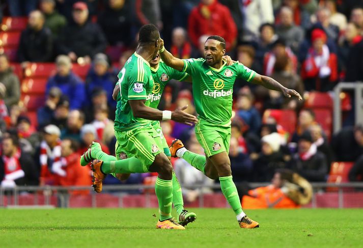 Klúður hjá Liverpool gegn Sunderland | Sjáðu mörkin Ingvi Þór Sæmundsson skrifar 6. febrúar 2016 17:00 Defoe fagnar jöfnunarmarki sínu. Vísir/Getty Liverpool fór illa að ráði sínu þegar liðið gerði 2-2 jafntefli við Sunderland á Anfield Road í dag.Mörkin úr leiknum má sjá hér að neðan.Jürgen Klopp gat ekki stýrt Liverpool í dag vegna botnlangabólgu. Hans menn glutruðu niður tveggja marka forystu á síðustu átta mínútum leiksins og þurftu því að sjá á eftir tveimur stigum. Roberto Firmino kom Liverpool yfir eftir klukkutíma leik með skalla eftir frábæra fyrirgjöf James Milner. Þetta var fimmta mark Brasilíumannsins á árinu 2016 en hann hefur verið sjóðheitur að undanförnu. Firmino var ekki hættur því hann lagði upp seinna mark Liverpool fyrir Adam Lallana á 70. mínútu. Heimamenn virtust ætla að sigla sigrinum örugglega í höfn en Adam Johnsen hleypti spennu í leikinn þegar hann skoraði með skoti beint úr aukaspyrnu á 82. mínútu. Skotið var gott en Simon Mignolet hefði líklega átt að gera betur í marki Liverpool. Það var svo Jermain Defoe sem tryggði Sunderland stig með fallegu marki mínútu fyrir leikslok. Liverpool er í 8. sæti deildarinnar með 35 stig en liðið hefur aðeins unnið einn af síðustu fimm deildarleikjum sínum. Sunderland er enn í 19. og næstneðsta sæti deildarinnar, nú með 20 stig.Liverpool 1-0 Sunderland Liverpool 2-0 Sunderland Liverpool 2-1 Sunderland Liverpool 2-2 Sunderland Enski boltinn Mest lesið Þessi tíu eru tilnefnd sem Íþróttamaður ársins 2025: 23 ára aldursmunur Sport Sagan ekki sönn: „Veit ekki hvaðan þetta á að hafa komið“ Íslenski boltinn Sakaður um niðurlægingu: „Við viljum ekki hafa hann sem þjálfara“ Handbolti Erfitt að vera í burtu þegar mamma greindist Fótbolti Slot mun sakna Isak í tvo mánuði eftir „glórulausa tæklingu“ Enski boltinn Kansas frá Kansas til Kansas Sport Einn leikmaður með samning og völlurinn ólöglegur Fótbolti Áfallið staðreynd og Isak búinn í aðgerð Enski boltinn Glódís framlengir samninginn við Bayern Fótbolti Missti alveg stjórn á skapinu en það skilaði sigri Körfubolti Fleiri fréttir Chelsea setur sig í samband við Semenyo Jiménez jafnaði bestu vítaskyttu sögunnar Slot mun sakna Isak í tvo mánuði eftir „glórulausa tæklingu“ Sjáðu „auma“ vítið sem skilaði Fulham sigri Fulham skildi Forest eftir við fallsvæðið Áfallið staðreynd og Isak búinn í aðgerð Fagnaði titli Liverpool sem óður maður um alla borg „Allir virðast elska hann“ „Þetta mun ekki buga okkur“ Guardiola mun vigta leikmenn Man City eftir jólin „Ef þið væruð Antoine Semenyo, hvert mynduð þið fara?“ Sjáðu mörkin: Rogers sá um Manchester United Óttast að Isak hafi fótbrotnað Tvenna frá Rogers tryggði Villa sigur gegn Manchester United Fimmta sinn sem Arsenal er á toppnum um jólin: Unnu ekki titilinn í fyrstu fjögur skiptin „Viljum við að okkar verði minnst fyrir að vera skræfur?“ „Ef dómarinn hefði sinnt sínu starfi almennilega hefði Romero ekki fengið spjald“ Haaland gaf barnabarni Hareide gjöf Sjáðu mörkin úr enska: Sviptingar, sænskt þema og svakalegar tæklingar Calvert-Lewin hættir ekki að skora Gyökeres skaut Arsenal aftur á toppinn Slot fámáll um stöðuna á Isak Gleði og sorg í sigri Liverpool Dramatík er Broja reyndist hetja Burnley Haaland frábær er Manchester City komst á toppinn Andri Lucas skoraði í langþráðum sigri Blackburn Chelsea vann upp tveggja marka forskot á St James' Park Ekkert fararsnið á Guardiola sem segir að City verði að vera undirbúið Tíu bestu mörkin úr leikjum Liverpool og Tottenham Salah bað samherjana afsökunar Sjá meira