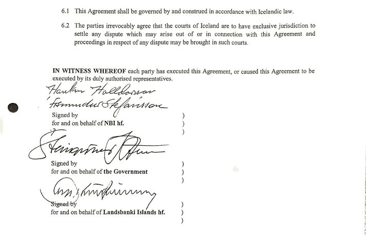 Sjáðu gögnin sem Vigdís segir sanna skjalafals Bjarki Ármannsson skrifar 10. febrúar 2016 10:45 Vigdís Hauksdóttir, formaður fjárlaganefndar Alþingis, sem ítrekað hefur gagnrýnt það að gögn sem snúi að endurreisn föllnu bankana skuli ekki vera opinber, segir samning um eignatilfærslu úr þrotabúi gamla Landsbankans sanna það að skjalafals hafi átt sér stað í fjármálaráðuneytinu í tíð síðustu ríkisstjórnar. Vigdís mætti með eintök sín af samningnum í viðtal við útvarpsþáttinn Í Bítið á Bylgjunni í morgun. Í samningnum, sem birtur hefur verið opinberlega, er vísað í lið 4.2 (b) sem vantar. Vigdís telur að þessi samningsliður hafi verið útmáður og hvatti þáttastjórnendur til að birta vinnugögn hennar á Vísi, en þau má finna með fréttinni. „Samkvæmt þessu vantar lið 4.2 (b) sem vísað er í hér að ofan, og fyrst það er kominn b-liður, þá vantar líka a-lið,“ sagði Vigdís í viðtalinu. „Þetta vísar í skilyrta skuldabréfið sem var fært inn í Landsbankann sem leiddi það af sér að ef starfsmenn bankans myndu geta rukkað lánasafnið upp í topp, rúma níutíu milljarða, af skuldugum heimilum og fyrirtækjum, þá fengju starfsmenn tvö prósent í Landsbankanum. Og það gekk eftir. Og þennan lið vantar, útskýringu á því.“Uppfært 12.05: Líkt og lesendur Vísis hafa bent á, er alls ekki ósennilegt að einfaldlega sé um innsláttarvillu að ræða og að vísa eigi í lið 3.2 (b) en ekki 4.2 (b), sem finnst hvergi. Tilvísunin er á þriðju síðu samningsins, sem skoða má í heild sinni neðst í fréttinni.Ekki í herferð gegn neinum sérstökum Vigdís hefur áður sakað starfsmenn fjármálaráðuneytisins um skjalafals. Hún hefur sagt að átt hafi verið við gögn um stofnun nýju bankanna á síðasta kjörtímabili sem þingmenn á Alþingi óskuðu eftir í fyrra. „Ég ætla ekki að benda á neinn sekan og það má enginn halda það að ég sé í einhverri herferð gegn einhverjum sérstökum,“ segir Vigdís meðal annars í viðtalinu. „Ég ber þá skyldu, sem kjörinn þingmaður þjóðarinnar, að upplýsa afglöp á vegum framkvæmdavaldsins.“ Sem fyrr segir, er samningurinn sem Vigdís vísar til í viðtalinu ekki trúnaðargagn. Þingmaðurinn segist þó telja að birta ætti öll trúnaðarskjöl um endurreisn bankanna og telur best að þingið fari í rannsókn á henni, sem og fyrri einkavæðingu bankanna. „Þjóðin verður að vita hvernig staðið var að einkavæðingu bankanna hinna síðari, þegar kröfuhöfum voru færðir nýju bankarnir á silfurfati á einni nóttu,“ segir hún.Hlýða má á viðtalið við Vigdísi í heild sinni í spilaranum hér að ofan. Tengdar fréttir "Það vita allir þingmenn að leynimappan er uppi í leyniherberginu“ Vigdís Hauksdóttir, þingmaður Framsóknarflokksins, gagnrýnir að gögn sem snúa að endurreisn bankanna skuli ekki vera opinber heldur ríki algjör trúnaður um þau. 1. febrúar 2016 08:37 Ekki í valdi ráðuneytisins að gera gögnin opinber Ástæða þess að hluti gagna, sem varða samninga stjórnvalda við kröfuhafa föllnu bankanna, hefur stöðu trúnaðargagna er tvíþættur. 1. febrúar 2016 16:23 Segir framkomu Eyglóar og Vigdísar gagnvart starfsmönnum fjármálaráðuneytisins óásættanlega Oddný Harðardóttir, fyrrverandi fjármálaráðherra, kemur starfsmönnum fjármálaráðuneytisins til varnar. 2. febrúar 2016 16:09 Mest lesið Aflýsa yfir þúsund flugferðum Erlent Fölsuð megrunarlyf líklega á leið til landsins Innlent Engin ástæða til að breyta neinu Innlent Nauðguninni flett upp í LÖKE hjá þremur embættum Innlent Óljóst hvað olli því að rútan hafnaði utan vegar Innlent Geta haft opið um helgar en algjör óvissa um húsnæðismálin Innlent Fær ekkert greitt því að hann er Íslendingur Innlent „Mikið svakalega hlakka ég til að hreinsa til í ráðhúsinu“ Innlent Sótti konuna á lögreglustöðina áður en hann réðst á hana Innlent Haldið föngnum neðanjarðar án sólarljóss mánuðum saman Erlent Fleiri fréttir Engin ástæða til að breyta neinu Fölsuð megrunarlyf líklega á leið til landsins Óljóst hvað olli því að rútan hafnaði utan vegar Geta haft opið um helgar en algjör óvissa um húsnæðismálin Brosið fer ekki af Hrunamönnum Eldur bak við innstungu reyndist minni háttar Hætta á fölsuðum megrunarlyfjum og leitað í ræturnar Útkall á mesta forgangi vegna kajakræðara í vanda „Mikið svakalega hlakka ég til að hreinsa til í ráðhúsinu“ Í beinni: Skyndifundur Sjálfstæðismanna á Grand Hotel Alltaf hægt að gera betur á meðferðarheimilunum Menningarverðlaun Árborgar til hjóna á Eyrarbakka Seatrips gert að greiða hundrað milljónir vegna tjóns á flutningaskipi Óskiljanleg lánaviðmið og Grammy-tilnefning stórstjörnunnar Eldur í þúsund fermetra fjósi með skepnum inni Happdrætti Háskólans sýknað af tugmilljóna kröfu Catalinu Veittist fyrst að dyravörðum og svo að lögreglumönnum Fluttur á slysadeild eftir hópárás Grunaður um að aka undir áhrifum með börnin aftur í Sótti konuna á lögreglustöðina áður en hann réðst á hana Hrekur Walt-Disney líkingar þingmanns Fjöldi gesta á vellinum myndi takmarkast við 5000 Mikil hætta skapist sé ekið á nýsteypta brúna Nauðguninni flett upp í LÖKE hjá þremur embættum Þyrstir fagna komu jólabjórsins til byggða Fær ekkert greitt því að hann er Íslendingur Óbreytt klukka stöðutaka gegn vísindum og lýðheilsu Bjargey meðferðarheimili: „Þetta var eins og lúxusneyslurými“ „Lúxus-neyslurými“, klukkan umdeilda og tímamót á börum Gallinn varði í átta vikur og tveir komust úr landi Sjá meira