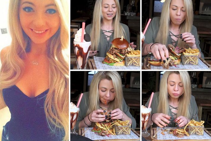 Slátraði 5000 kaloríu hamborgara á undir tíu mínútum - Myndband Stefán Árni Pálsson skrifar 1. mars 2016 15:30 Kate Ovens er greinilega mögnuð kona. vísir Kate Ovens er 21 árs nemi í Bretlandi sem hefur þann hæfileika að geta borðað mikið og það mjög hratt. Hún heldur úti YouTube-rás þar sem hún deilir myndböndum af sér þegar hún er svöng og fær sér í gogginn. Á dögunum fékk þá áskorun að borða 5000 kaloríu hamborgara sem er stærri en hausinn á henni. Hún gjörsamlega slátraði borgaranum og það á undir tíu mínútum. Hamborgarinn er á boðstólnum á veitingarstaðnum Jam Jar í Newcastle en hér að neðan má sjá þessa nettu konu slafra borgaranum í sig. Mest lesið Helvíti á jörðu: Emmsjé Gauti minnti á líkamsræktarþjálfara í maníu Gagnrýni Hefur misst vini og kunningja vegna skoðana sinna Lífið Veikindi eyðilögðu líka stóru stund Manúelu Lífið „Ég hugsa til þín á hverjum einasta degi“ Lífið Stjörnulífið: Óskar tíkunum gleðilegra jóla Lífið Leitin á Svínafellsjökli sem hefur enn ekki skilað árangri Lífið Wire-stjarna látin langt fyrir aldur fram Bíó og sjónvarp Kimmel ávarpar bresku þjóðina: Frábært ár fyrir fasisma Lífið Jólatónleikar eru ekki tónlist. Þeir eru neyðaraðgerð Gagnrýni „Sat í átta klukkutíma á dag og horfði út um gluggann“ Menning Fleiri fréttir Chris Rea hefur ekið heim um jólin í síðasta skipti Saga jarðaði alla við borðið Vísa ásökunum Skinner um kosningasvindl á bug Kimmel ávarpar bresku þjóðina: Frábært ár fyrir fasisma „Ég hugsa til þín á hverjum einasta degi“ Stjörnulífið: Óskar tíkunum gleðilegra jóla Veikindi eyðilögðu líka stóru stund Manúelu Hefur misst vini og kunningja vegna skoðana sinna Leitin á Svínafellsjökli sem hefur enn ekki skilað árangri Krakkatía vikunnar: Ísskápastríð, Eivör og Grafarvogur „Við byrjuðum að hlusta á jólalög í júlí“ Frægir fundu ástina 2025 Íslenska stelpan sem gerðist mormóni Fréttatía vikunnar: Rob Reiner, Dóra Björt og fullir unglingar 500 Esjuferðir á árinu: „Sumir hrista bara hausinn og lygna augunum“ Útgefandi Walliams lætur hann róa Fáklæddir barþjónar þegar Regnboginn opnaði í Bíó Paradís Þriðja stigs krabbameinið það besta sem kom fyrir hann Dúnninn bakaður í fjóra sólarhringa til að drepa allt í honum Heilsu krónprinsessunnar hrakar gríðarlega Pete orðinn pabbi Nýkominn úr meðferð og „sjaldan verið betur nýsleginn túskildingur“ Laufey á lista Obama „Ég heyrði þá kalla á mig en gat engu svarað“ Opnar sig í fyrsta sinn: Kyssti yfirmanninn í fyrsta sinn þetta kvöld Sex hundruð ára kastali Björns í Frakklandi svo gott sem klár Fyrirsát að Valgerði, Stund Pírata og meint alzheimer Þráins Bertelssonar „Það jafnar sig enginn eftir svona og við munum aldrei gera það“ Ungir sjálfstæðismenn gefa út vandræðalegt fjölskyldudagatal Keough sögð líffræðileg móðir Benjamin Travolta Sjá meira