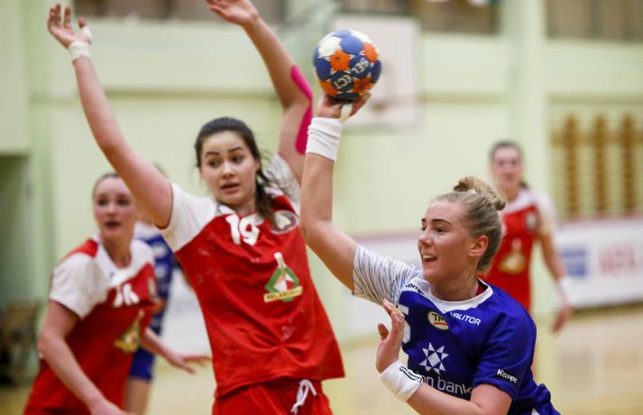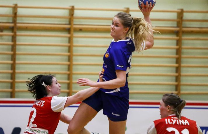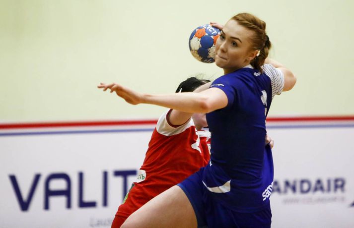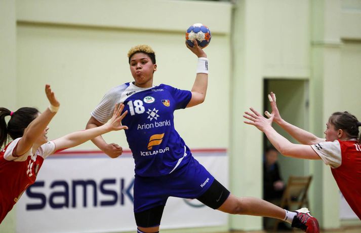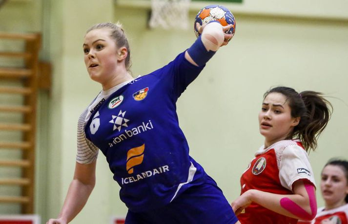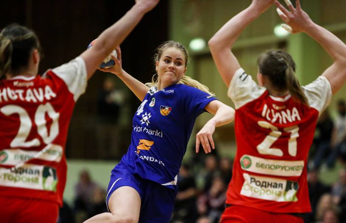 Ísland fer vel af stað í undankeppni HM U-20 ára í handbolta kvenna en stelpurnar unnu öruggan sigur á Hvíta-Rússlandi, 32-21, í íþróttahúsinu Strandgötu í kvöld.Ernir Eyjólfsson, ljósmyndari Fréttablaðsins og Vísis, var í Strandgötunni og tók meðfylgjandi myndir. Fyrri hálfleikur var jafn og staðan að honum loknum var 11-10, Íslandi í vil. Íslensku stelpurnar mættu svo ákveðnar til leiks í seinni hálfleik og hreinlega rúlluðu yfir þær hvít-rússnesku. Á endanum munaði 11 mörkum á liðunum en Ísland vann seinni hálfleikinn 21-11. Ragnheiður Júlíusdóttir var markahæst í íslenska liðinu í kvöld með níu mörk en Thea Imani Sturludóttir og Elena Birgisdóttir komu næstar með fimm mörk hvor. Ísland mætir Ungverjalandi í öðrum leik sínum klukkan 14:00 á morgun og lýkur svo leik gegn Austurríki klukkan 11:00 á sunnudaginn. Tvö efstu liðin í riðlinum komast í lokakeppnina í Rússlandi í sumar.Mörk Íslands: Ragnheiður Júlíusdóttir 9, Thea Imani Sturludóttir 5, Elena Elísabet Birgisdóttir 5, Hulda Dagsdóttir 4, Díana Dögg Magnúsdóttir 4, Birta Fönn Sveinsdóttir 2, Þórey Anna Ásgeirsdóttir 1, Þórhildur Braga Þórðardóttir 1, Sólveig Kristjánsdóttir 1.