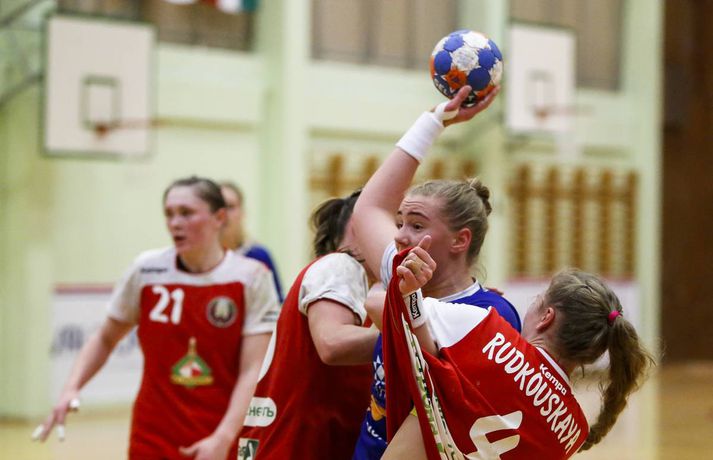 Stelpurnar stungu af í seinni hálfleik | Myndir Ingvi Þór Sæmundsson skrifar 18. mars 2016 19:34 Ragnheiður var markahæst í íslenska liðinu með níu mörk. vísir/ernir Ísland fer vel af stað í undankeppni HM U-20 ára í handbolta kvenna en stelpurnar unnu öruggan sigur á Hvíta-Rússlandi, 32-21, í íþróttahúsinu Strandgötu í kvöld.Ernir Eyjólfsson, ljósmyndari Fréttablaðsins og Vísis, var í Strandgötunni og tók meðfylgjandi myndir. Fyrri hálfleikur var jafn og staðan að honum loknum var 11-10, Íslandi í vil. Íslensku stelpurnar mættu svo ákveðnar til leiks í seinni hálfleik og hreinlega rúlluðu yfir þær hvít-rússnesku. Á endanum munaði 11 mörkum á liðunum en Ísland vann seinni hálfleikinn 21-11. Ragnheiður Júlíusdóttir var markahæst í íslenska liðinu í kvöld með níu mörk en Thea Imani Sturludóttir og Elena Birgisdóttir komu næstar með fimm mörk hvor. Ísland mætir Ungverjalandi í öðrum leik sínum klukkan 14:00 á morgun og lýkur svo leik gegn Austurríki klukkan 11:00 á sunnudaginn. Tvö efstu liðin í riðlinum komast í lokakeppnina í Rússlandi í sumar.Mörk Íslands: Ragnheiður Júlíusdóttir 9, Thea Imani Sturludóttir 5, Elena Elísabet Birgisdóttir 5, Hulda Dagsdóttir 4, Díana Dögg Magnúsdóttir 4, Birta Fönn Sveinsdóttir 2, Þórey Anna Ásgeirsdóttir 1, Þórhildur Braga Þórðardóttir 1, Sólveig Kristjánsdóttir 1. Handbolti Mest lesið Hafnaði 34 milljónum: „Vil ekki styðja kerfi sem býr til fíkn og eyðileggur líf“ Sport Segir starfið í húfi hjá Alfreð Handbolti Littler sjóðheitur en sá fjórði besti varð fyrir áfalli Sport Sjáðu fyrsta mark Wirtz, laglega sjálfsmarkið og Watkins stúta Chelsea Enski boltinn Liverpool-skotmarkið ekki á förum í janúar Enski boltinn Salah sakaður um dýfu: „Getum ekki keppt við Egypta og dómarana“ Fótbolti Haukur náði hundrað og hundrað fyrir EM Handbolti Arnar Þór ráðinn til FIFA: „Himinlifandi að hafa fengið þetta starf“ Fótbolti Aldrei spilað þarna en sagði strax já Enski boltinn Dagskráin í dag: Messan, meistarar Hauka, píla og NFL-veisla Sport Fleiri fréttir Segir starfið í húfi hjá Alfreð Haukur náði hundrað og hundrað fyrir EM Íslendingarnir í miklum ham fyrir EM Handarbrotinn og missir af úrslitaleiknum Reynir farinn að láta til sín taka í þýsku deildinni Elín Klara atkvæðamikil og sigursæl í jólaleiknum Birgir byrjaði rólega eftir jólafrí en fagnaði sigri Stoltur af stráknum en ætlar ekki að kaupa hann aftur Ekkert spilað í vetur en gæti mætt Íslandi í fyrsta leik á EM Arnar Daði rekinn frá Stjörnunni en áfram þjálfari kvennaliðsins Öll höllin æpti nafn Gísla í spennutrylli Sakaður um niðurlægingu: „Við viljum ekki hafa hann sem þjálfara“ Haukur getur náð hundrað plús hundrað fyrir EM-fríið Rúnar sótti sinn fyrsta sigur sem þjálfari Wetzlar Haukur með sjö mörk og Magdeburg rétt marði botnliðið Rúmlega áttræður Moustafa endurkjörinn forseti IHF með yfirburðum Slæm fjárhagsstaða HSÍ kemur ekki niður á EM Donni fagnaði EM vali með skotsýningu Sigvaldi Björn fjarri góðu gamni í sjaldséðu tapi Kolstad Eva Björk með stórleik í fyrsta sigri Stjörnunnar „Hann er ein stærsta ástæðan fyrir því“ KA-menn fengu góða jólagjöf Flautumark hjá FH og ÍR með þeim í Höllina KA í undanúrslit á kostnað bikarmeistaranna Stærsti leikur ársins í Eyjum fer fram í kvöld „Er því miður kominn í jólafrí“ „Þetta var mjög skrítinn leikur“ Haukakonur í fjórða sætið KA/Þór - Valur 23-30 | Ótrúlegur viðsnúningur gestanna Ómar óstöðvandi og Magdeburg í undanúrslit Sjá meira