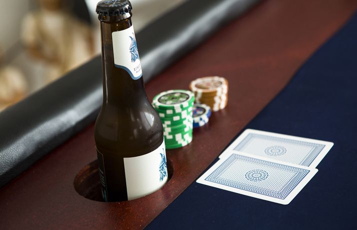 Félagarnir Tómas Nielsen og Þráinn Orri Jónsson tóku höndum saman á dögunum og smíðuðu sitt eigið pókerborð frá grunni. Þrátt fyrir að hafa ekki spilað mikinn póker í gegnum tíðina þá líta þeir á borðið sem hvata til þess að hitta vinina oftar og taka leik. Smíðin tóku aðeins fjóra daga en strákarnir útiloka ekki að taka að sér frekari handverk í framtíðinni. „Ástæðan fyrir því að við ákváðum að smíða borðið var einfaldlega sú að ég fékk þessa flugu í hausinn. Ég vissi að Tómas væri í smíðaáföngum uppi í Tækniskóla og hann var til í að stússast í þessu með mér. Við höfum aðeins verið að spila póker í gegnum tíðina en alls ekki oft. Vonandi verður þetta hvati fyrir því að spila meira enda erum við nokkrir í vinahópnum sem höfum áhuga á þessu og við borðið komast sex manns,“ segir Þráinn Orri en þetta er í fyrsta skiptið sem hann tekur í verkfærin.Glæsilegt pókerborð sem rúmar sex manns.Smíðin á borðinu tók aðeins fjóra daga en gekk þó ekki vandræðalaust fyrir sig. „Við hittumst eftir kvöldmat þessa fjóra daga og vorum að dúlla okkur í þessu. Við gerðum nokkur byrjendamistök en það er bara ósköp eðlilegt held ég. Við vorum aðallega að fylgja uppskriftum af Youtube en svo ákváðum við líka að bæta við okkar handbragði,“ segir Tómas en þeir ákváðu að gera innbyggða glasahaldara til þess að gera stemninguna yfir spilunum ennþá betri. Það var margt sem þurfti að ganga upp til þess að borðið yrði að veruleika. „Við vorum það heppnir að pabbi Tomma er með ógrynni af Festool-verkfærum sem við fengum að ganga í. Við fundum allt til í hinum ýmsu verslunum og notuðumst mikið við Google,“ segir Þráinn. Strákarnir hafa nú þegar tekið fyrsta leikinn á borðinu en hann gekk ekki eins og þeir höfðu vonað. „Við töpuðum báðir þannig að ætli við þurfum ekki að æfa okkur betur áður en við bjóðum strákunum að spila næst,“ segja þeir en bæta við að það mikilvægasta sé að hafa með sér spilastokk, einn kaldan og góða skapið. Fréttin birtist fyrst í Fréttablaðinu 9.apríl.vísir/ernir