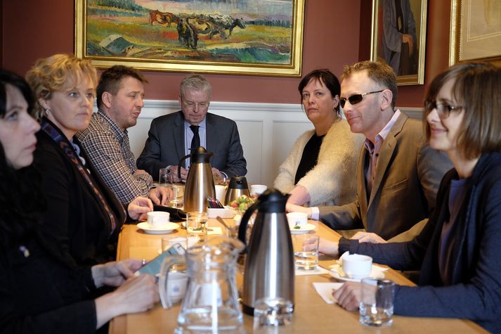 Vantrauststillaga gæti verið úrelt á morgun Bjarki Ármannsson skrifar 6. apríl 2016 14:54 Þingflokksformenn funda með forseta þingsins í hádeginu. vísir/stefán Vantrauststillaga stjórnarandstöðunnar á ríkisstjórn Sigmundar Davíðs Gunnlaugssonar verður ekki tekin til afgreiðslu á þingfundi í fyrramálið. Þingfundur hefst klukkan 10.30 og hefur Einar K. Guðfinnsson, forseti Alþingis, ákveðið að aðeins eitt mál verði á dagskrá; óundirbúinn fyrirspurnartími þar sem ráðherrarnir Bjarni Benediktsson og Sigurður Ingi Jóhannsson sitja meðal annarra fyrir svörum. „Niðurstaðan er sú að þessi fundartími, sem jafnan er hálftími, verður tvöfalt lengri að þessu sinni vegna þeirra aðstæðna sem uppi eru í samfélaginu og á þinginu,“ segir Einar. „Síðan verðum við auðvitað að sjá hvernig framvindan verður í dag.“ Einar fundaði með fulltrúum þingflokkanna í hádeginu í dag og fór stjórnarandstaðan þar fram á að vantrauststillaga á ríkisstjórn Sigmundar Davíðs yrði tekin til afgreiðslu í fyrramálið. „Það var mín niðurstaða að ekki væri skynsamlegt að leggja tillöguna um vantraust á dagskrá á morgun í ljósi þess að það eru hér viðræður í gangi um myndun nýs ráðuneytis undir stjórn nýs forsætisráðherra og þess vegna taldi ég betra að sjá hvað út úr því kæmi,“ segir Einar. „Enda gæti slík tillaga þess vegna orðið úrelt á morgun, leiði þessar viðræður í dag til þess að mynduð verði ríkisstjórn undir nýju forsæti.“Sérðu þá ekki fyrir þér að vantrauststillaga geti verið tekin fyrir fyrr en niðurstaða úr viðræðunum liggur fyrir?„Ég vil að minnsta kosti, af þessum ástæðum, sjá myndina skýrar fyrir mér. En auðvitað kemur að því að vantrauststillagan verður tekin fyrir, eða ný vantrauststillaga ef efni standa til þess.“ Einar segist aðspurður ekki treysta sér til þess að segja til um hvernig dagskránni á þinginu verður háttað til lengri tíma. Panama-skjölin Tengdar fréttir Bjarni og Sigurður Ingi hafa þangað til í fyrramálið að skýra stöðu mála Forseti Alþingis féllst ekki á tillögu stjórnarandstöðunnar að kalla saman þing í dag. Alþingi kemur saman 10:30 í fyrramálið. 6. apríl 2016 12:55 Stjórnarandstaðan krefst þess að þingfundur fari fram Búið er að taka þingfund sem fara átti fram klukkan 15 í dag af dagskrá þingsins. Einar K. Guðfinnsson, forseti Alþingis, segir ekki ljóst hvenær þing kemur saman næst. 6. apríl 2016 11:01 Mest lesið Blússandi hagvöxtur í Bandaríkjunum Erlent Tveir lögreglumenn sprengdir í loft upp Erlent Bæta við allt að 200 íbúðum og mathöll í Spöngina Innlent Minni rekstrarkostnaður fyrir eigendur bensínháka Innlent Maður í umferðarslysi reyndist fíkniefnasali Innlent Hvar er opið á aðfangadag? Innlent Foreldrar skipverjans fá áheyrn í Hæstarétti Innlent Hafnar „jólakveðju“ ríkisins Innlent Innflytjendamálin almenningi efst í huga Innlent Innanlandsflugi aflýst Innlent Fleiri fréttir Arion banki varar við svikaherferð Innanlandsflugi aflýst Foreldrar skipverjans fá áheyrn í Hæstarétti Hvar er opið á aðfangadag? Innflytjendamálin almenningi efst í huga Bæta við allt að 200 íbúðum og mathöll í Spöngina Maður í umferðarslysi reyndist fíkniefnasali Minni rekstrarkostnaður fyrir eigendur bensínháka Hafnar „jólakveðju“ ríkisins Hefði þurft hjólbörur undir öll verðlaunin sín Ýmis ráð til taugatrekktra á Þorláksmessu Ekkert því til fyrirstöðu að Ásthildur Lóa verði aftur ráðherra Óvissa um ráðherraskipan og skata fyrir byrjendur Maðurinn fundinn Sigríður Halldórsdóttir nýr ritstjóri Kastljóss Íslendingur í gæsluvarðhaldi í Kólumbíu vegna gruns um kynferðisbrot Forsætisráðuneytið eyddi meiru í almannatengla í fyrra en í ár Inkalla snuð vegna of mikils magns BPA-plastefna Svanhildur Sif heiðruð Falskar netverslanir: Auglýsir rýmingarsölu nokkrum dögum eftir opnun Meðallaun upplýsingafulltrúa hækkuðu hlutfallslega mest Skötuilmurinn leggst yfir landið og Samkeppniseftirlitið ætlar að fylgjast vel með bensínverðinu Áfram auknar líkur á eldgosi Sektaður um hundruð þúsunda fyrir að sparka í hund Stýra fjármálum og mannauðsmálum Þjóðleikhússins Sló mann í höfuðið með glerflösku á ísfirskum skemmtistað Ekið á konu á Langholtsvegi Ríkissjóður greiðir fyrir flutning hinna látnu til Íslands Undrandi á ráðningu ráðgjafa „Krítískur massi af snarbrjáluðu fólki nær yfirhöndinni“ Sjá meira