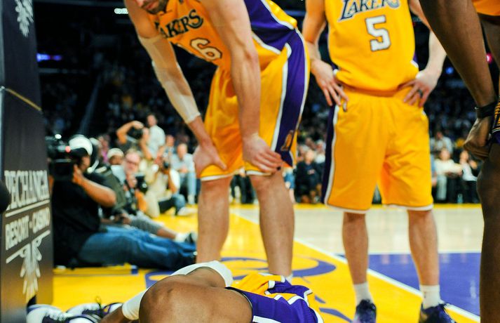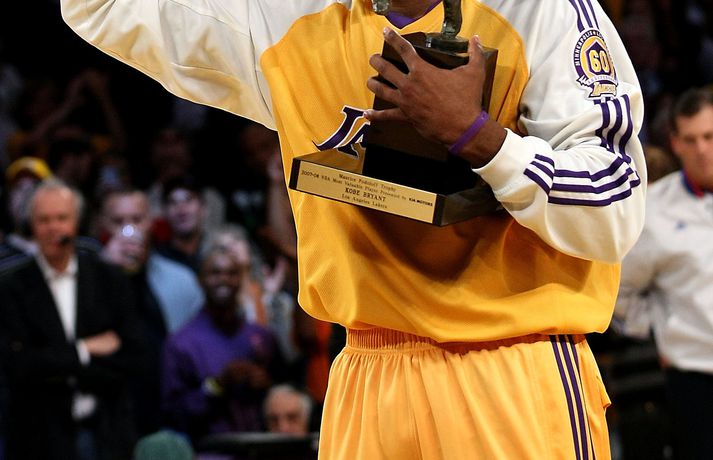Kveðja, Kobe Óskar Ófeigur Jónsson skrifar 14. apríl 2016 06:30 Kobe kvaddi í nótt. vísir/getty Eftir tuttugu ár, 1.346 leiki, fimm titla og yfir 33 þúsund stig, þá lauk NBA-ferli bandaríska körfuboltamannsins Kobe Bryant í Los Angeles í nótt. Síðasti leikurinn var á móti Utah Jazz og skipti lið hans engu máli en þannig hefur þetta nú verið í vetur. Leikir Lakers hafa snúist um kveðjuferð Kobe um Bandaríkin en sigrarnir og aðallega tapleikirnir hafa verið verið hálfgert aukaatriði. Átrúnaðargoð Kobe Bryant var Michael Jordan og þeir eru alltaf bornir mikið saman enda að mörgu leiti mjög líkir leikmenn. Það er erfiðara að finna meiri keppnismenn og báðir áttu stórkostlega ferla í NBA. Kobe náði að skora meira en Jordan á ferlinum en náði ekki að jafna titlafjöldann sem mun eflaust plaga hann um ókomna tíð. Þrettándi apríl 2016 verður nú skráður í sögubækur Los Angeles Lakers enda hefur enginn leikmaður spilað fleiri leiki eða skorað fleiri stig fyrir félagið en Kobe Bryant, hvort sem er í deild eða úrslitakeppni. Hann hefur komið sér vel fyrir um alla metabók Los Angeles Lakers – og það er ekki eins og einhverjir meðalmenn hafi verið að spila með þessu sigursæla NBA-liði í gegnum tíðina. Það eru samt fleiri dagar sem standa upp úr á þessum frábæra ferli og á þessari síðu förum við yfir nokkra þeirra. Það var af nógu að taka og því komust ekki nærri því allar stærstu stundir Kobe fyrir. NBA Mest lesið Líður alltaf yfir hana þegar hún kemur í mark Sport „Hefði séð eftir því alla ævi“ Íslenski boltinn Scholes hættir og setur einhverfan son sinn í fyrsta sætið Enski boltinn „Mjög sáttur með samninginn“ Íslenski boltinn „Hann ætti bara að skrifa afsökunarbiblíuna“ Körfubolti Þýskaland - Ísland | Máta sig við sveina Alfreðs Handbolti Rekinn fyrir ummæli sín um krabbameinssjúka handboltagoðsögn Handbolti Rúmar tvær milljónir í boði ef þú finnur hundinn hans Aarons Ramsey Fótbolti Hefur spilað 16 mínútur og fengið tvö rauð spjöld Enski boltinn Carrick í einkaviðtali: Sigurinn á Anfield stór stund fyrir Man. Utd Enski boltinn Fleiri fréttir Álftanes - Njarðvík | Heimamenn tapað tveimur í röð Keflavík - Þór Þ. | Stigalausir gestir í Blue-höllinni Valur - Grindavík | Eina liðið sem unnið hefur alla KR - ÍA | Langþráð kría á flugi Íslandsmeistararnir frá því fyrir sextíu árum heiðursgestir í kvöld „Hann ætti bara að skrifa afsökunarbiblíuna“ Uppgjörið: Njarðvík - Grindavík 85-84| Njarðvík fyrstar til að leggja Grindavík af velli Ótrúleg dramatík í Garðabæ og á Sauðárkróki Landsliðsmennirnir öflugir í Evrópu Jordan gagnrýnir álagsstjórnun í NBA: Þú hefur skyldu til að láta sjá þig Skiptiborð hjá stelpunum í kvöld Var með skattinn á hælunum þegar hann fór í veðmálabraskið Bíll Shaquille O'Neal enn ófundinn Martin öflugur í góðum sigri Öllum leikjum Bónus-deildar kvenna í kvöld frestað Stólarnir ekki í vandræðum á Egilsstöðum Enginn Lakers-maður hafði náð þessu í meira en 52 ár Veðmál rædd í Körfuboltakvöldi: „Bara ævintýralega heimskulegt“ Kvöddu húsið og Nablinn klifraði í kveðjuskyni Martin naut sín í fræknum sigri á meisturum Bayern Tryggvi lykilmaður í sigri Bilbao Elvar skoraði tólf í naumu tapi Tilþrifin: Varin skot og ótrúlegar körfur Valsmanna Þriðja tapið í röð hjá Jóni og félögum Fáránlegt eða klókt hjá Kristófer? „Ef það má þá gerir fólk það“ Brassi tekur við af Billups „Það er æðislegt að kveðja húsið svona“ Uppgjörið: ÍA - Álftanes 76-74 | ÍA kvaddi Vesturgötuna með stæl Uppgjörið: Stjarnan - ÍR 91-93 | ÍR skellti meisturunum „Ekki æskilegt og ekki það sem körfuboltinn vill standa fyrir“ Sjá meira