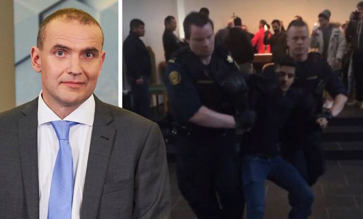 Guðni Th: Þyngra en tárum taki að hælisleitendur leiti skjóls í kirkju og lögreglan dragi þá þaðan út Sunna Kristín Hilmarsdóttir skrifar 29. júní 2016 15:53 Guðni vonar að atvik eins og það sem varð í Laugarneskirkju aðfaranótt þriðjudags endurtaki sig ekki. vísir Mikið hefur fjallað um tvo unga íraska hælisleitendur sem vísað var frá Íslandi aðfaranótt þriðjudags og til Noregs á grundvelli Dyflinnarreglugerðarinnar en lögregla sótti þá til altaris í Laugarneskirkju þar sem boðað hafði verið til nokkurs konar samverustundar til stuðnings þeim. Mennirnir tveir, Alí og Majed, voru sóttir af lögreglu klukkan fimm um morguninn í kirkjun en þá höfðu um þrjátíu manns beðið með þeim í kirkjunni í um klukkustund, hlýtt á tónlist og rætt saman. Myndir og myndbönd sem birst hafa í fjölmiðlum af því þegar mennirnir eru dregnir út úr kirkjunni eru sláandi enda hafa þær vakið mikla athygli, meðal annars í erlendum fjölmiðlum, eins og sjá má í myndbandinu hér að neðan.Er þetta ekki í fyrsta sinn sem mál hælisleitenda hér á landi komast í heimsfréttirnar en Al Jazeera fjallaði til dæmis um mál nígeríska hælisleitandans Eze Okafor fyrr í mánuðinum. Blaðamanni Vísis lék forvitni á að vita hvort að nýkjörinn forseti Guðni Th. Jóhannesson vildi tjá sig um mál þeirra Alí og Majed, ekki kannski síst í ljósi þess að honum var tíðrætt um mannúðina í kosningabaráttu sinni til forseta. Guðni segir að honum finnist ekki við hæfi að nýkjörinn forseti tjái sig beinlínis um einstök atvik. „En auðvitað finnst manni þyngra en tárum taki að mál þróist á þann veg að hælisleitendur finni sér skjól í kirkju og laganna verðir dragi þá síðan þaðan út. Vonandi kemur þetta ekki aftur fyrir.“ Tengdar fréttir Hælisleitendur dregnir út úr Laugarneskirkju í nótt: „Fólk var mjög slegið og miður sín“ Sóknarprestur segist hafa viljað reyna á hugmyndina um kirkjugrið í máli tveggja ungra íraska manna. 28. júní 2016 11:07 Mest lesið Ríkissjóður greiðir fyrir flutning hinna látnu til Íslands Innlent „Krítískur massi af snarbrjáluðu fólki nær yfirhöndinni“ Innlent Ekið á konu á Langholtsvegi Innlent Trump nefnir nýja kynslóð orrustuskipa í höfuðið á sjálfum sér Erlent Undrandi á ráðningu ráðgjafa Innlent Hyggst kæra dyraverði Auto til lögreglu Innlent Fjölgun eldri kvenna í Kvennaathvarfi: „Þessar konur bíða ekki“ Innlent Skapari Call of Duty lést í bílslysi Erlent Ný könnun Maskínu: „Væri alveg ný staða í íslenskum stjórnmálum“ Innlent Hiti geti mest náð átján stigum Veður Fleiri fréttir Skötuilmurinn leggst yfir landið og Samkeppniseftirlitið ætlar að fylgjast vel með bensínverðinu Áfram auknar líkur á eldgosi Sektaður um hundruð þúsunda fyrir að sparka í hund Stýra fjármálum og mannauðsmálum Þjóðleikhússins Sló mann í höfuðið með glerflösku á ísfirskum skemmtistað Ekið á konu á Langholtsvegi Ríkissjóður greiðir fyrir flutning hinna látnu til Íslands Undrandi á ráðningu ráðgjafa „Krítískur massi af snarbrjáluðu fólki nær yfirhöndinni“ Fjölgun eldri kvenna í Kvennaathvarfi: „Þessar konur bíða ekki“ Ráðist á pilt á heimleið Stytting framhjá Blönduósi ekki á samgönguáætlun Vestmannaeyingar fá að eiga Vestmannaeyjar Hyggst kæra dyraverði Auto til lögreglu „Ótrúlega sorglegt að pabbi sé búinn að vera svona lengi í þessari stöðu“ Höfðu samband við dönsku herstjórnina á Grænlandi Ný könnun Maskínu: „Væri alveg ný staða í íslenskum stjórnmálum“ Glæný Maskínukönnun og jólaóveður Ársæll hringdi beint í utanríkisráðherra eftir fundinn Ósannað að fimmtán ára stúlka hafi stungið sextán ára pilt tvisvar Sameina Farice, Öryggisfjarskipti og hluta Neyðarlínunnar Gaf fingurinn á Miklubraut Birtir drög að lögum um lagareldi: Hyggst leggja niður Fiskeldissjóð Hundrað og fjörutíu milljarða bótakrafa á Samherja sé súrrealísk Skemmdir í kirkjugörðum vegna aksturs utan vegar Ólýsanlegur harmur fyrir fjölskylduna og söfnun hleypt af stokkunum „Ég hef aldrei upplifað annan eins harm“ Vill leiða lista Sjálfstæðismanna í Reykjanesbæ „Þetta hefur verið þungur tími“ Naut aðstoðar samskiptasérfræðinga vegna veiðigjaldamálsins Sjá meira