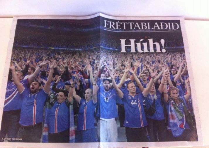 Kápan er í raun forsíða og baksíða blaðsins en hana prýðir mynd af stuðningsmönnum íslenska landsliðsins eftir leikinn gegn Frökkum á Stade de France. Fyrirsögnin er vísun í víkingaklappið sem er orðið heimsþekkt: „Húh!“