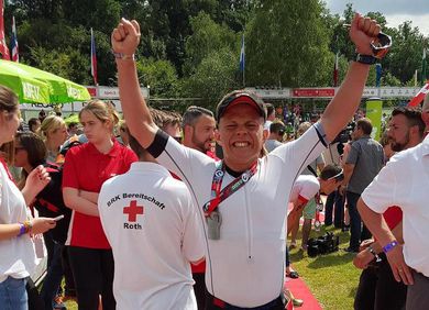 Geir Ómarsson er Íslandsmethafi í járnmanni eftir frábæra frammistöðu í Roth í Þýskalandi um helgina. Geir bætti tveggja ára gamalt Íslandsmet Stefáns Guðmundssonar frá því í Kaupmannahöfn 2014 um sjö mínútur og 23 sekúndur. Geir kom í mark á tímanum 8 klukkustundum, 49 mínútum og sex sekúndum. Í járnkarli er synda keppendur 3,8 kílómetra, hjóla svo 180 kílómetra og ljúka svo keppni á maraþonhlaupi, 42,2 kílómetra. Eðli málsins samkvæmt er um mikla þrekraun að ræða og jafnan þannig að aðeins hluti keppenda lýkur keppni enda margt sem getur komið upp á. Gísli Ásgeirsson fjallar um afrek Geirs á vefsíðu sinni Málbeininu en hann er sjálfur ofurhlaupari og formaður þríþrautarnefndar ÍSÍ svo fátt eitt sé nefnt. Járnmaðurinn í Roth er næstfrægasta keppni hvers árs á eftir heimsmeistraramótið sem fer árlega fram á Havaí. Geir fagnar árangri sínum í Þýskalandi um helgina.Mynd/Aðsend Farinn í smáfrí Geir hafnaði sem fyrr segir í 22. sæti en fjórtán efstu keppendurnir eru atvinnumenn í faginu. Sigurvegair var Jan Frodeno frá Þýskalandi sem lauk keppni á sjö klukkustundum, 35 mínútum og 39 sekúndum. Hann þakkar vinum og vandamönnum kærlega fyrir ómetanlegan stuðning bæði á keppnisdaginn og í aðdraganda keppninnar á Facebook. „Setti markið hátt en var sjálfur oft efins um að þetta myndi hafast. Sérstakar þakkir fá stelpurnar mínar þrjár Hrefna, Arna og Freyja sem eru búnar að styðja við bakið á mér í gegnum allt ferlið,“ segir Geir í Fésbókarfærslu. Hann sé farinn í smáfrí en muni segja keppnissöguna síðar. Að neðan má sjá frá keppni í sundi í Roth um helgina.