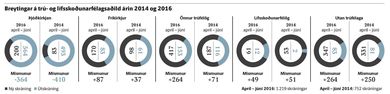 Alls gengu 364 fleiri úr þjóðkirkjunni en í hana á síðustu þremur mánuðum. Aftur á móti gengu 87 fleiri í fríkirkjurnar en úr þeim og 264 fleiri í önnur trúfélög en úr þeim á tímabilinu. Þetta kemur fram í yfirliti Þjóðskrár Íslands sem tekur ársfjórðungslega saman tölur um breytingar á skráningum einstaklinga í þjóðskrá úr einu trú- og/eða lífsskoðunarfélagi í annað. Á síðustu árum hefur mynstrið verið það sama. Fleiri hafa sagt sig úr þjóðkirkjunni en í hana og fleiri hafa skráð sig í önnur trú- og lífsskoðunarfélög en úr þeim. Á þessu sama tímabili árið 2013 gengu 325 fleiri úr þjóðkirkjunni en í hana. Árið 2014 var mismunurinn 410 og árið 2015 var hann 440. Því má segja að fækkun í þjóðkirkjunni sé í rénun ef litið er til þessara tímabila. Þess má geta að ef foreldrar nýfædds barns eru í sama trú- eða lífsskoðunarfélagi skráist barnið sjálfkrafa í það trúfélag og er sú skráning ekki inni í þessum tölum þar sem hún telst ekki til breytinga. Ef foreldrar eru aftur á móti ekki í sama félagi telst skráning barnsins til breytinga þegar það er skráð í Þjóðskrá. Erlendir ríkisborgarar sem skráðir eru í Þjóðskrá teljast til nýskráninga.
