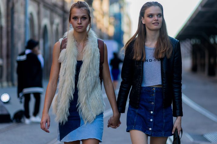 Það muna allir eftir því þegar gallapilsið réði öllu fyrir rúmlega tíu árum síðan. Nú eru þau mætt aftur og það er greinilega ekkert á förum í bráð. Þröng gallapils sem ná hátt upp í mitti eru málið og hér fyrir neðan getur þú fengið innblástur um hvernig hægt er að stílisera þau á skemmtilegan hátt. Gömlu góðu vintage Levi's pilsin eru alltaf vinsæl en fleiri mismunandi týpur ganga líka klárlega upp. Gallapils með saumuðum bótum eða hnöppum alla leið upp með miðjunni eru einnig vinsæl í sumar. Það er um að gera að stökkva á þetta trend en það er einstaklega skemmtilegt fyrir sumarið. Bella Hadid klæddist flottu vintage gallapilsi í seinustu viku. Fullkomið sumar dress.hægt er að stílisera gallapilsin á marga mismunandi vegu.Alessandra Ambrosio var í gallaskyrtu við gallapilsið sitt á dögunum en það kemur vel út. Fullkomið á íslenskum sólardegi.Chloe Moretz er hér í gráu gallapilsi með ísaumuðum blómum. Sumarlegt og skemmtilegt.Þessar vinkonur eru í tveimur mismunandi en mjög flottur pilsum.Það er vel leyfilegt að vera í gallajakka við gallapilsið.Tvö af aðal trendum sumarsins. Gallapils og bomber-jakki. Getur ekki klikkað!