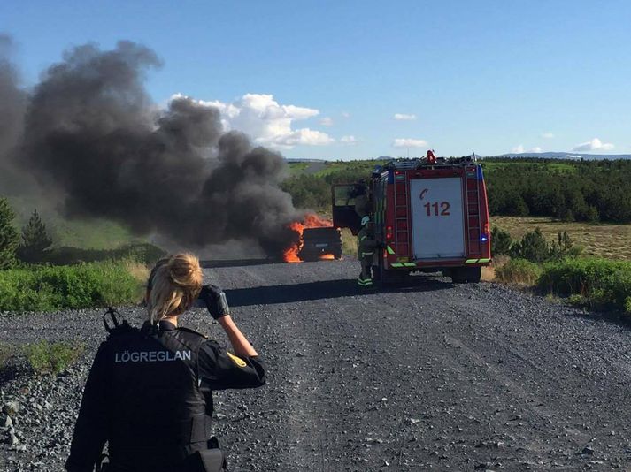 Alelda bíll á Langavatnsvegi Tryggvi Páll Tryggvason skrifar 2. ágúst 2016 19:04 Bílinn er gjörónýtur. Vísir/Óttarr Eldur kom upp í bíl á Langavatnsvegi fyrir ofan Grafarholt fyrr í kvöld. Slökkvilið höfuðborgarsvæðisins var kallað út en reyndist bíllinn vera alelda þegar slökkviliðið kom á svæðið. Greiðlega gekk að slökkva eldinn í bílnum sem er jeppi. Samkvæmt upplýsingum frá slökkviliðinu á höfuðborgarsvæðinu var enginn á vettvangi þegar slökkvilið kom á svæðið og engin meiðsl urðu á fólki. Eldsupptök eru ókunn.Bílinn var alelda þegar slökkviliðið kom á svæðið.Mynd/Óttarr Mest lesið Vél Trump snúið við en ræðan enn á dagskrá Erlent Sex sagt upp í menntamálaráðuneytinu Innlent Vinnuslys þar sem maður „missti höndina inn í vals“ Innlent Hvað býr bakvið sólgleraugu Macron? Erlent Óvæntur blaðamannafundur: Las „afrekabókina“ og sýndi myndir af glæpamönnum Erlent Hættur í Viðreisn og sækist eftir formennsku í SI Innlent Baráttan um Framsókn muni snúast um sögulega stöðu Innlent Neituðu að greiða starfsfólki á leið í eigin rekstur uppsagnarfrest Innlent Davos-vaktin: Beðið eftir ræðu Trumps Erlent Morðingi Abe dæmdur í lífstíðarfangelsi Erlent Fleiri fréttir Hátt í tíu þúsund manns án atvinnu í desember Sex sagt upp í menntamálaráðuneytinu Hættur í Viðreisn og sækist eftir formennsku í SI Vinnuslys þar sem maður „missti höndina inn í vals“ Baráttan um Framsókn muni snúast um sögulega stöðu Ráðherra segir ríkisvaldið gefa í með framkvæmdir Sverrir Bergmann hættir í bæjarstjórn Norðfirðingar gleðjast að sjá loðnuna birtast Annasamasti dagur á bráðamóttöku í lækna minnum Neituðu að greiða starfsfólki á leið í eigin rekstur uppsagnarfrest Gríðarleg fjölgun hótana og dæmi um að setið sé fyrir lögreglumönnum Kvaðst hafa drepið fjölskylduna og ætlað að stinga sig í hjartað Ofbeldi gegn lögreglumönnum magnast og baráttan hafin um Framsókn Nemi í jarðfræði hlaut Nýsköpunarverðlaunin „Kanntu ekki mannasiði mannfjandi?“ Brynjar skýtur föstum skotum á Flokk fólksins „Fyrsta ár ríkisstjórnarinnar hefur mistekist“ Magnús Eiríksson borinn til grafar Heitt í hamsi vegna Grænlands Hafi nauðgað sex ára stúlku og eiginkonu sinni og birt af því myndir Dýr framtíðarlausn að færa þjóðveginn vegna grjóthruns Borgarstjórn biður vöggustofubörnin afsökunar Eldgos á næstu vikum enn líklegasta niðurstaðan Sjö tilkynningar um heimilisofbeldi að jafnaði á dag „Ekki gott að fólk sé endalaust að sulla svona í víni“ Styrkleiki að formaður Framsóknar eigi sæti á þingi Þrjátíu á slysadeild vegna hálku og sjúkrabílar á leiðinni með fleiri Mannréttindaráðið ræðir Íran að frumkvæði Íslands Fimm starfslokasamningar kostað Hafró 35 milljónir Ögranir Trumps halda áfram og tugir leituðu á bráðamóttöku í hálkunni Sjá meira