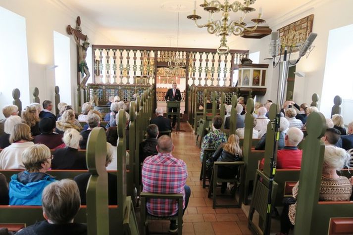Forsetinn á Hólahátíð: Hyggst ekki leggja fólki línur í trúmálum Atli Ísleifsson skrifar 15. ágúst 2016 08:17 Guðni Th. Jóhannesson forseti í Auðunarstofu á Hólum ásamt Agnesi M. Sigurðardóttur, biskupi Íslands, og vígslubiskupi Hólastiftis, Solveigu Láru Guðmundsdóttur. Mynd/Forseti.is Guðni Th. Jóhannesson, forseti Íslands, segir að í embætti sínu sem forseta Íslands muni hann ekki að leggja fólki línur í trúmálum. Guðni ræddi stöðu sína utan trúfélaga á Hólahátíð um helgina og sagðist standa þar í góðri sátt við guð og menn. Á Hólahátíð var þess minnst að 350 ár séu liðin frá því Passíusálmar Hallgríms Péturssonar komu fyrst á prent. Forsetinn fjallaði í ávarpi sínu um nýjan skilning sagnfræðinga á kristnitöku og siðaskiptum á Íslandi, auk þess sem hann ræddi kveðskap Hallgríms og áréttaði gildi mannúðar og kærleika í samfélaginu.Fækkun í þjóðkirkjunni Guðni sagði í ræðu sinni að í nýlegri skoðanakönnun kvaðst rétt rúmur helmingur aðspurðra á Íslandi telja sig trúaðan. „Sífellt fækkar fólki í þjóðkirkjunni og nú er svo komið, í fyrsta sinn í sögunni, að forseti Íslands tilheyrir henni ekki.“ Sagði hann að í aðdraganda forsetakjörsins hafi staða sín utan þjóðkirkjunnar komið nokkuð til tals og að þess misskilnings hafi gætt að forseti Íslands væri sjálfkrafa sérstakur verndari hennar. „Það er ofmælt þótt í 62. grein stjórnarskrárinnar segi að hin evangelíska lúterska kirkja skuli vera þjóðkirkja á Íslandi, og skuli ríkisvaldið að því leyti styðja hana og vernda. Í næstu grein er trúfrelsi aftur á móti tryggt, að allir megi iðka trú sína í samræmi við eigin sannfæringu og litlu síðar segir að allir séu jafnir fyrir lögum án tillits til trúarbragða,“ sagði Guðni.Guðni flytur ræðu sína á Hólum í Hjaltadal.Mynd/Forseti.isTrúmál blessunarlega ekki að bitbeini Forsetinn sagði að blessunarlega hafi trúmál ekki orðið að bitbeini að heitið geti í forsetakosningunum. „Agnes M. Sigurðardóttir, biskup Íslands, staðfesti jafnframt að þeim loknum að staða mín utan trúfélaga ætti ekki að valda þjóðkirkjunni vandræðum. Víðsýni og umburðarlyndi hljóta að vera farsæl leiðarljós.“ Segist hann í embætti forseta ekki ætla að leggja fólki línur í trúmálum. „Á mínum fræðimannsferli hef ég talið að efahyggja sé af hinu góða í heimi sagnfræðinnar, að hin eina rétta og endanlega útgáfa sögunnar verði aldrei samin. Ég er samt þeirrar skoðunar að við getum komist að óumdeildum staðreyndum um liðna tíð, að frásagnir síðari tíma séu ekki bara sjónarhorn hvers og eins, háðar efnum og aðstæðum. Ég vil með öðrum orðum hafa fast land undir fótum, trausta undirstöðu, klett ef svo má að orði komast. Kannski hefur sú fræðilega sannfæring ráðist af sýn minni á líf, tilveru og trú. Þar vil ég líka eiga haldreipi. Ég trúi á almætti, skapara og endurfundi við þá sem hafa kvatt þetta jarðríki. Þessa lífssýn má eflaust rekja til kaþólsks uppeldis en líka til seinna skeiðs á ævi minni sem fól í sér efa, reiði og uppgjöf en síðan ígrundun og niðurstöðu,“ sagði Guðni.Guðni Th. Jóhannesson heilsar upp á hátíðargesti.Mynd/Forseti.isVill leggja góðum málum lið Guðni segist vilja leggja góðum málum lið á þeim tíma sem hann gegnir embætti forseta, með þjóðkirkjunni og hennar þjónum ef svo ber undir. „Kennivald kirkjunar fer þverrandi, refsivöndurinn er löngu horfinn. Þjónar hennar munu ekki halda uppi aga, röð og reglu í samfélaginu með sama hætti og þeir gerðu eða reyndu að gera fyrr á öldum. En annað breytist ekki. Þannig munu sálmar Hallgríms Péturssonar, sem við minnumst nú, örugglega lifa áfram með okkur.“Sagði sig í kyrrþey úr kaþólsku kirkjunni Varðandi afstöðu sína í trúmálum rifjaði Guðni upp orð sín í aðdraganda forsetakjörsins um að á Íslandi ríki trúfrelsi og að landslög væru öllum trúarbrögðum æðri. „Þeir sem ekki sætta sig við það eiga ekkert erindi í okkar samfélagi. Sjálfur var ég skírður til kaþólskrar trúar, fermdur í kaþólskum sið en missti barnatrúna við andlát föður míns þegar ég var á unglingsárum. Smám saman öðlaðist ég á ný trú á almættið og hið góða í heiminum. Slæleg viðbrögð kaþólsku kirkjunnar við skýrum ásökunum um glæpi innan hennar urðu til þess að ég sagði mig í kyrrþey úr henni. Nú stend ég því utan trúfélaga í góðri sátt við guð og menn. Börn mín eru skírð og tilheyra kristinni kirkju. Mín kristnu mannúðargildi má draga saman í upphafsorðum Mannréttindasáttmála Sameinuðu þjóðanna: „Allir eru bornir frjálsir og jafnir öðrum að virðingu og réttindum. Allir eru gæddir skynsemi og samvisku og ber að breyta bróðurlega hverjum við annan.“,“ sagði forsetinn á Hólahátíð. Mest lesið Magnús Eiríksson borinn til grafar Innlent „Kanntu ekki mannasiði mannfjandi?“ Innlent Trump fer mikinn á Truth Social og virðist ætla sér Kanada Erlent Hafi nauðgað sex ára stúlku og eiginkonu sinni og birt af því myndir Innlent „Ekki gott að fólk sé endalaust að sulla svona í víni“ Innlent Heitt í hamsi vegna Grænlands Innlent Fyrsta árinu af fjórum lokið Erlent Rauð norðurljós vegna kórónugoss Innlent Hrókering hjá Helga og Miðflokknum vex Áss megin Innlent Skutu flugskeytum fyrir tólf milljarða á einni nóttu Erlent Fleiri fréttir Kvaðst hafa drepið fjölskylduna og ætlað að stinga sig í hjartað Ofbeldi gegn lögreglumönnum magnast og baráttan hafin um Framsókn Nemi í jarðfræði hlaut Nýsköpunarverðlaunin Niceair aflýsir jómfrúarfluginu „Kanntu ekki mannasiði mannfjandi?“ Brynjar skýtur