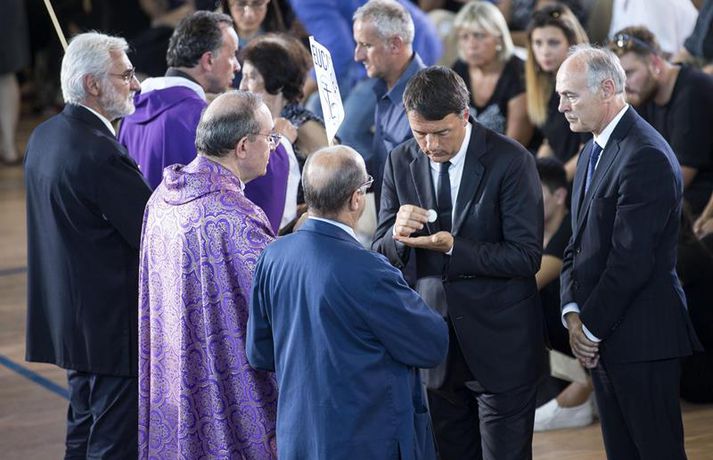 Tengdar fréttir Neyðarástandi lýst yfir á Ítalíu Vonir um að fólk finnist á lífi í rústunum fara hratt dvínandi. 26. ágúst 2016 07:54 Spurningar vakna um byggingar á Ítalíu Þrátt fyrir fjölda mannskæðra jarðskjálfta á síðustu áratugum er áætlað að 70 prósent húsa séu ekki byggð með jarðskjálfta í huga. 26. ágúst 2016 10:37 Minnst 247 látnir á Ítalíu Fjölmargra er saknað og búist er við að tala látinna muni hækka meira. 25. ágúst 2016 07:30 Eftirskjálftar viðhalda ótta Neyðarástandi hefur verið lýst yfir á þeim svæðum á Mið-Ítalíu sem verst urðu úti í jarðskjálftanum á miðvikudag. Ítalíustjórn ætlar að verja 50 milljónum evra til enduruppbyggingar á svæðinu. 27. ágúst 2016 07:00 Mest lesið Íslendingur handtekinn á EM Innlent Rauð norðurljós vegna kórónugoss Innlent Samþykktu aldrei að Sanna fengi oddvitasætið Innlent Hljóp á sig Innlent Minnir á hvernig Hitler komst til valda Innlent „Þarf að klára að setja slaufu á pakkann“ Innlent „Dapurlegt að gera ákvarðanirnar tortryggilegar“ Innlent Þjóðverjar yfirgefa Grænland Erlent Hafi brotist inn til föður barnsmóður sinnar og reynt að myrða hann Innlent Hættur að hugsa bara um frið fyrst hann fékk ekki Nóbelinn Erlent Fleiri fréttir Vitleysan „í þessum óþekka strák í Hvíta húsinu“ leiði vonandi til sjálfstæðis Skoða bann við nektarforritum eftir X-hneykslið Býður Pútín sæti í „friðarráði“ fyrir Gasaströndina Hættur að hugsa bara um frið fyrst hann fékk ekki Nóbelinn Tala látinna hækkar í lestarslysinu á Spáni Danir máttlausir gagnvart rússnesku ógninni í 20 ár Rúmlega tuttugu látnir eftir árekstur tveggja hraðlesta Boðar leiðtogaráðið á aukafund vegna hótana Trumps Brýndi fyrir Trump að tollun hans væri „röng“ Þjóðverjar yfirgefa Grænland Ræddi við Trump: „Hlakka til að sjá hann“ Hervæddur hvunndagurinn í Nuuk Átta látnir á einum degi vegna snjóflóða Miklar sviptingar í Sýrlandi Gríðarleg vonbrigði og mikið áhyggjuefni Tollahótanir Trump gætu hrundið af stað uggvænlegri atburðarás Nóbelsnefndin afdráttarlaus varðandi framsal verðlaunapeninga Vilja beita „ofurvopni“ ESB gegn Bandaríkjunum Hundruð hermanna í viðbragðsstöðu vegna Minnesota Myndir: Þúsundir mótmæltu á Grænlandi Segir þúsundir hafa dáið á grimmilegan máta Setur „stærsta samning í sögunni“ í uppnám Evrópuleiðtogar bregðast við: „Við látum ekki fjárkúga okkur“ Macron: „Engin ógnun eða hótun mun hafa áhrif á okkur“ Ekki útilokað að Ísland sæti Grænlandstollum Þyrfti líklega að leggja toll á allt Evrópusambandið Reyna að rjúfa nettenginu endanlega Boðar 10 prósenta toll á Norðurlönd, Breta, Frakka, Þjóðverja og fleiri Þúsundir baula á bandaríska sendiherrann Ítalir lögðu hald á skip frá Rússlandi Sjá meira