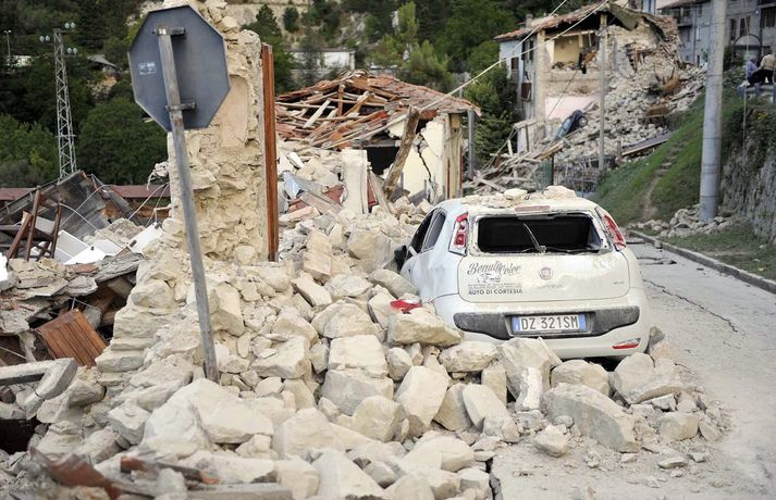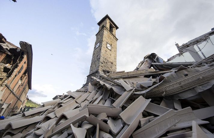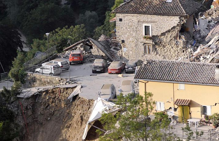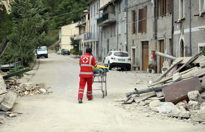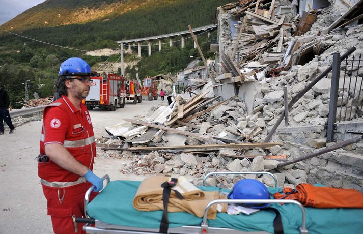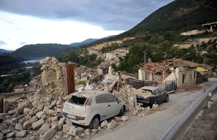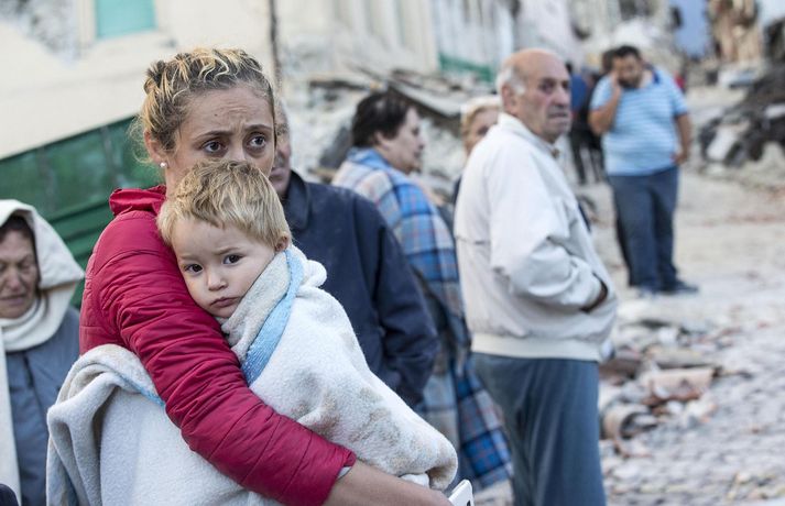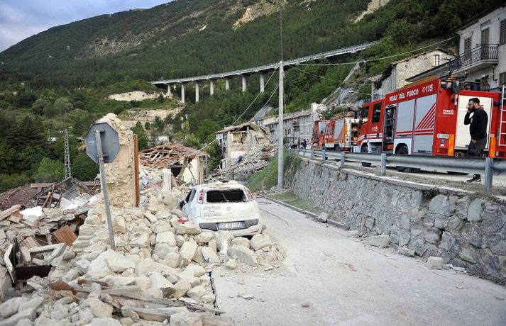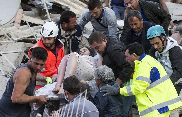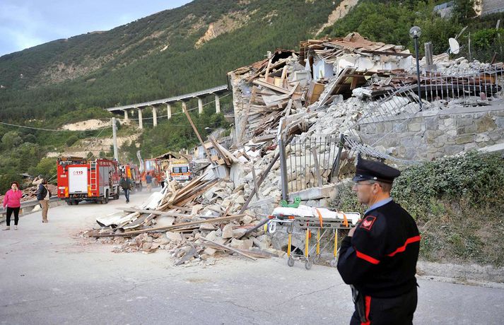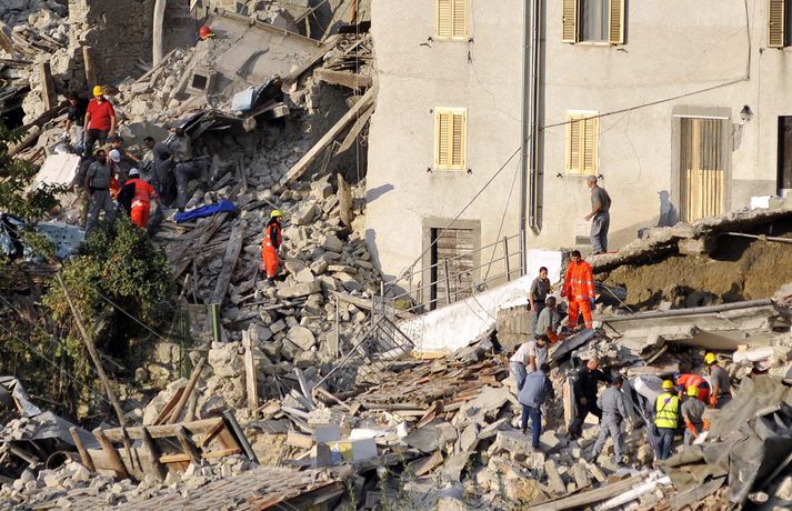Myndir sem sýna hörmungarnar á Ítalíu Samúel Karl Ólason skrifar 24. ágúst 2016 10:18 Vísir/EPA Tugir eru látnir og fjölmargra er saknað eftir að öflugur jarðskjálfti varð á Ítalíu í nótt. Þorpið Pescara del Tronto er nánast rústir einar og fleiri þorp urðu verulega illa úti.Sjá einnig: Stór jarðskjálfti á Ítalíu Björgunaraðilar vinna nú hörðum höndum að því að ná fólki úr rústum húsa og að koma innviðum aftur í lag. Um 80 eftirskjálftar hafa mælst á svæðinu. Hér að neðan má sjá myndir frá myndaveitunni EPA sem teknar voru í Pescara del Tronto og Amatrice. Mest lesið Martraðakennd flugferð: „Það voru allir að öskra á Allah og hágrátandi“ Innlent „Erum að sjá allt niður í níu og ellefu ára stúlkur“ Innlent Allt bendi til þess að breytingar séu í farvatninu Erlent Sundlaugum lokað vegna óöruggra aðstæðna Innlent Viðverustjórn er hluti af sérfræðiþekkingu mannauðsfólks Innlent Gæsluvarðhaldskröfu yfir grunuðum barnaníðingi hafnað Innlent Miklar tafir á Hellisheiði vegna slyss Innlent Tár féllu, veðurguðir léku sér og stórmenni kvöddu sviðið Innlent Nýtt myndband af banaskotinu: „Helvítis tík“ Erlent Ráðast í úttekt á hljóðdempun á höfuðborgarsvæðinu Innlent Fleiri fréttir Nýtt myndband af banaskotinu: „Helvítis tík“ Allt bendi til þess að breytingar séu í farvatninu Annar eigandi skemmtistaðarins í Sviss í haldi Verði að eignast Grænland svo Kína og Rússland geri það ekki Tuga saknað eftir ruslskriðu á Filippseyjum Bresk stjórnvöld segja viðbrögð X „móðgandi“ Ætlar að taka við nóbelnum frá Machado Tóku fimmta olíuskipið: Svona virkar „skuggaflotinn“ Stendur fastur fyrir og fordæmir Trump Flytja áhöfn geimstöðvarinnar heim vegna veikinda Hjón skotin af alríkisútsendurum í Portland Takmarka myndaframleiðslu Grok í skugga gagnrýni Segir Bandaríkin þurfa að eignast Grænland, sáttmálar séu ekki nóg Netsambandslaust meðan mótmælt er í Íran Bandaríkin áður mun öflugri á Grænlandi Telur að Evrópa myndi fórna Grænlandi fyrir NATÓ Mikil spenna í Minneapolis eftir banaskot ICE-liða Veikindi geimfara gætu flýtt heimför áhafnar geimstöðvar Segist hafa grænt ljós frá Trump fyrir frekari refsiaðgerðum gegn Rússum Enn mótmælt í Íran og átök að aukast Gervigreind Musk sögð hafa búið til kynferðislegar myndir af ellefu ára gömlum börnum Þingmaður Svíþjóðardemókrata tekin full undir stýri með kókaín í poka Trump-liðar hóta fauta Maduros sömu örlögum eða dauða Trump sé tilbúinn að ganga „eins langt og nauðsynlegt er“ gagnvart Grænlandi Þyngdartap með lyfjum mun fljótara að ganga til baka eftir að notkun er hætt Trump dregur enn frekar úr þátttöku Bandaríkjanna á alþjóðasviðinu Þúsundir Kólumbíumanna mótmæltu hótunum Trump „Trúið ekki þessari áróðursvél“ Gæti leitt til aukinnar íhlutunar í Atlantshafi Fulltrúi ICE skaut konu til bana í Minneapolis Sjá meira