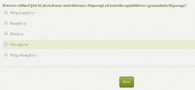 Íbúar í Kópavogi furða sig á spjaldtölvukönnun Jakob Bjarnar skrifar 8. september 2016 14:11 Ýmsum íbúum í Kópavogi þykir einkennilegt að spjaldtölvuvæðing í Kársnesskóla sé eignuð Ármanni Kr. og meirihlutanum í könnun á vegum bæjarins. Foreldrum í Kópavogi barst í morgun könnun þar frá bæjaryfirvöldum og furða sumir hverjir sig nú á leiðandi spurningu sem finna má í henni. „Hvert er viðhorf þitt til ákvörðunar meirihlutans í Kópavogi að innleiða spjaldtölvur í grunnskóla Kópavogs?“ Í könnuninni er tala um ákvörðun meirihluta bæjarstjórnar, sem er strangt til tekið varla til sem stjórnsýslueining; aldrei er talað um ákvarðanir sveitarstjórnar með þeim hætti. En, engin leið sé að skilja þessa spurningu á annan veg en svo að hún sé Ármanni Kr. Ólafssyni bæjarstjóra og núverandi meirihluta í Kópavogi til lofs og dýrðar.Ýmsum í Kópavogi þykir þessi spurning ákaflega sérkennileg, og ekki standast neina skoðun.Í ábendingu sem Vísi hefur borist er segir að þessi innleiðing eða hugmyndafræði varðandi spjaldtölvurnar hafi verið samþykkt samhljóða og er hún niðurstaða starfshóps. Könnunin er hluti B.s. náms Freygerðar Önnu Ólafsdóttur, en einn íbúi Kópavogs sem Vísir ræddi við segir bæinn hafa sent könnunina út, sem bærinn geri vanalega ekki og bærinn eigi ekki að senda út bjánalegar kannanir, eins og það var orðað.Uppfært 15:45 Vísi hefur borist athugasemd frá Kópavogsbæ þar sem áréttað er að könnunin sé ekki á vegum bæjaryfirvald. Athugasemdin er svohljóðandi: „Athugasemd frá Kópavogsbæ Könnun sem send var út um spjaldtölvur er ekki á vegum Kópavogsbæjar heldur er hún framtak Freygerðar Önnu Ólafsdóttur háskólanema. Orðalag spurninga í könnunni er því hvorki á ábyrgð stjórnsýslunnar né kjörinna fulltrúa. Í pósti sem sendur var á foreldra kemur fram að könnun er hluti af háskólaverkefni.“ Í samtali við Vísi segir Sigríður Björg Tómasdóttir almannatengill Kópavogsbæjar að foreldrum hafi borist pósturinn frá skólum bæjarins. Mest lesið Samþykktu aldrei að Sanna fengi oddvitasætið Innlent Minnir á hvernig Hitler komst til valda Innlent Þjóðverjar yfirgefa Grænland Erlent Rúmlega tuttugu látnir eftir árekstur tveggja hraðlesta Erlent Önnur stúlka með móður sinni þegar Högni var klófestur Innlent Boðar leiðtogaráðið á aukafund vegna hótana Trumps Erlent Fann kattarhræ í margnota poka úti í hrauni Innlent Ræddi við Trump: „Hlakka til að sjá hann“ Erlent Sala á grænlenskum á Íslandi nær tvöfaldast Innlent Sambandið aldrei verra: Ísland gæti bæst á listann Innlent Fleiri fréttir Fann kattarhræ í margnota poka úti í hrauni Samþykktu aldrei að Sanna fengi oddvitasætið Minnir á hvernig Hitler komst til valda VG og Sanna sameina krafta sína Sala á grænlenskum á Íslandi nær tvöfaldast Ekkert athugavert við fundinn og stjórnin starfshæf Stjórnvöld „í blindflugi“ í menntamálum í rúman áratug Haldið upp á 80 ára afmæli Hveragerðis allt afmælisárið Sambandið aldrei verra: Ísland gæti bæst á listann Dæmi um að nemendur hafi aldrei mætt í leikfimi Grænlandstollar vonbrigði og verðbólga spillir kjarasamningum Stöðugleikasamningarnir gætu sprungið strax í haust Heimsmálin, Grænland, menntun og fjölmiðlun á Sprengisandi Karólína Helga skákaði sitjandi oddvita í Hafnarfirði Ísland standi með Grænlandi og Danmörku Vonar að skólarnir verði frjálsir frá símum í haust Álagning aldrei hærri: Eldsneytisverð hefði átt að lækka enn frekar Líkir kærunni við „faglega aftöku“ „Vegferð ákæruvaldsins til skammar“ Menntamálaráðherra tekur yfir hjúkrunarheimilin Fjögur handtekin á Akureyri grunuð um innbrot Viðvarandi óvissuástand bitni á langtímaáætlunum fyrirtækja Einn endaði á hliðinni og þrjú klemmdust á milli Var í símanum við neyðarlínuna þegar ekið var aftan á hann Ákvörðunin á ábyrgð stjórnenda Icelandair en ekki flugmanna „Hef hvergi hallað réttu máli“ Önnur stúlka með móður sinni þegar Högni var klófestur Fá þau að vera aftur á lista með Hildi? Fimm bíla árekstur á Reykjanesbraut og tveir fluttir á slysadeild Eigum eftir að sjá hvort Guðbrandur bæti upp fyrir hegðun sína Sjá meira