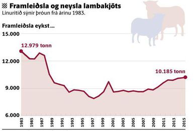 Framleiðslan ekki meiri síðan 1988 Sveinn Arnarsson skrifar 7. september 2016 09:00 Sauðfé hefur fjölgað síðustu tíu árin, en framkvæmdastjóri Landssambands sauðfjárbænda telur að ekki sé um offjölgun að ræða. vísir/stefán Árið 2015 framleiddu íslenskir sauðfjárbændur 10.185 tonn af lambakjöti en bændur hafa ekki framleitt svo mikið síðan árið 1988. Á sama tíma hefur neysla á lambakjöti á hvern Íslending dregist saman úr 33,2 kílóum á hvert mannsbarn á ári í 19,5 kíló.Svavar Halldórsson, framkvæmdastjóri LS.Björn Víkingur Björnsson, framkvæmdastjóri Fjallalambs á Kópaskeri, sagði offramleiðslu eiga sér stað á Íslandi í lambakjöti og að greitt væri með útflutningi lambakjöts. Svavar Halldórsson, framkvæmdastjóri Landssamtaka sauðfjárbænda (LS), segir það ekki rétt að framleiðslan sé of mikil og að í raun hafi fé hér á landi fækkað undanfarið. „Hér á landi er ekki framleitt of mikið af lambakjöti á hverju ári. Það sést glögglega á þeirri staðreynd að við sitjum ekki uppi með lambakjöt á milli sláturtíða,“ segir Svavar. Í skýrslu Rannsóknamiðstöðvar Háskólans á Akureyri um markmið og forsendur sauðfjárræktarsamninganna kemur fram að einfaldar gripagreiðslur myndu líklega fjölga fé á landinu og að framleiðsla myndi aukast. Að mati LS er það órökstudd fullyrðing.„Engin haldbær rök hníga að því að þær kerfisbreytingar sem í nýja samningnum felast leiði til fjölgunar fjár. Framleiðsla á lambakjöti hefur verið frjáls og án kvóta í rúm 20 ár en fé fækkað. Ótti við offramleiðslu eða aukið beitarálag er beinlínis órökréttur og ástæðulaus miðað við efni nýja samningsins,“ segir í umsögn LS. Þórólfur Matthíasson, prófessor í hagfræði, segir það hins vegar staðreynd að of mikið sé framleitt af lambakjöti hér á landi og að lögmál um framboð og eftirspurn sé ekki haft í huga. Bændur krefjast hærra verðs fyrir afurðir sínar en á móti kemur að neytendur eru ekki tilbúnir að greiða hærra verð fyrir það kjöt. „Við sjáum það alls staðar í kringum okkur að hvíta kjötið er að taka yfir og er íslenskur markaður engin undantekning. Bæði er ræktunin auðveldari og hraðari og við það verður til ódýrara kjöt. Að mínu viti væri hægt að framleiða mun minna af lambakjöti en nú er,“ segir Þórólfur. Fréttin birtist fyrst í Fréttablaðinu. Birtist í Fréttablaðinu Mest lesið Samþykktu aldrei að Sanna fengi oddvitasætið Innlent Minnir á hvernig Hitler komst til valda Innlent Fann kattarhræ í margnota poka úti í hrauni Innlent Þjóðverjar yfirgefa Grænland Erlent Danir máttlausir gagnvart rússnesku ógninni í 20 ár Erlent Tala látinna hækkar í lestarslysinu á Spáni Erlent Hættur að hugsa bara um frið fyrst hann fékk ekki Nóbelinn Erlent Rúmlega tuttugu látnir eftir árekstur tveggja hraðlesta Erlent Önnur stúlka með móður sinni þegar Högni var klófestur Innlent Sala á grænlenskum á Íslandi nær tvöfaldast Innlent Fleiri fréttir Ekki rétta leiðin að kynda undir læsisstríð Mælir fyrir samgönguáætlun í dag Fann kattarhræ í margnota poka úti í hrauni Samþykktu aldrei að Sanna fengi oddvitasætið Minnir á hvernig Hitler komst til valda VG og Sanna sameina krafta sína Sala á grænlenskum á Íslandi nær tvöfaldast Ekkert athugavert við fundinn og stjórnin starfshæf Stjórnvöld „í blindflugi“ í menntamálum í rúman áratug Haldið upp á 80 ára afmæli Hveragerðis allt afmælisárið Sambandið aldrei verra: Ísland gæti bæst á listann Dæmi um að nemendur hafi aldrei mætt í leikfimi Grænlandstollar vonbrigði og verðbólga spillir kjarasamningum Stöðugleikasamningarnir gætu sprungið strax í haust Heimsmálin, Grænland, menntun og fjölmiðlun á Sprengisandi Karólína Helga skákaði sitjandi oddvita í Hafnarfirði Ísland standi með Grænlandi og Danmörku Vonar að skólarnir verði frjálsir frá símum í haust Álagning aldrei hærri: Eldsneytisverð hefði átt að lækka enn frekar Líkir kærunni við „faglega aftöku“ „Vegferð ákæruvaldsins til skammar“ Menntamálaráðherra tekur yfir hjúkrunarheimilin Fjögur handtekin á Akureyri grunuð um innbrot Viðvarandi óvissuástand bitni á langtímaáætlunum fyrirtækja Einn endaði á hliðinni og þrjú klemmdust á milli Var í símanum við neyðarlínuna þegar ekið var aftan á hann Ákvörðunin á ábyrgð stjórnenda Icelandair en ekki flugmanna „Hef hvergi hallað réttu máli“ Önnur stúlka með móður sinni þegar Högni var klófestur Fá þau að vera aftur á lista með Hildi? Sjá meira
