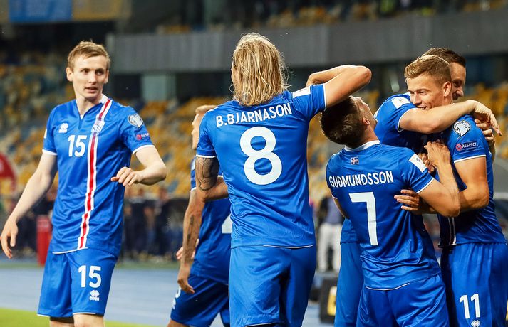 Ísland gerði 1-1 jafntefli við Úkraínu í fyrsta leik liðsins í undankeppni fyrir HM í Rússlandi sem fram fer sumarið 2018. Öll liðin í riðli Íslands eru nú með eitt stig því hinir tveir leikirnir enduðu einnig með 1-1 jafntefli; leikur Króata og Tyrkja annars vegar og hins vegar leikur Finna og Kósóvó.Sjáðu einnig:Umfjöllun: Úkraína - Ísland 1-1 | Stig í Kænugarði Alfreð Finnbogason kom Íslandi yfir snemma í leiknum, eða á sjöttu mínútu. Á 41. mínútu jafnaði svo Andriy Yarmolenko metin og fleiri urðu mörkin ekki.Sjá einnig:Einkunnir íslenska liðsins | Kári maður leiksins Myndaveislu frá leiknum má sjá hér að ofan, en næsti leikur Íslands er þann sjötta október gegn Finnlandi á heimavelli og svo níunda október gegn Tyrklandi.